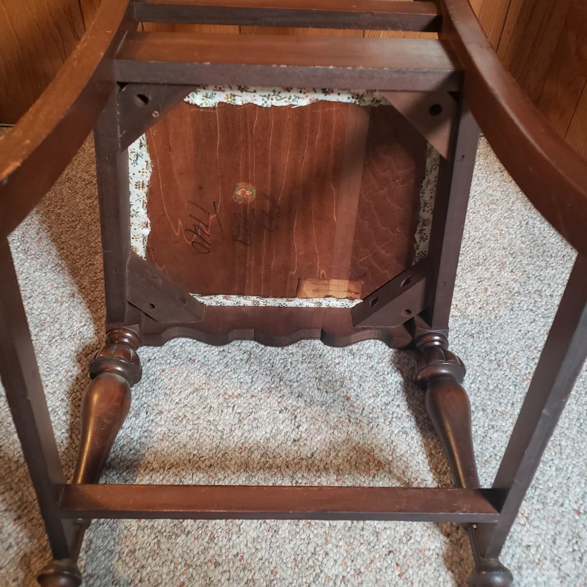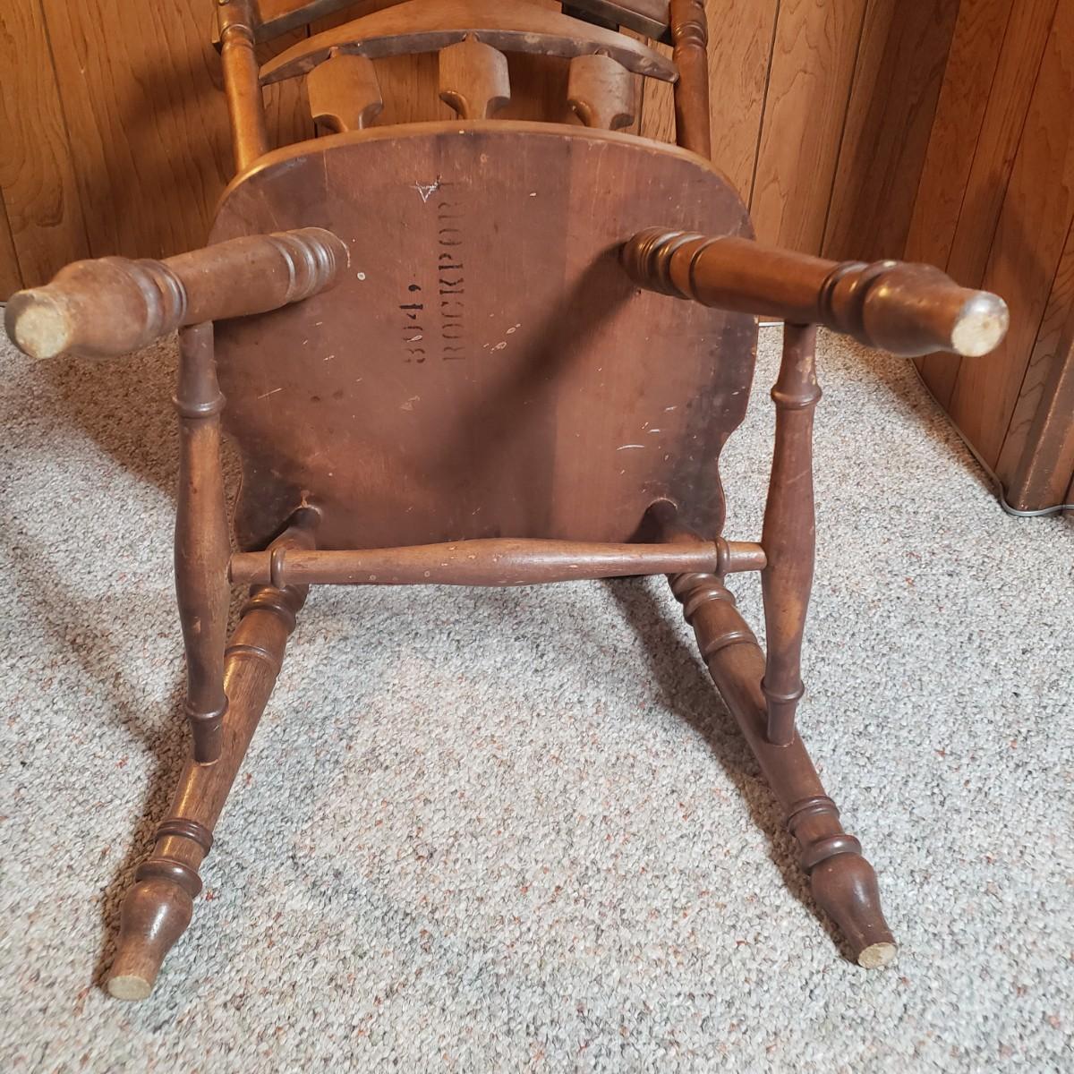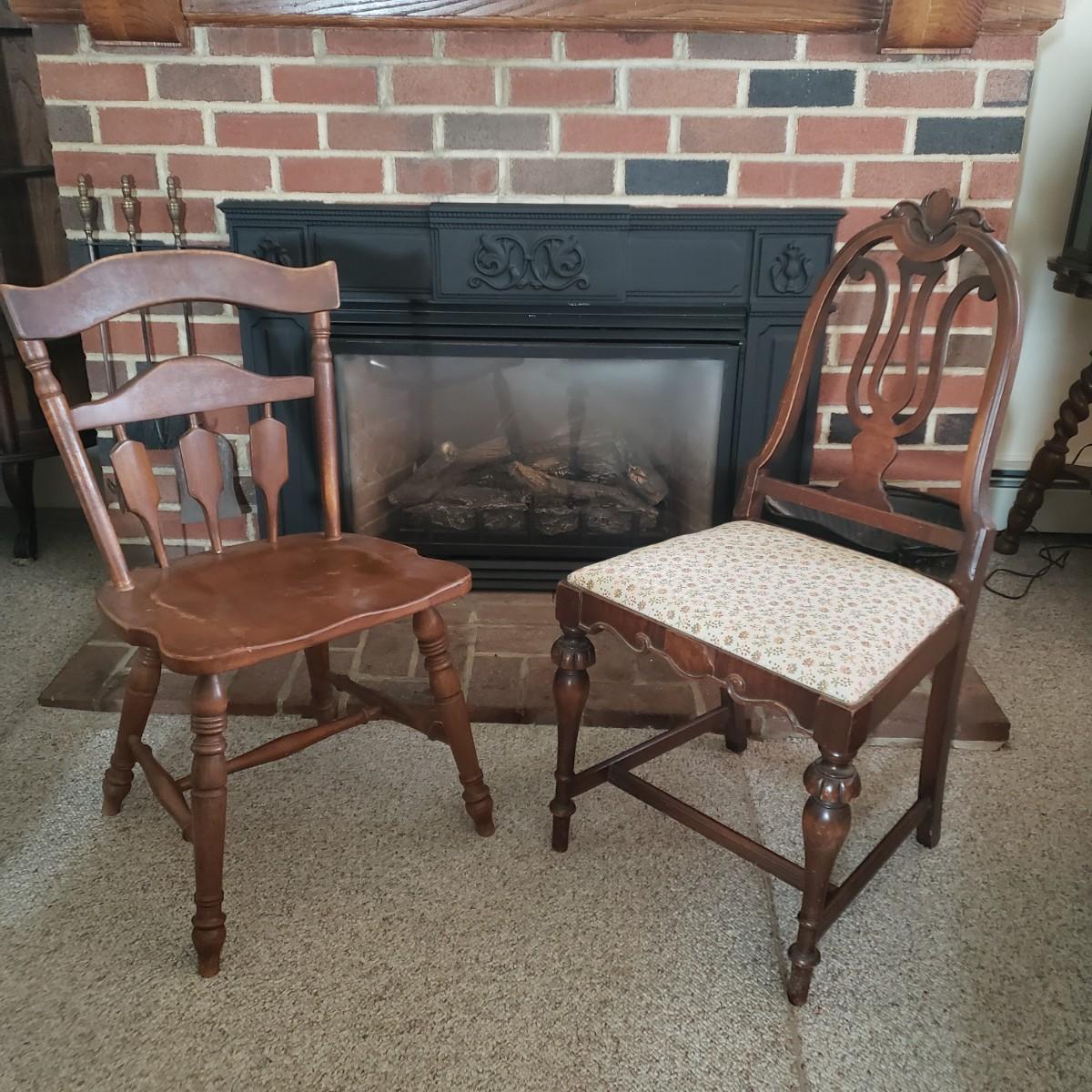 LOT 24L: Antique Upholstered Chair & Rockport Wooden Chair