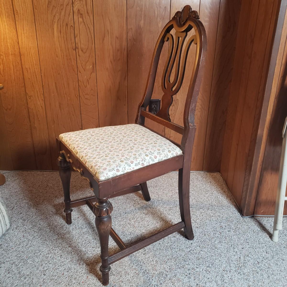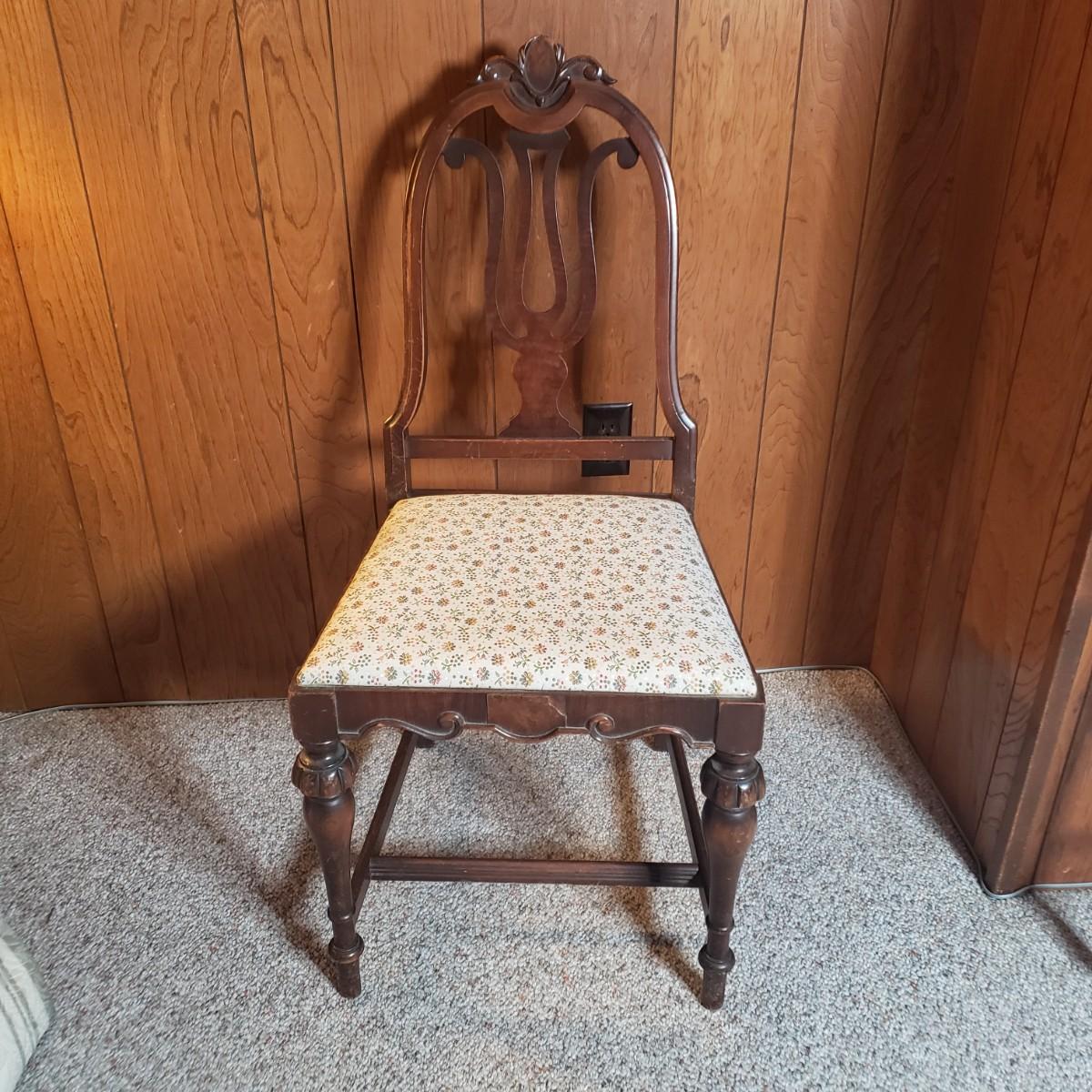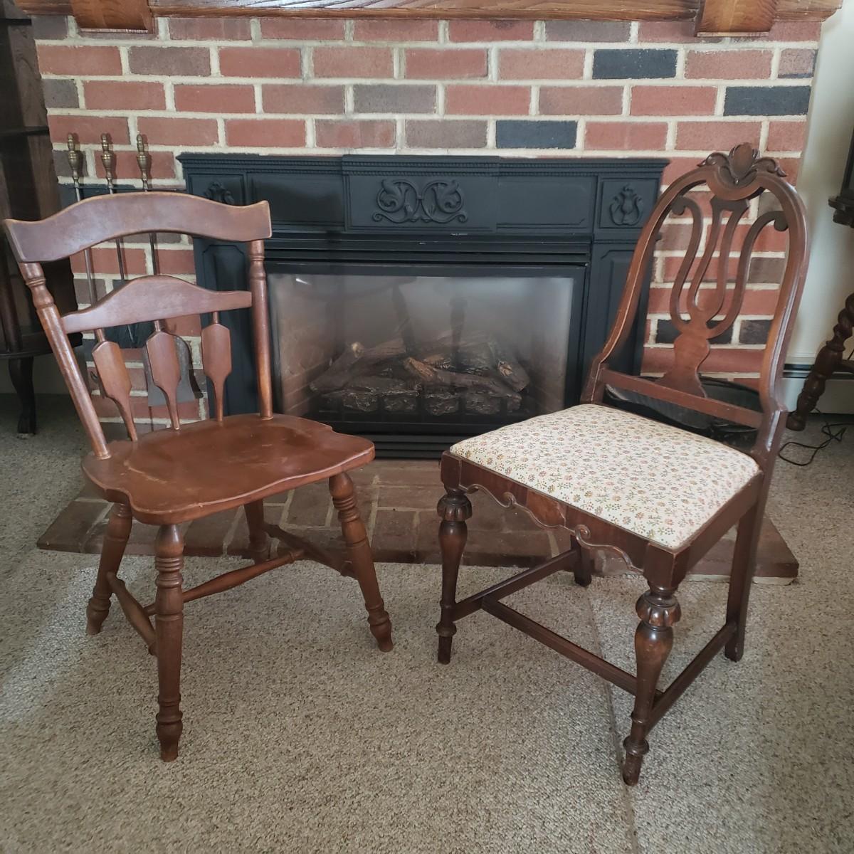 LOT 24L: Antique Upholstered Chair & Rockport Wooden Chair