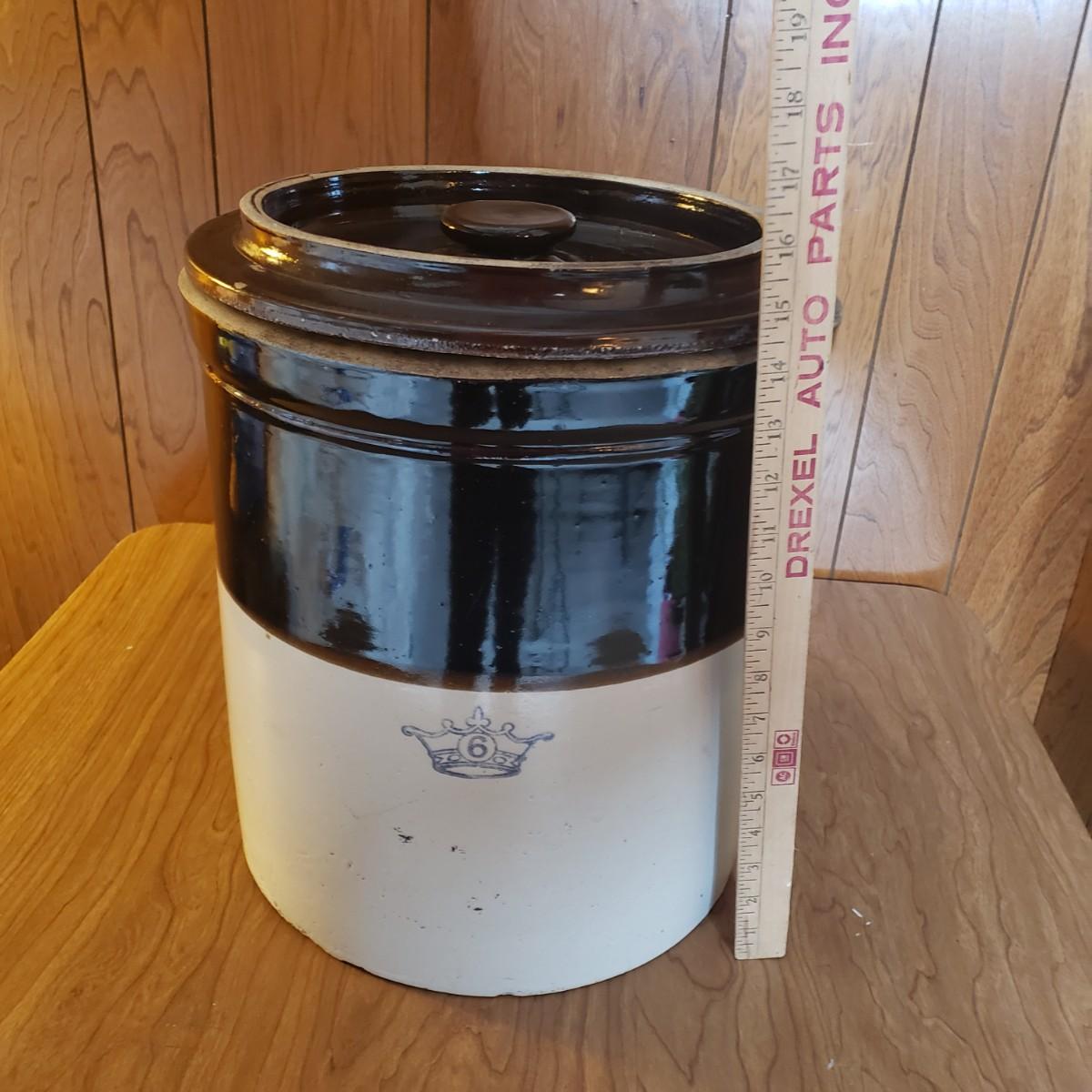LOT 25L: Antique 6 Gallon Crock with Lid