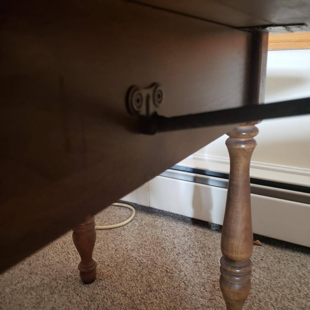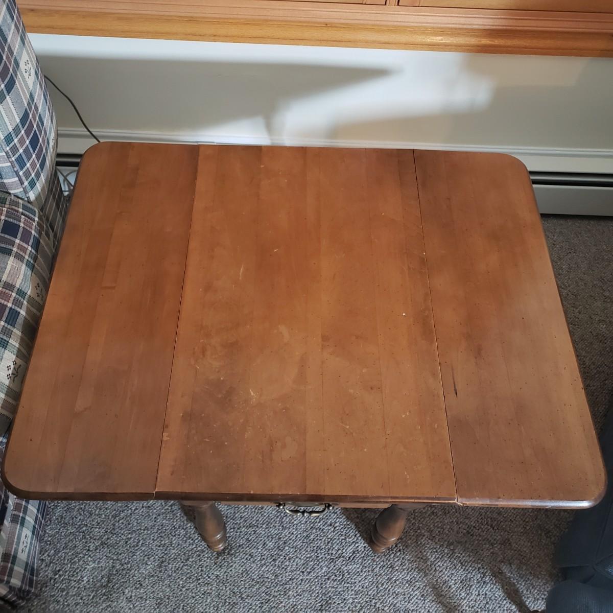 22"H 28 1/2" W 36" L with leaves extended 17 1/4" L without. Please see all pictures as they are the best representation of the items. The pictures show condition, measurements if taken, and what is included in the lot. Due to the large amount that we photograph and the time frame, we are not always able to take measurements. All items unless noted, are pre-owned and have been used. If you purchased furniture, you must bring help. We do not allow one person to carry large furniture out on their own. Bring help, tools and a truck for the safety of our client’s homes, and your personal safety. Any damages that result to the property including walls, and floors due to moving of the furniture will be charged to the buyer. Company policy. Thank you.