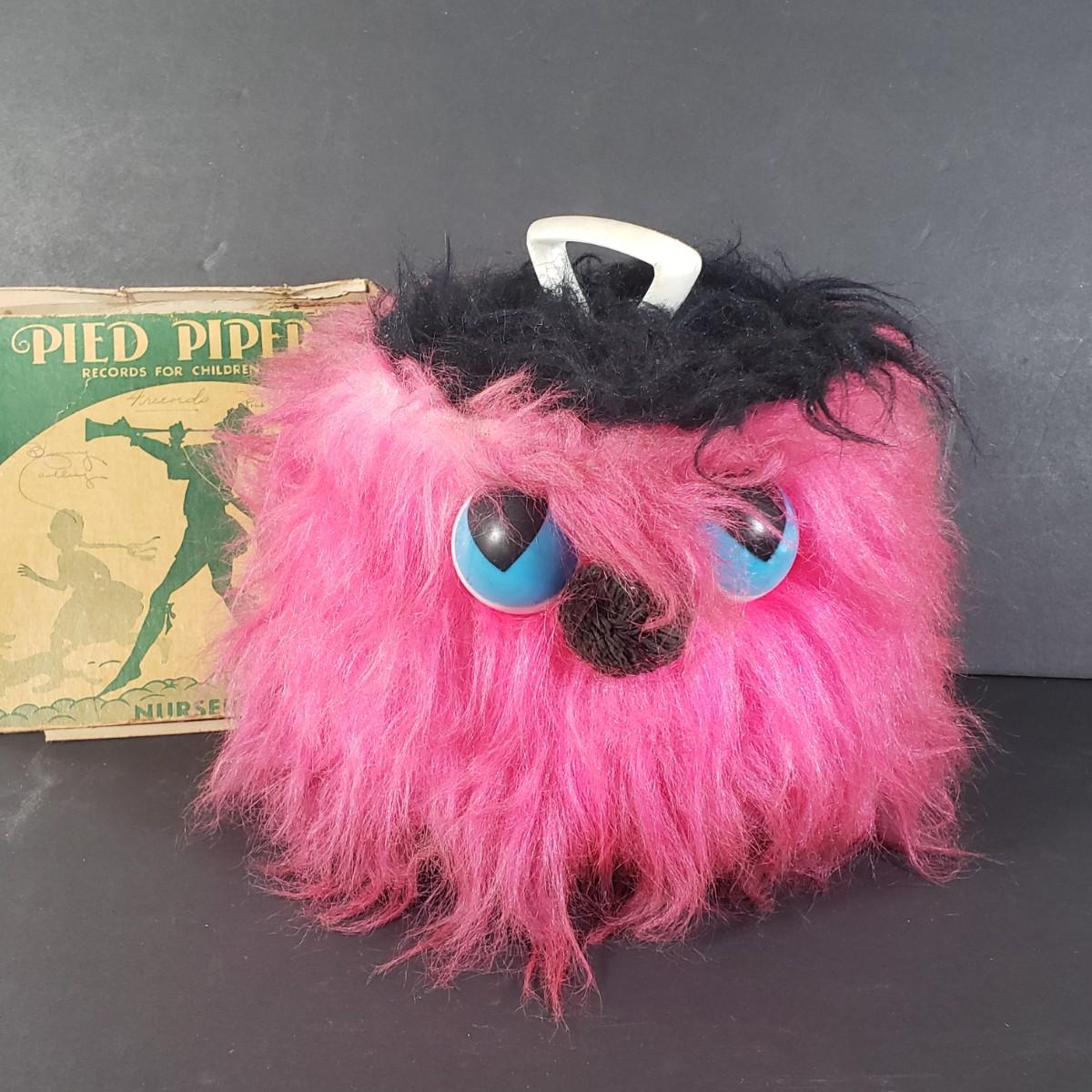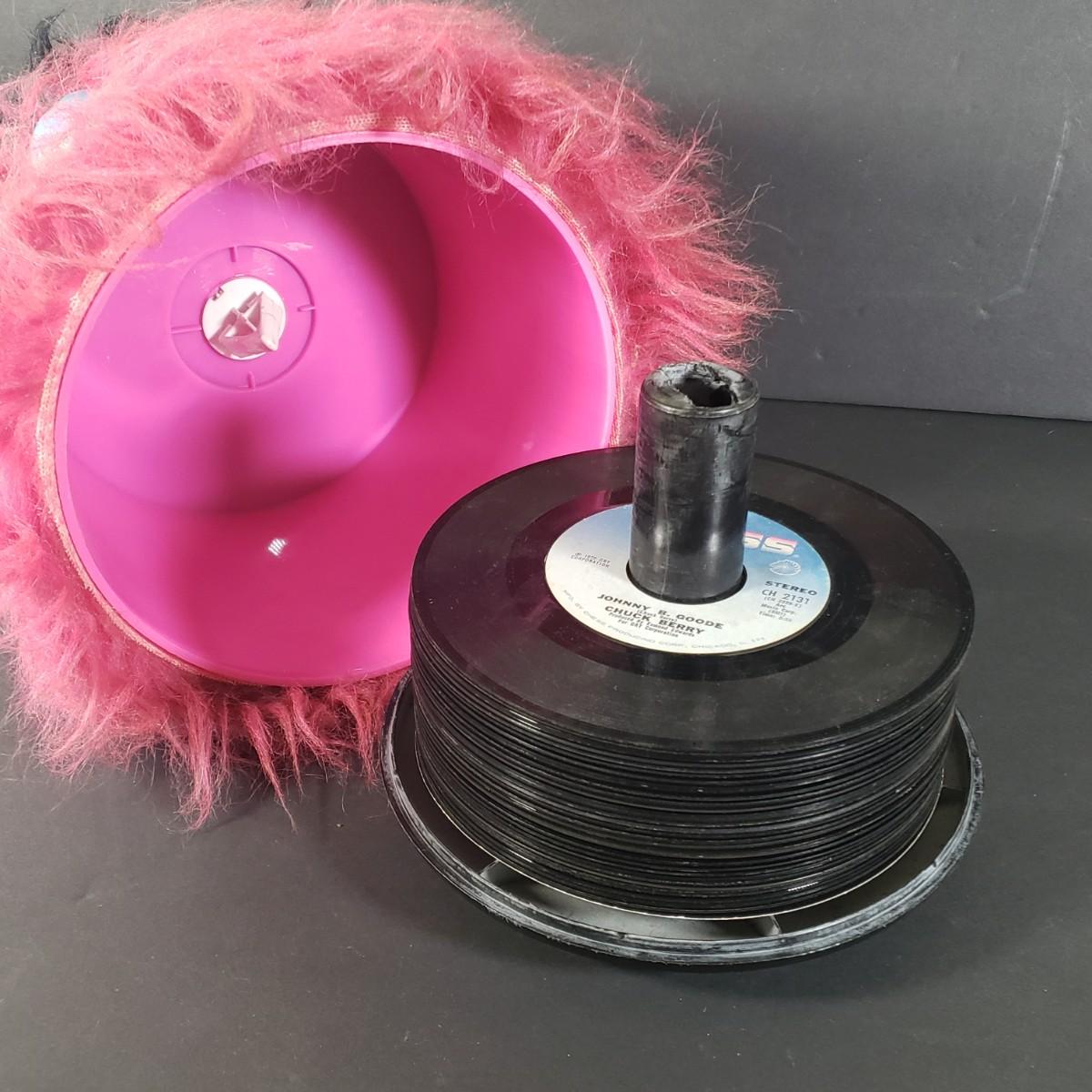 LOT 36X: Vintage Fuzzy Monster Disk Go Case with Collection of 45s