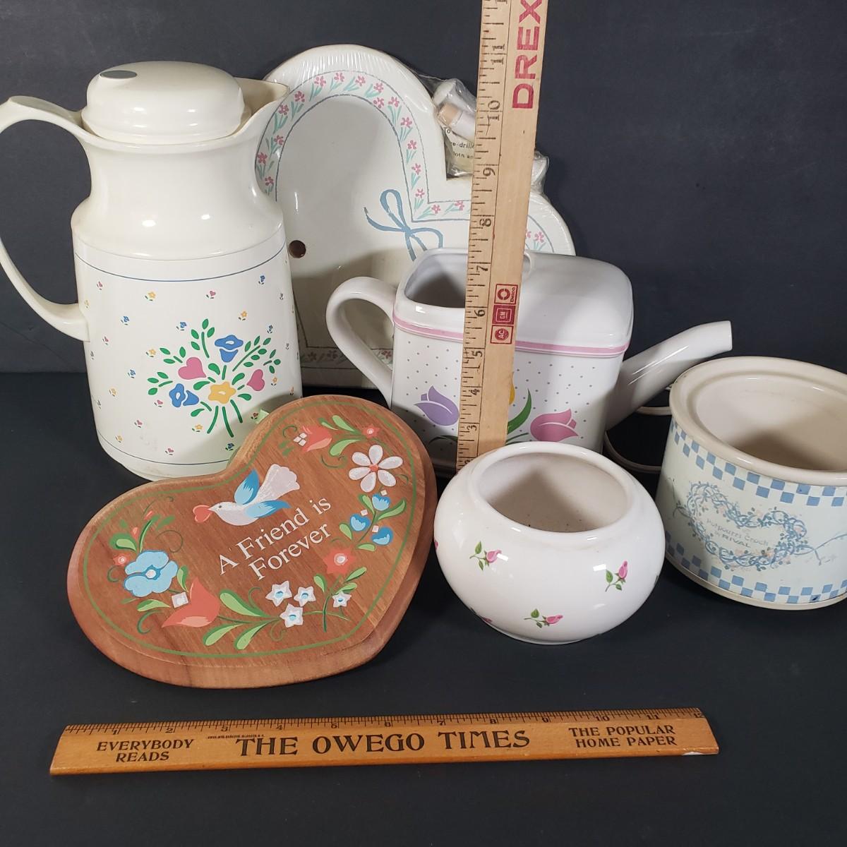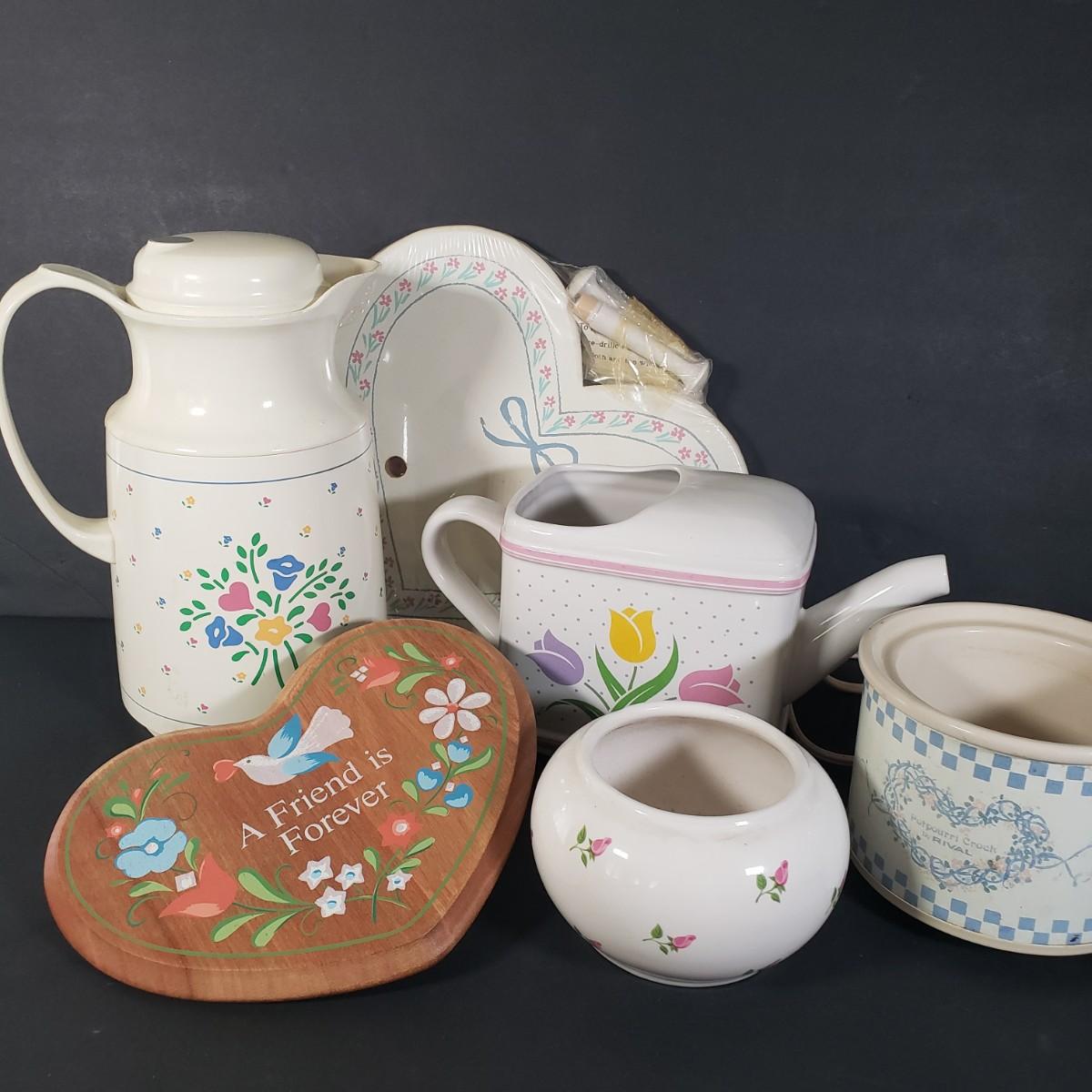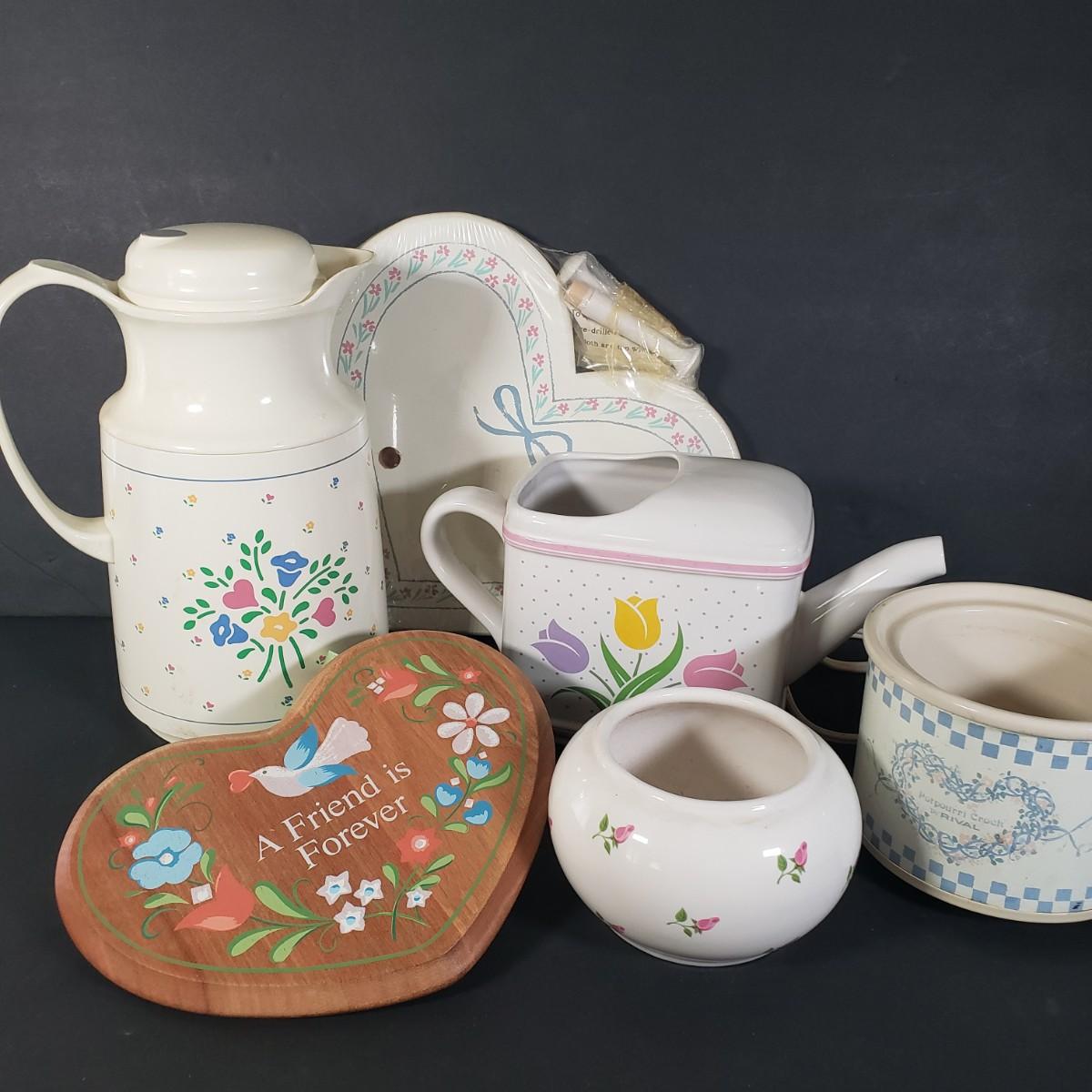 LOT 39X: Collection of Floral Pastel Home Decor with NOS Heart Shaped Wall Hanging/Key Holder