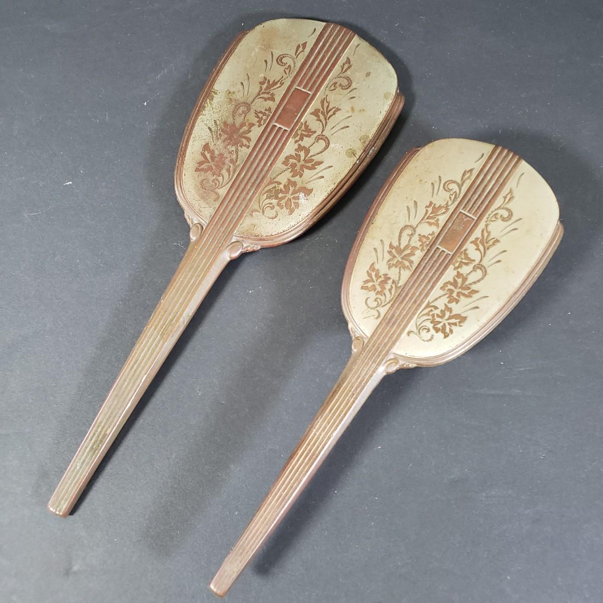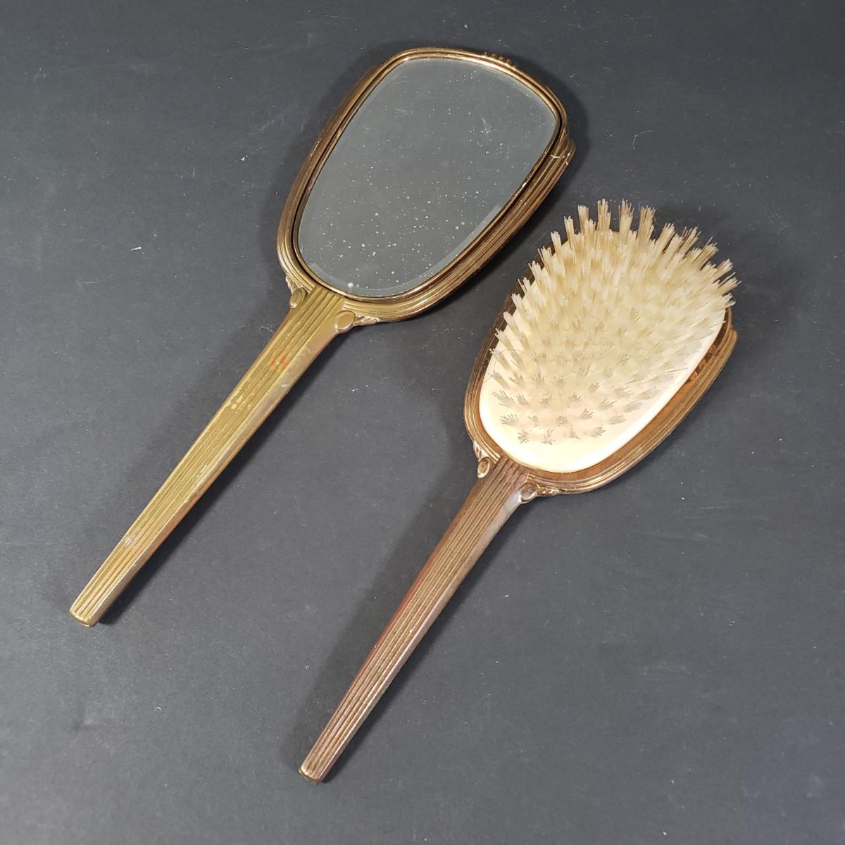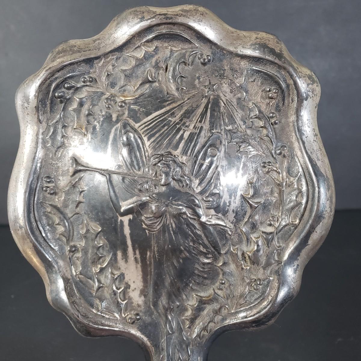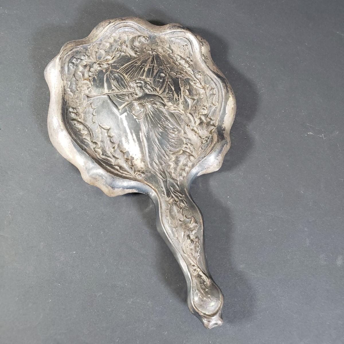 LOT 40X: Vintage Vanity Set with Art Nouveau Silver Tone Mirror