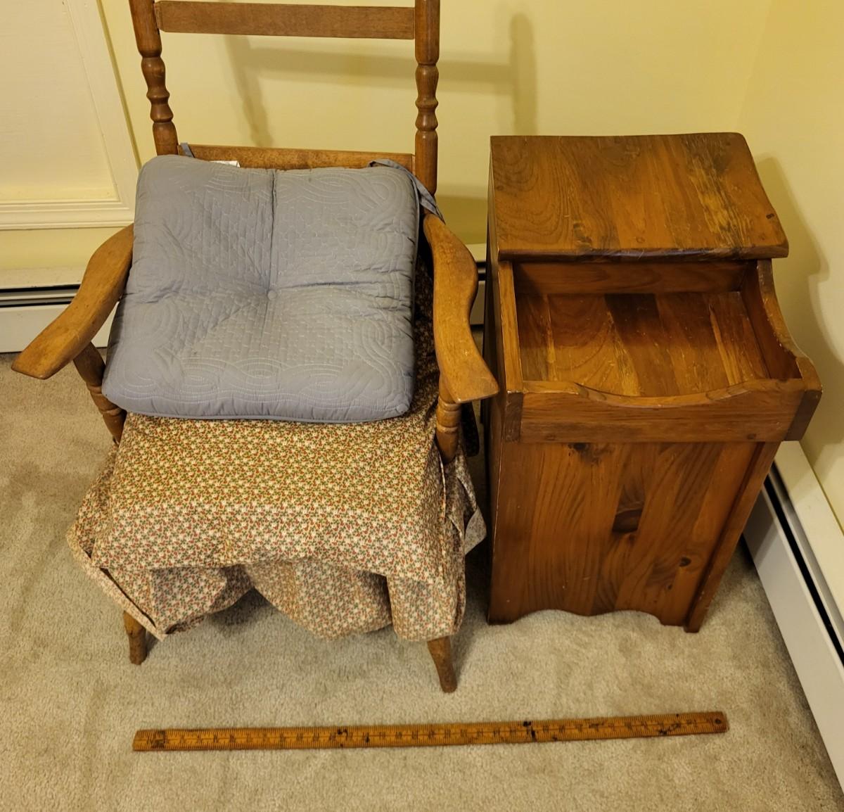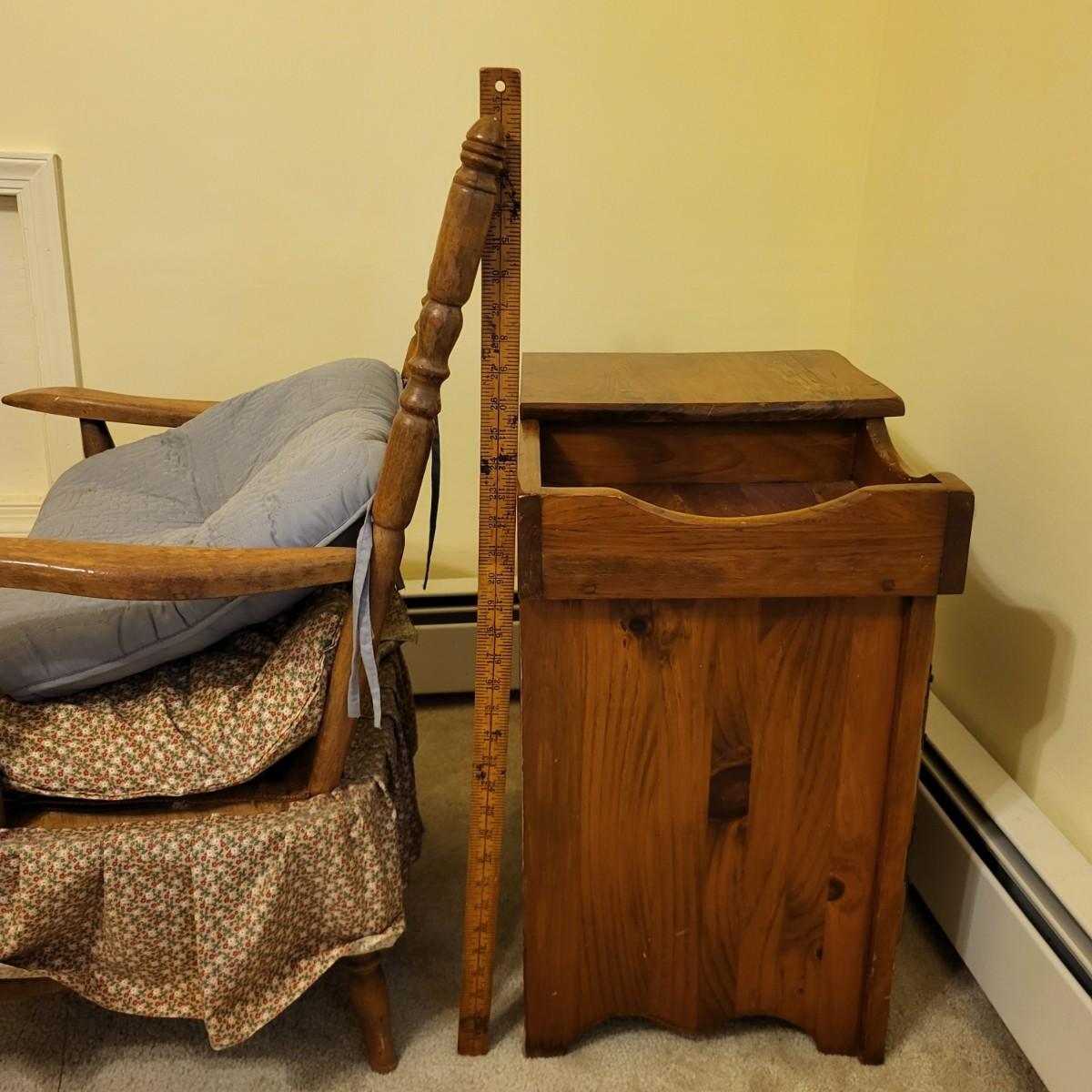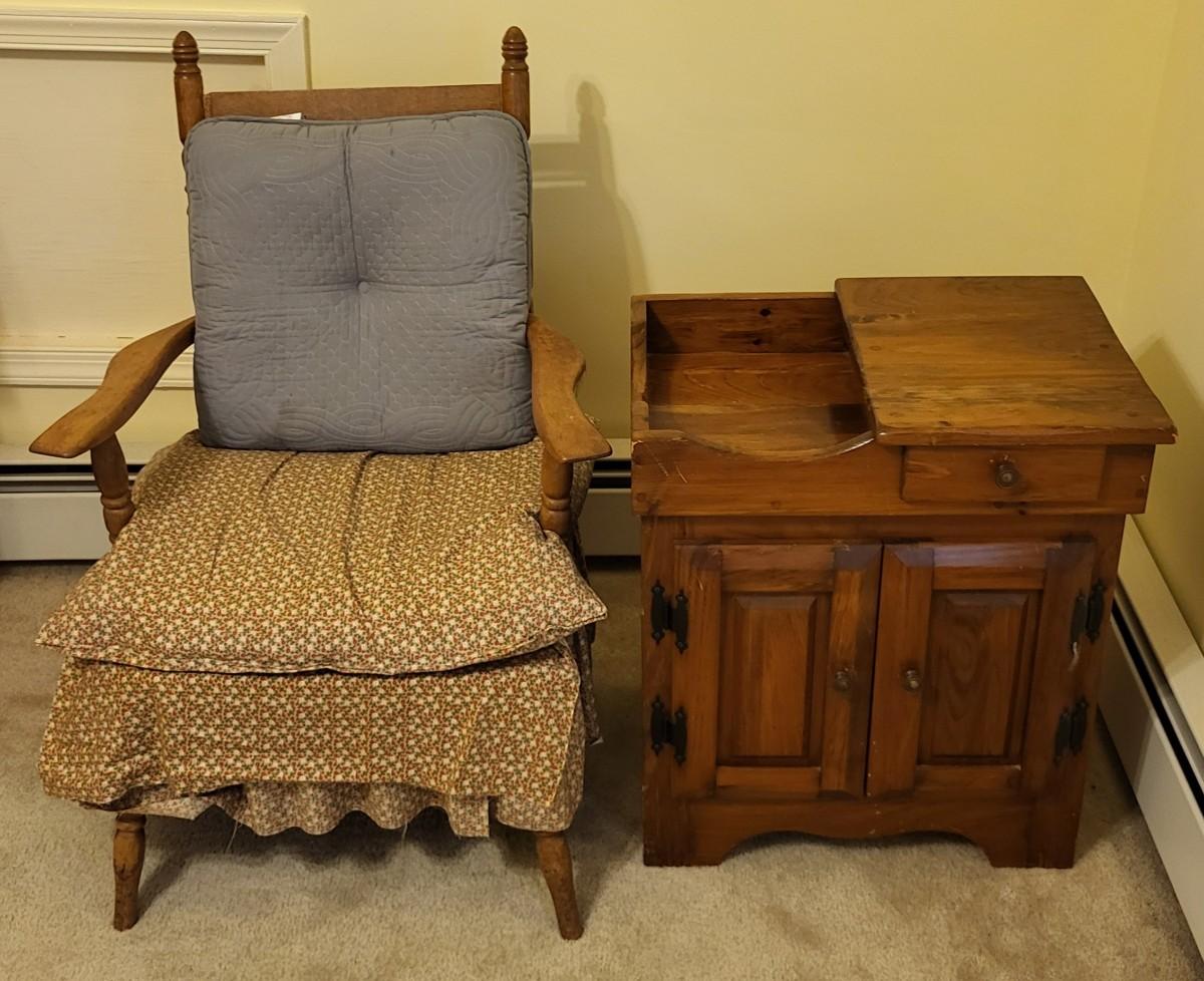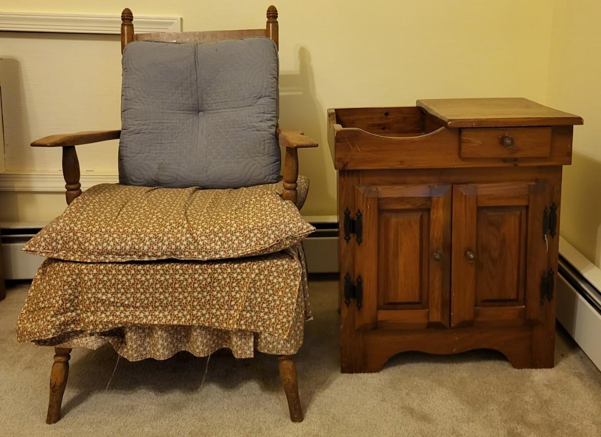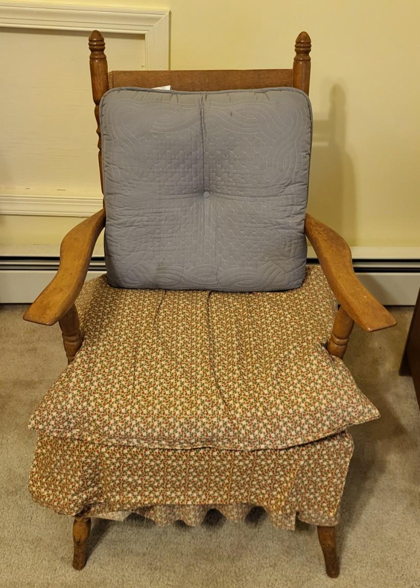 LOT 46U: Vintage Wooden Chair with Cushions and Wooden End Table