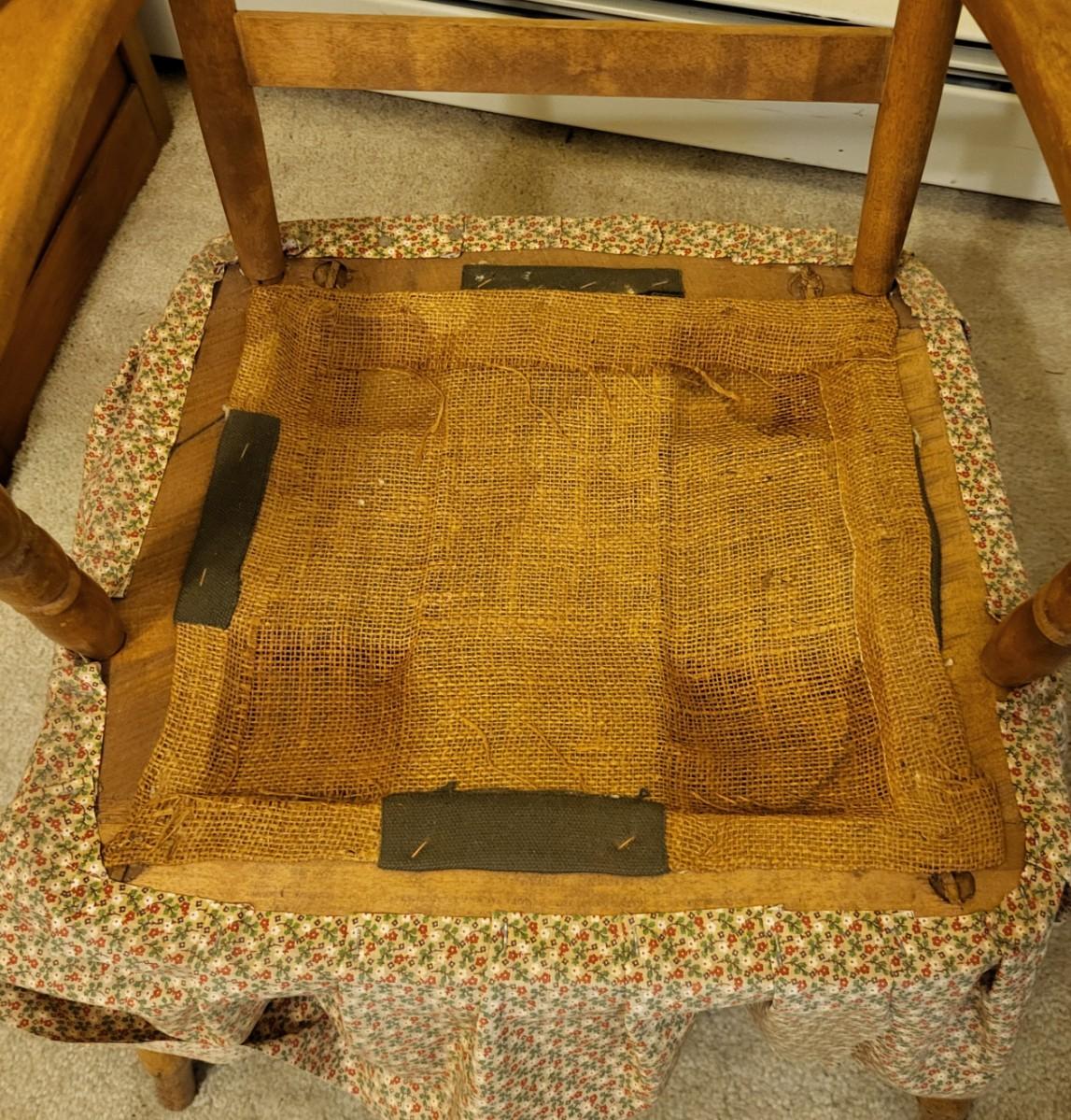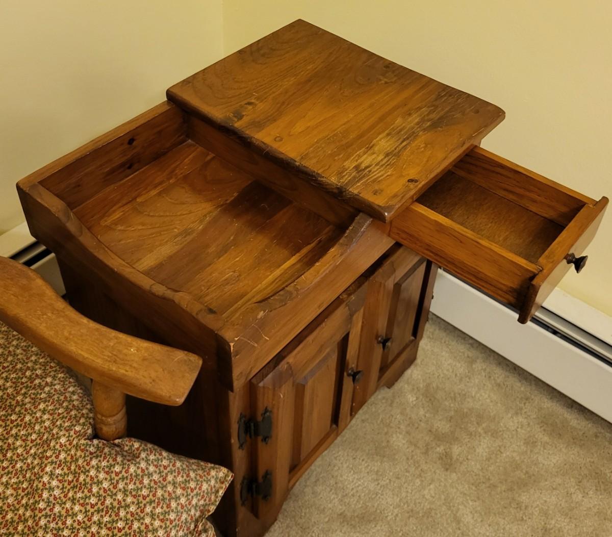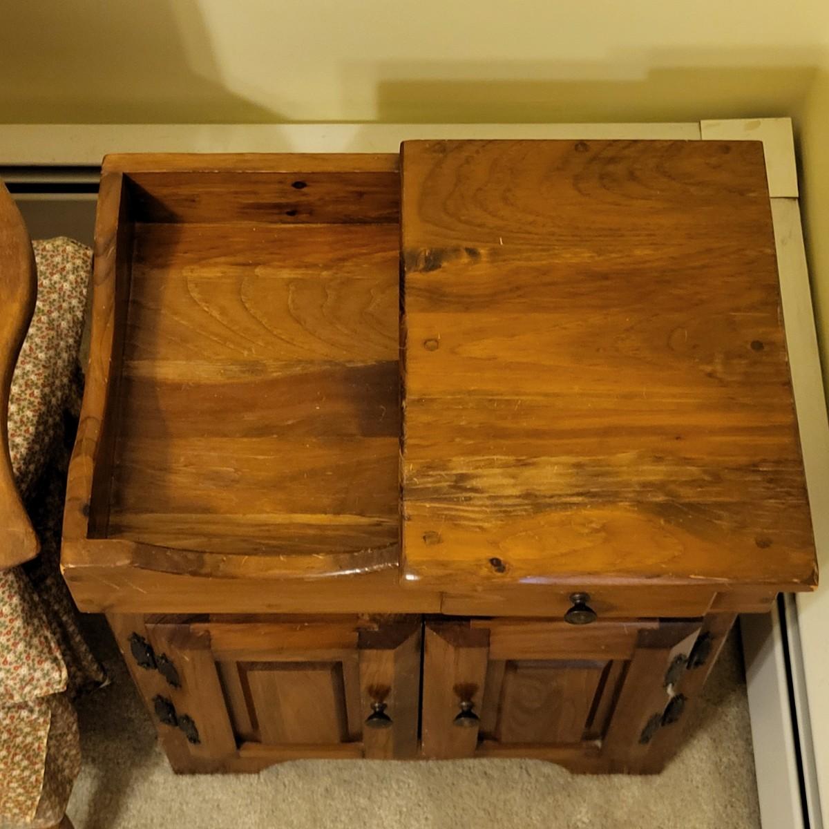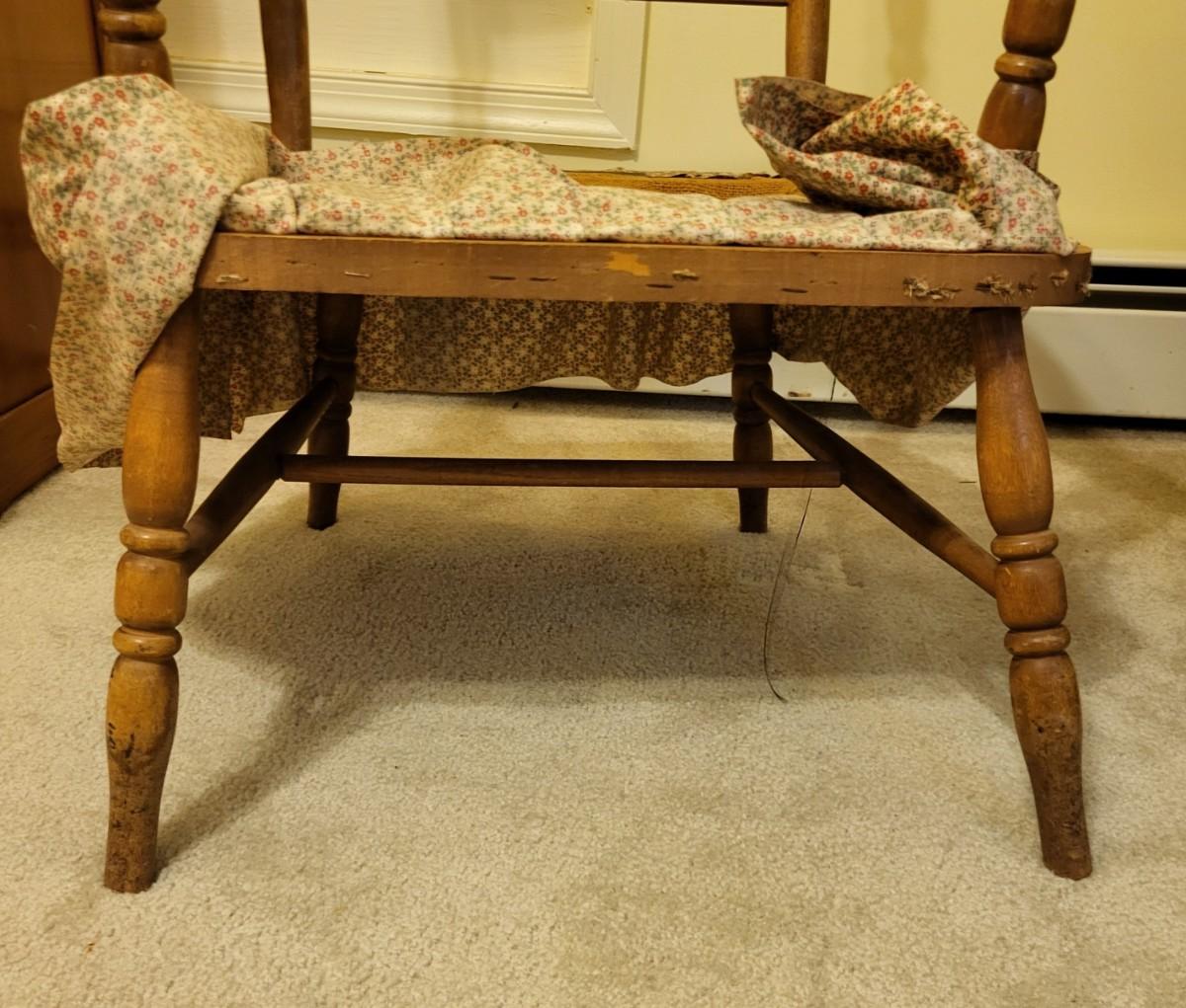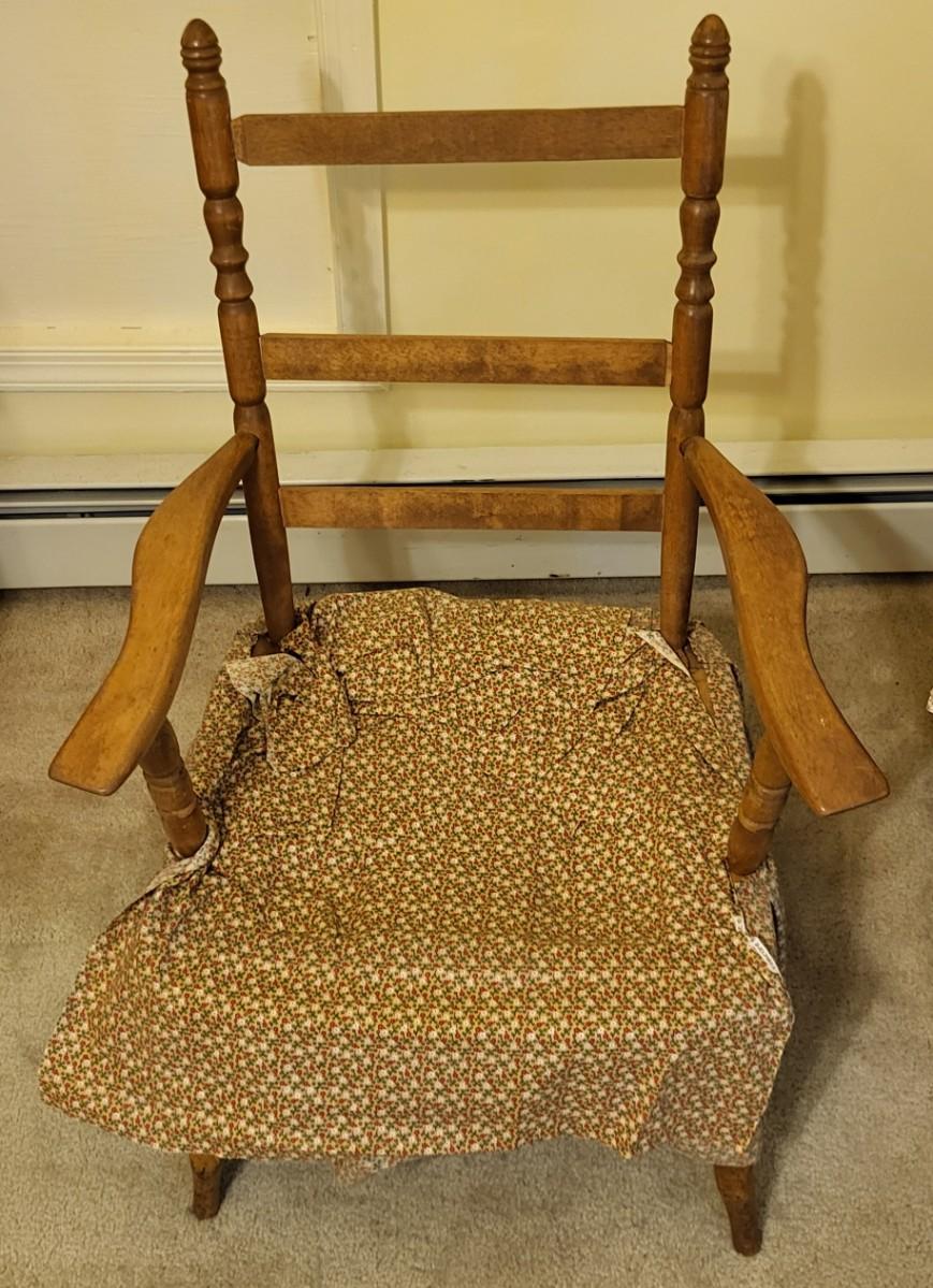 LOT 46U: Vintage Wooden Chair with Cushions and Wooden End Table