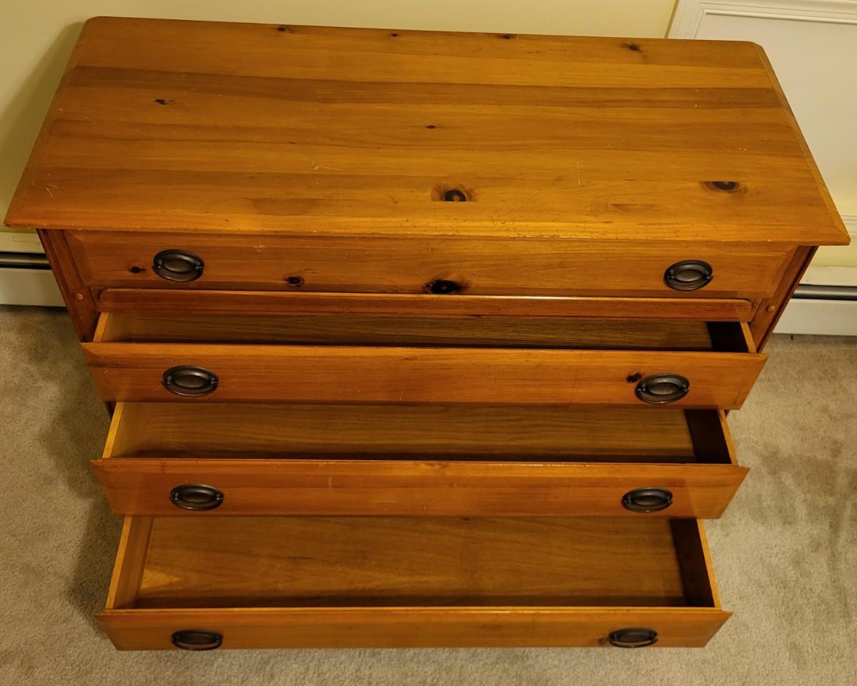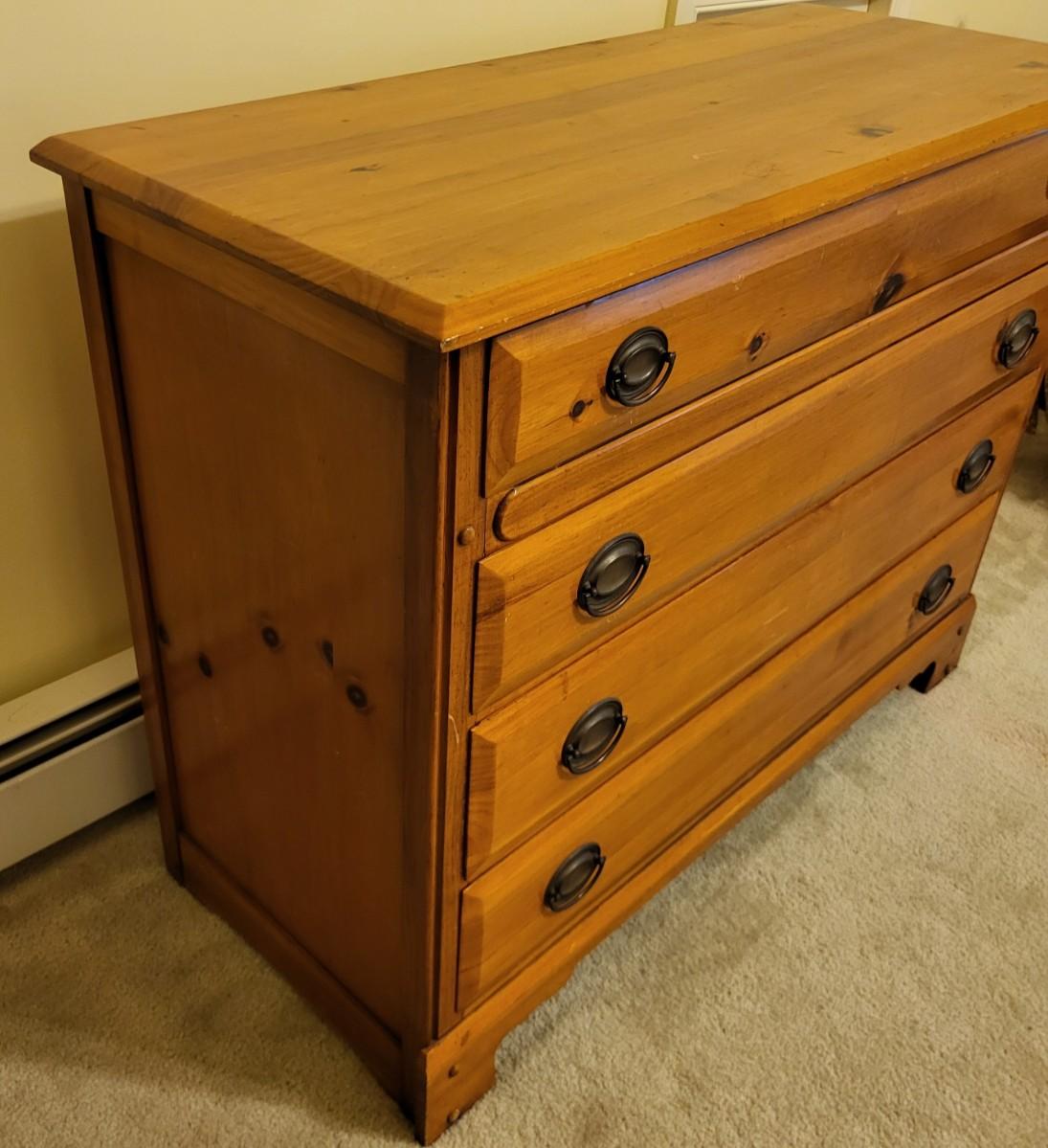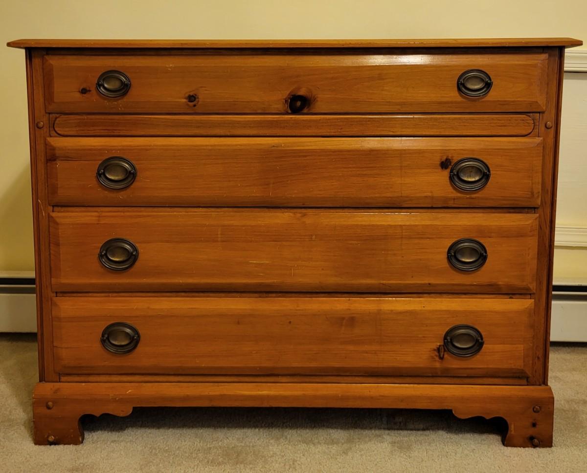 LOT 47U: Wide Four Drawer Wooden Dresser