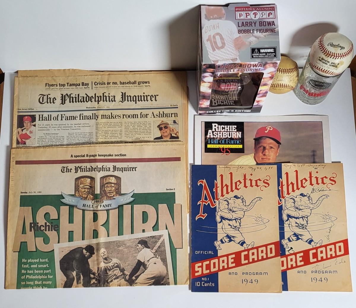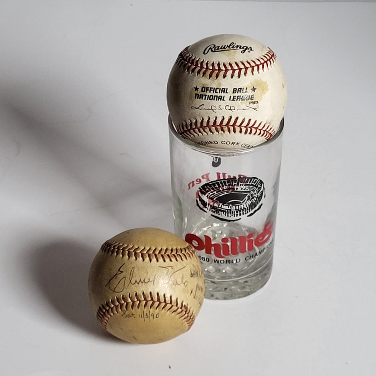 LOT 59L: Vintage Philadelphia Phillies Lot Including MLB Baseball, Autographed Ball, Larry Bowa Bobblehead and More