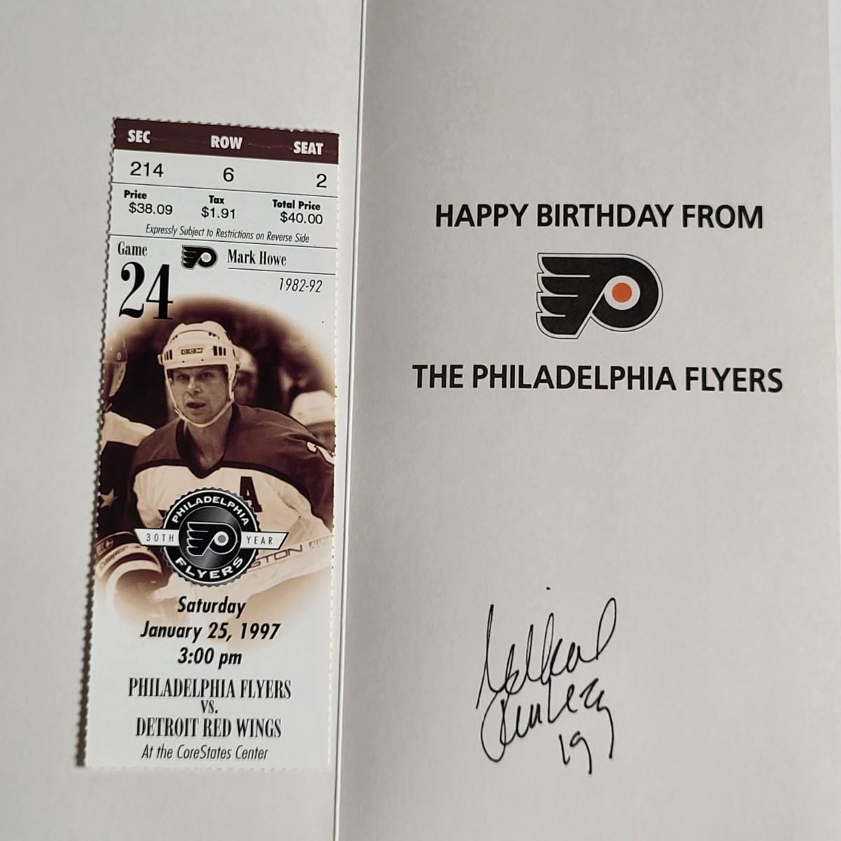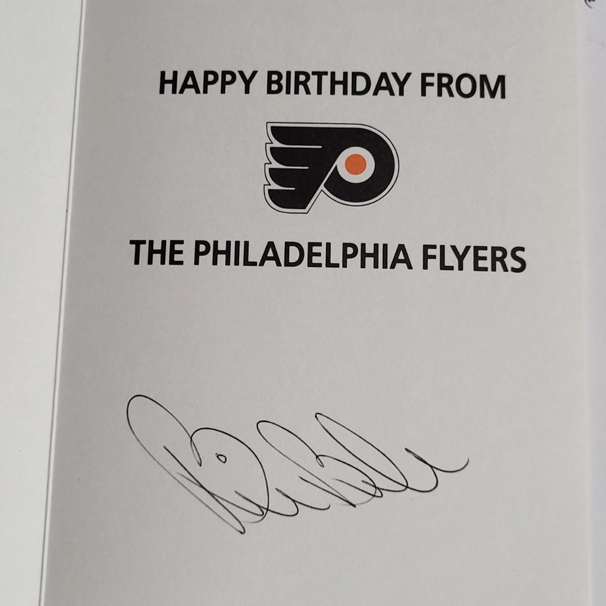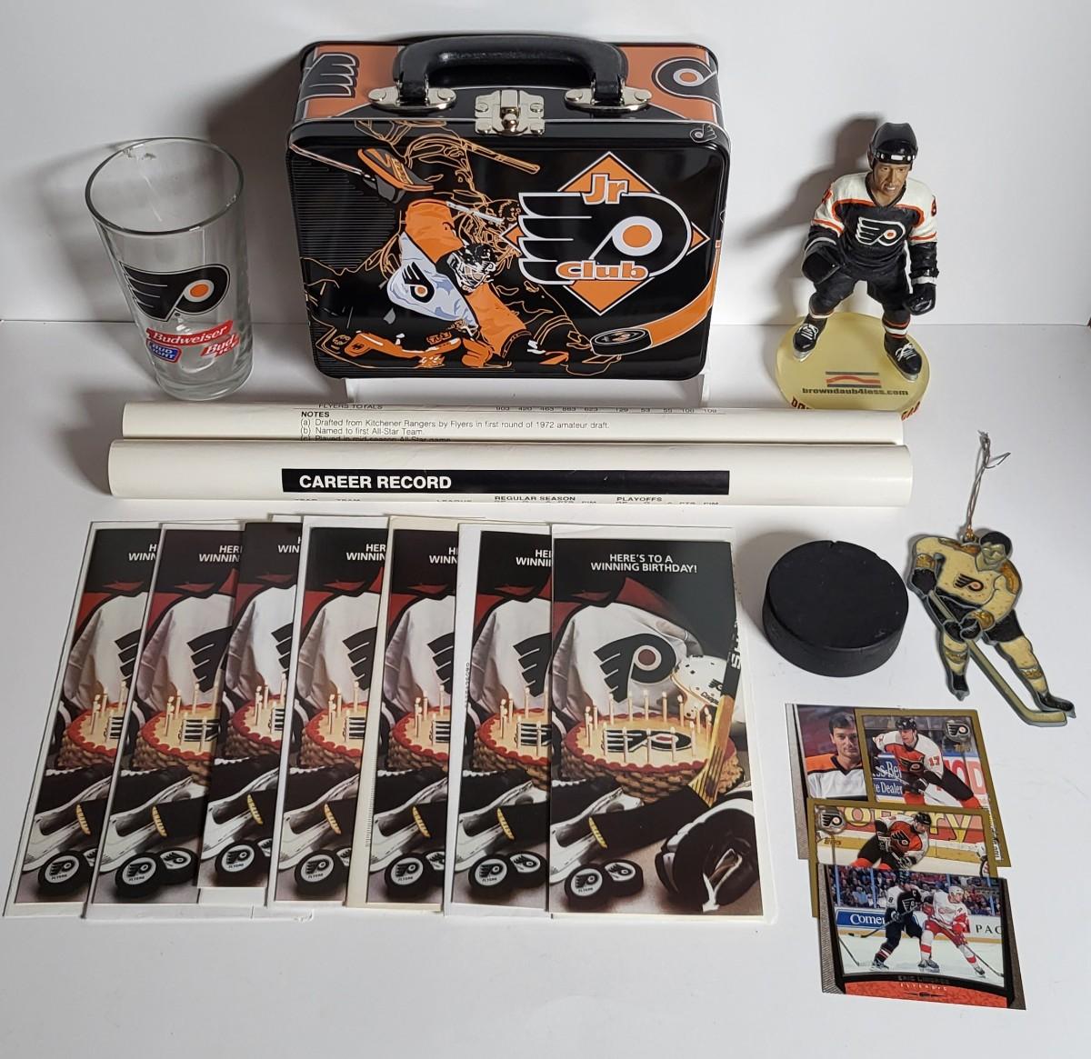LOT 60L: Philadelphia Flyers Memorabilia Lot Featuring Donald Brashear Bobblehead, Autographed Birthday Cards by Rod Brindamour, Eric Lindros and More