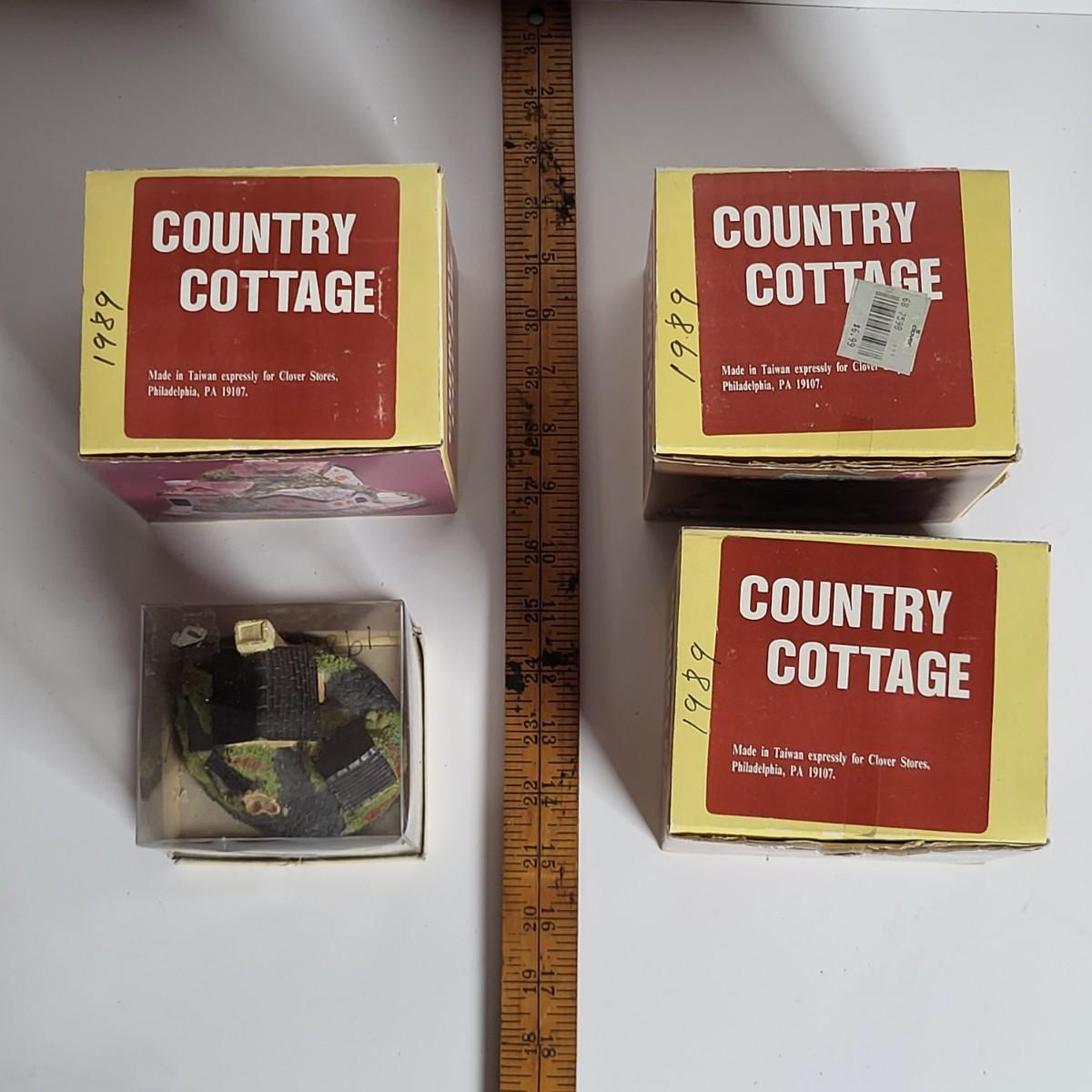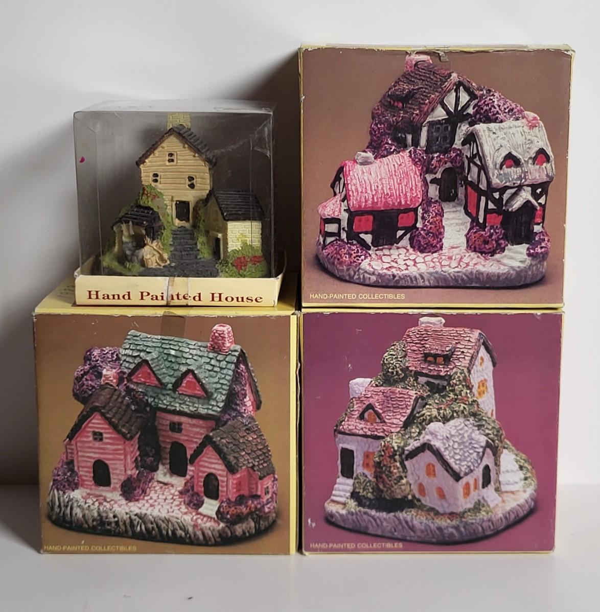 LOT 67X: Four Hand Painted Porcelain Country Cottage Houses from 1980's Little Village Collection Series