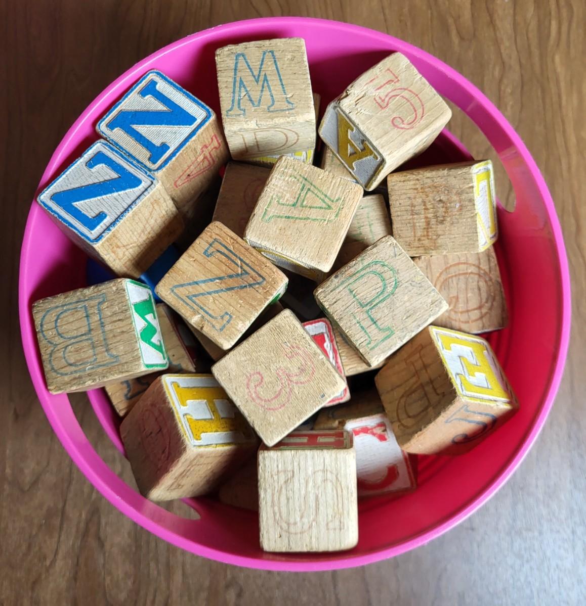 LOT 69L: Vintage Toy Lot Including Disney Books, Disney Blocks, Fisher Price and More