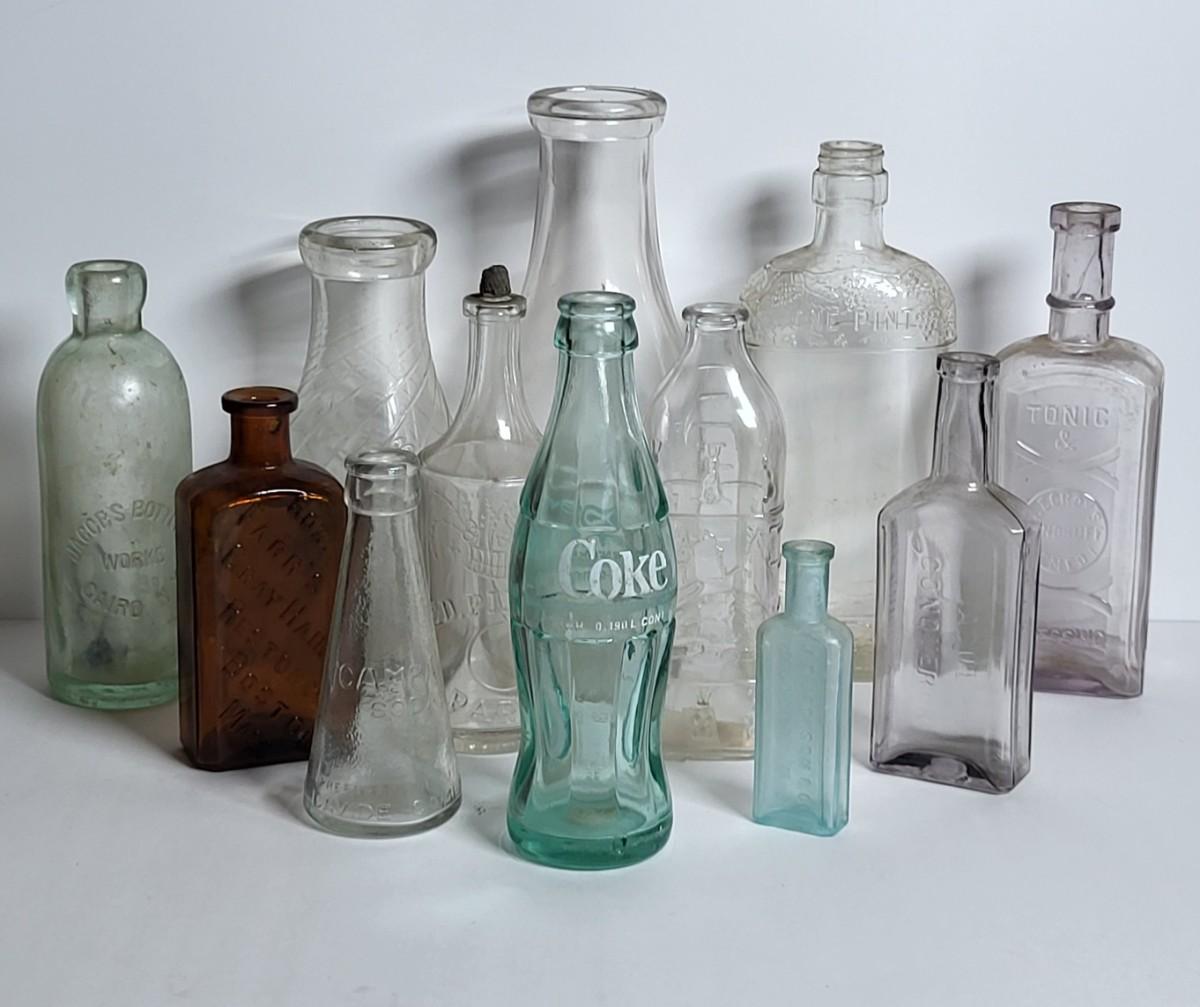 LOT 71L: Collection of Antique Glass Bottles Including Milk, Wine, Coca-Cola Bottles and More