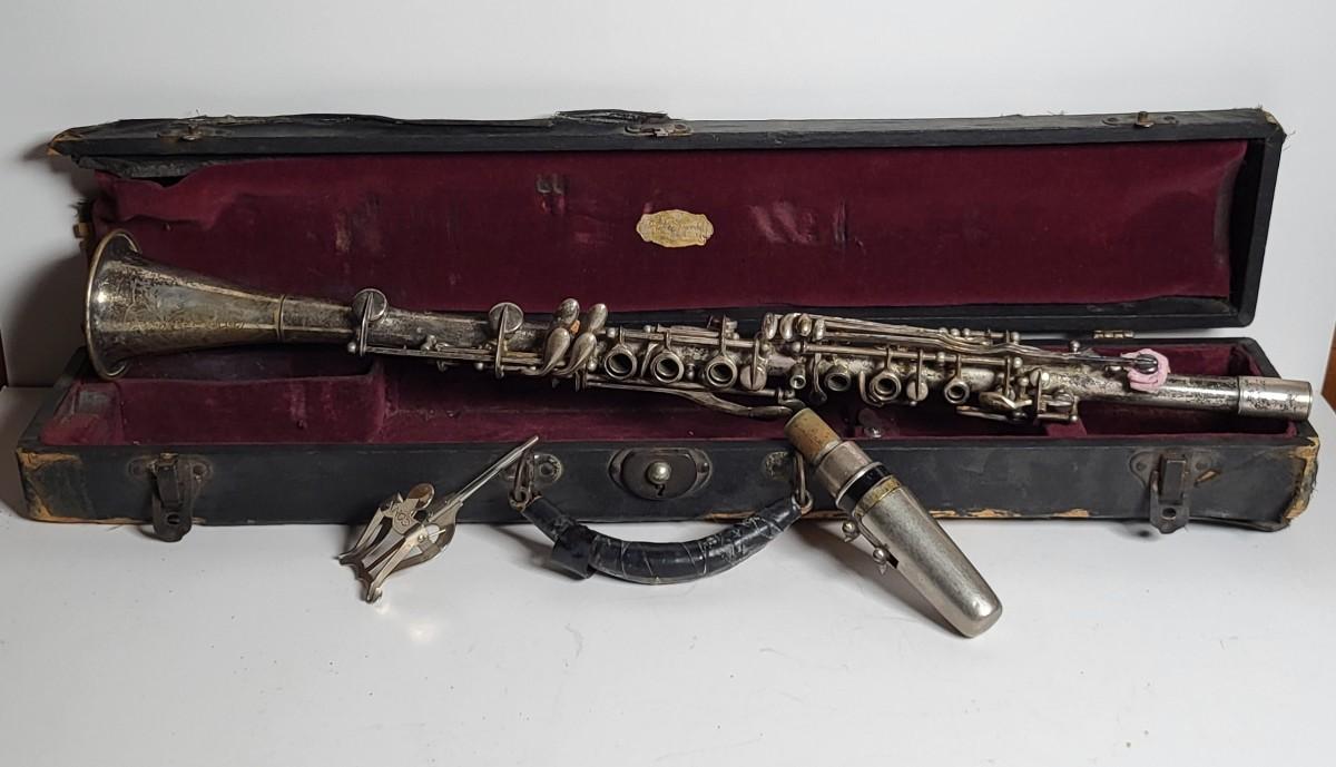 LOT 79X: Vintage Metal Clarinet with Mouth Piece and Carrying Case