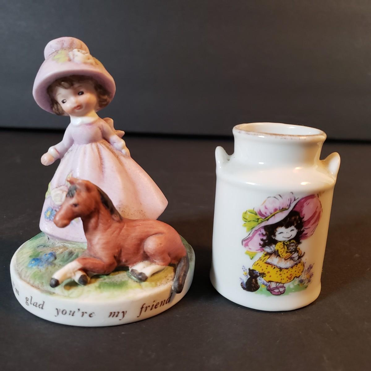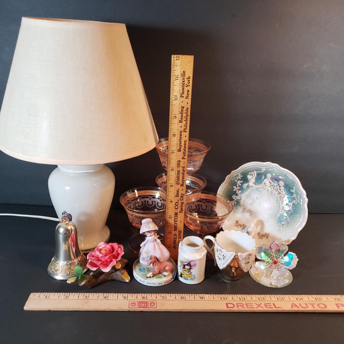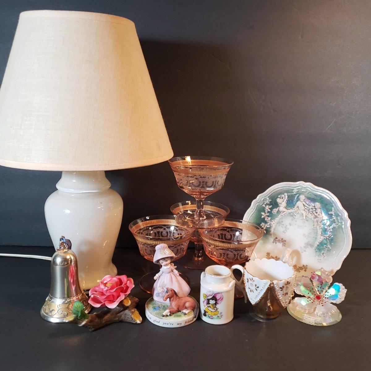 LOT 95X: Decorative Tabletop Assortment; German Porcelain incl. Nappy Dish, Gold Rimmed Pink Glass & More