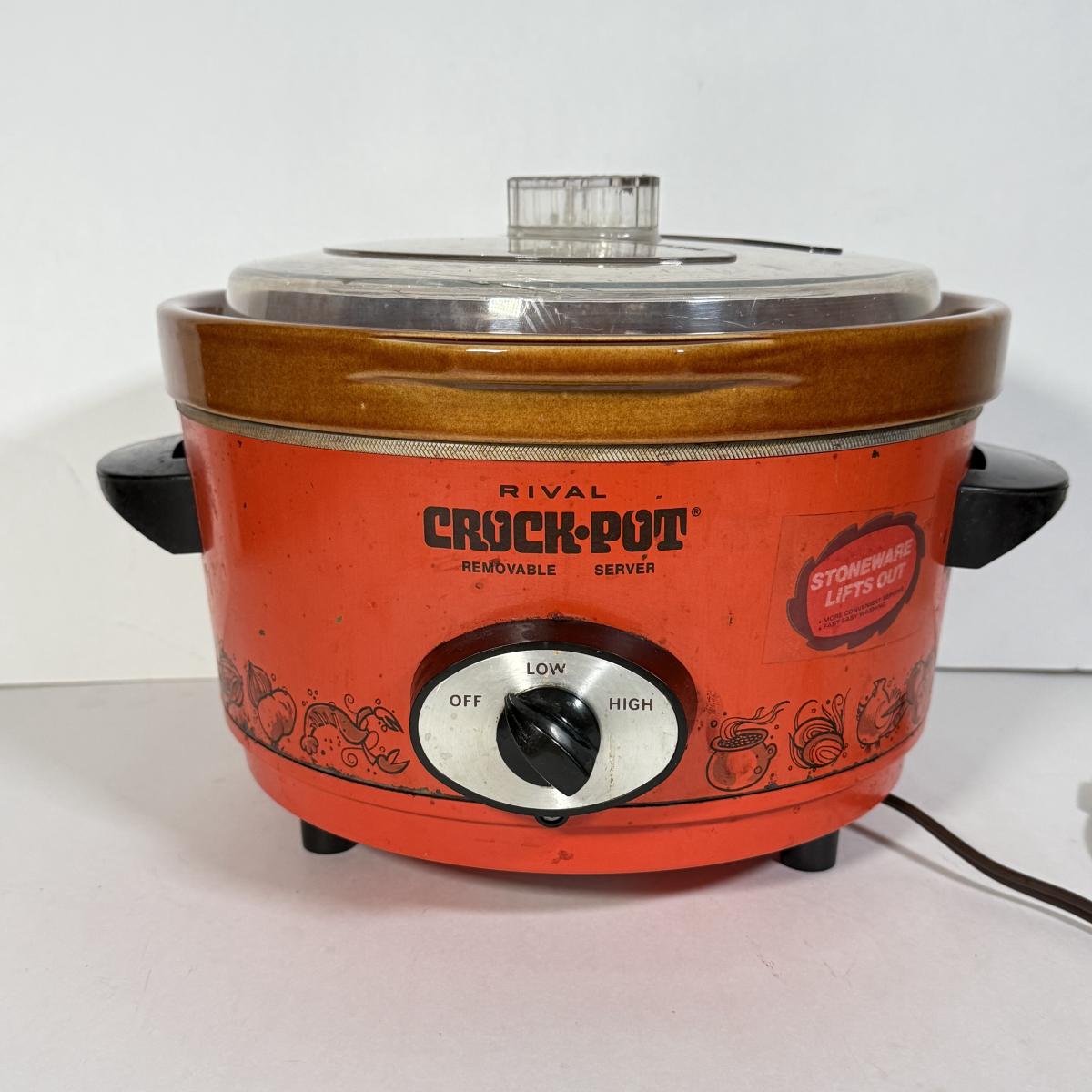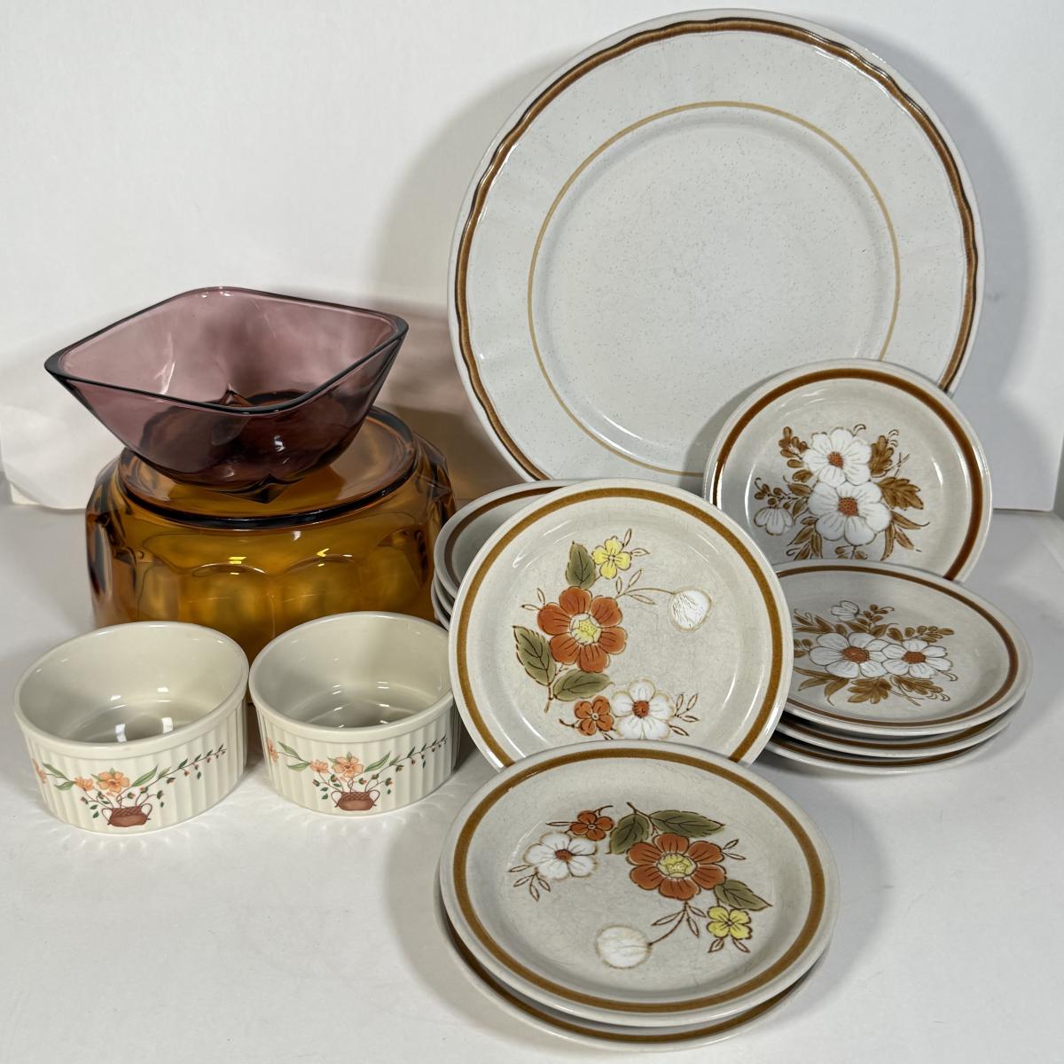 LOT 107D: Vintage Orange Rival Stoneware CrockPot, Countryside Stoneware Collection Dishes & More