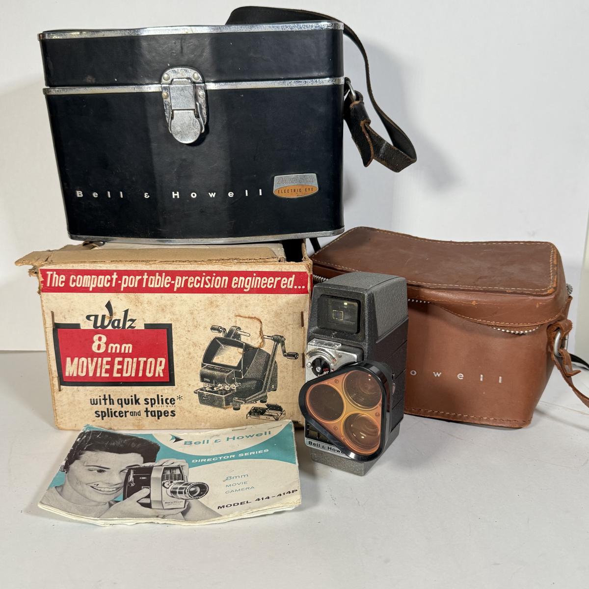LOT 110D: Vintage Bell & Howell Electric Eye Movie Cameras & Walz 8mm Movie Editor Splicer