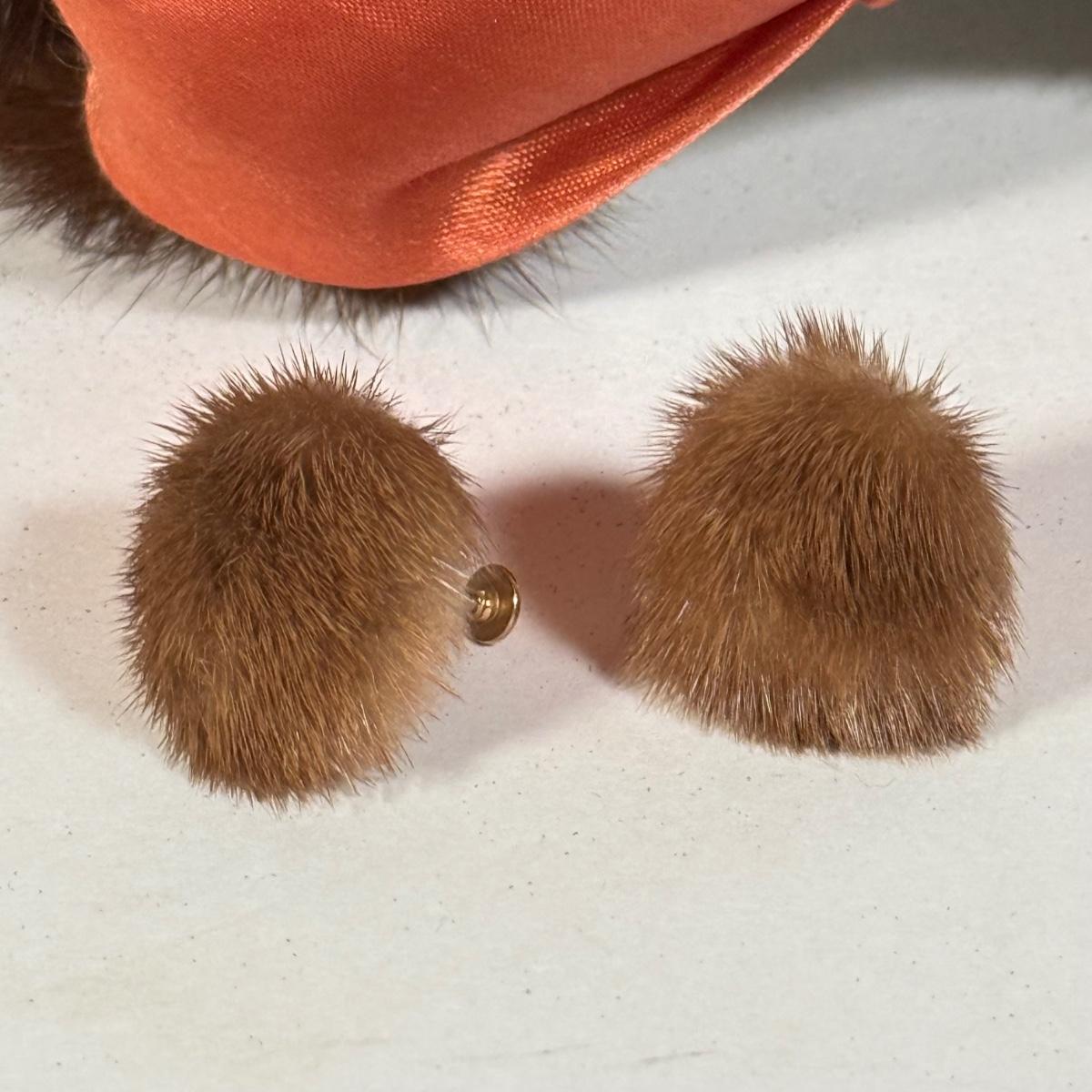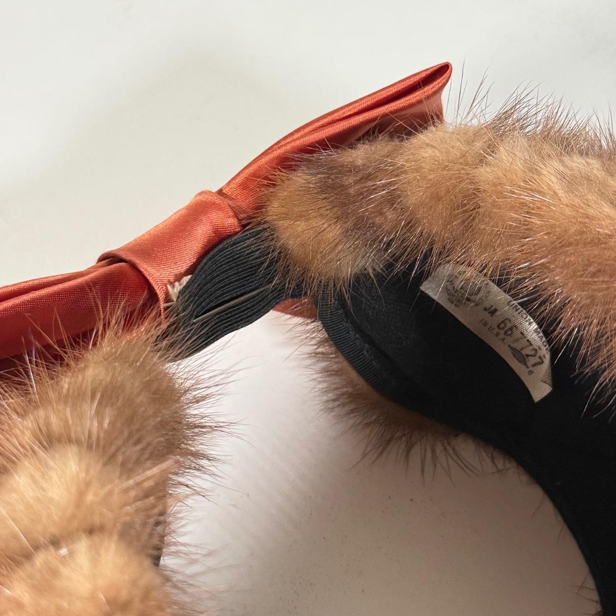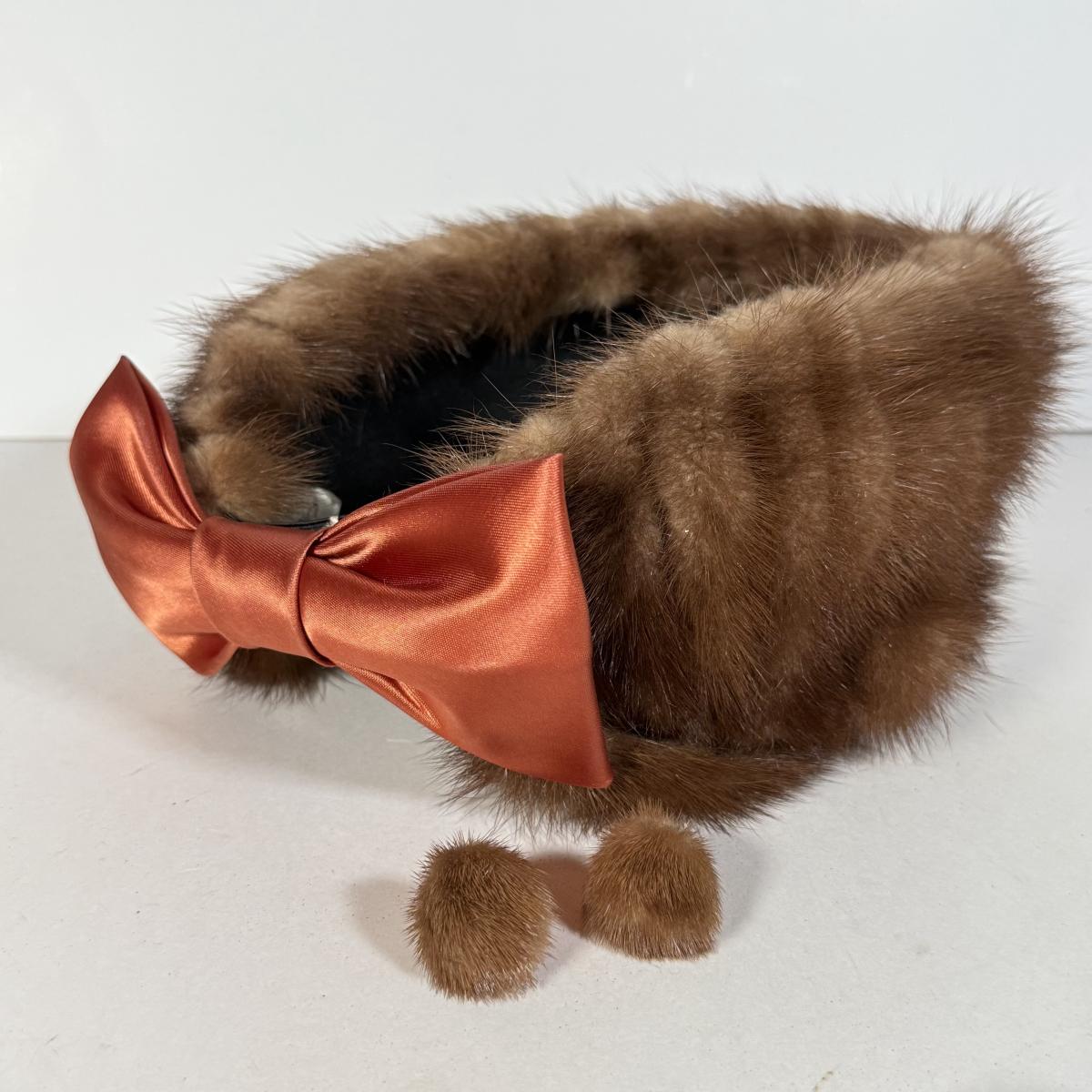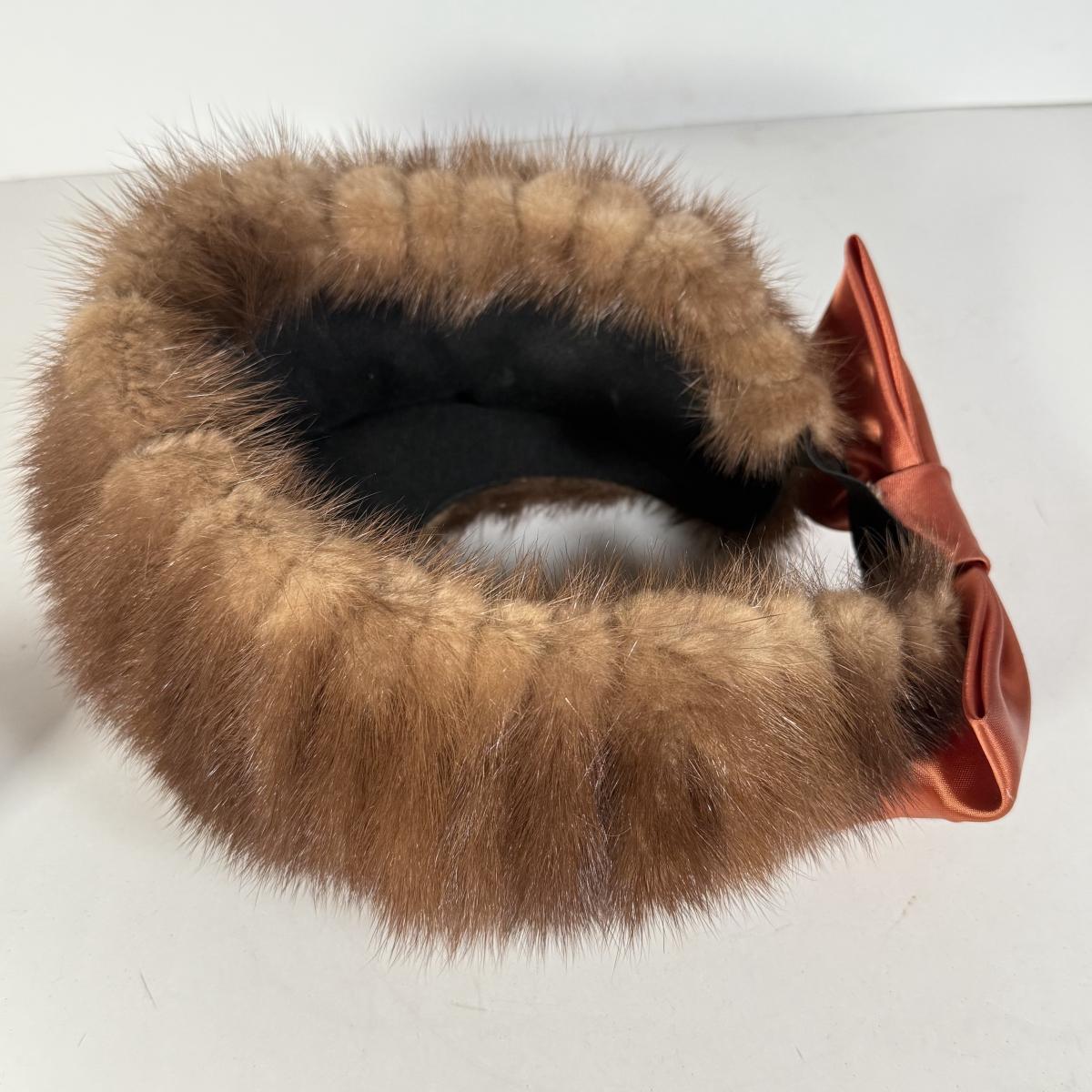 LOT 112D: Gorgeous Vintage Mink Fur Hat w/ Bow & Matching Screwback Earrings