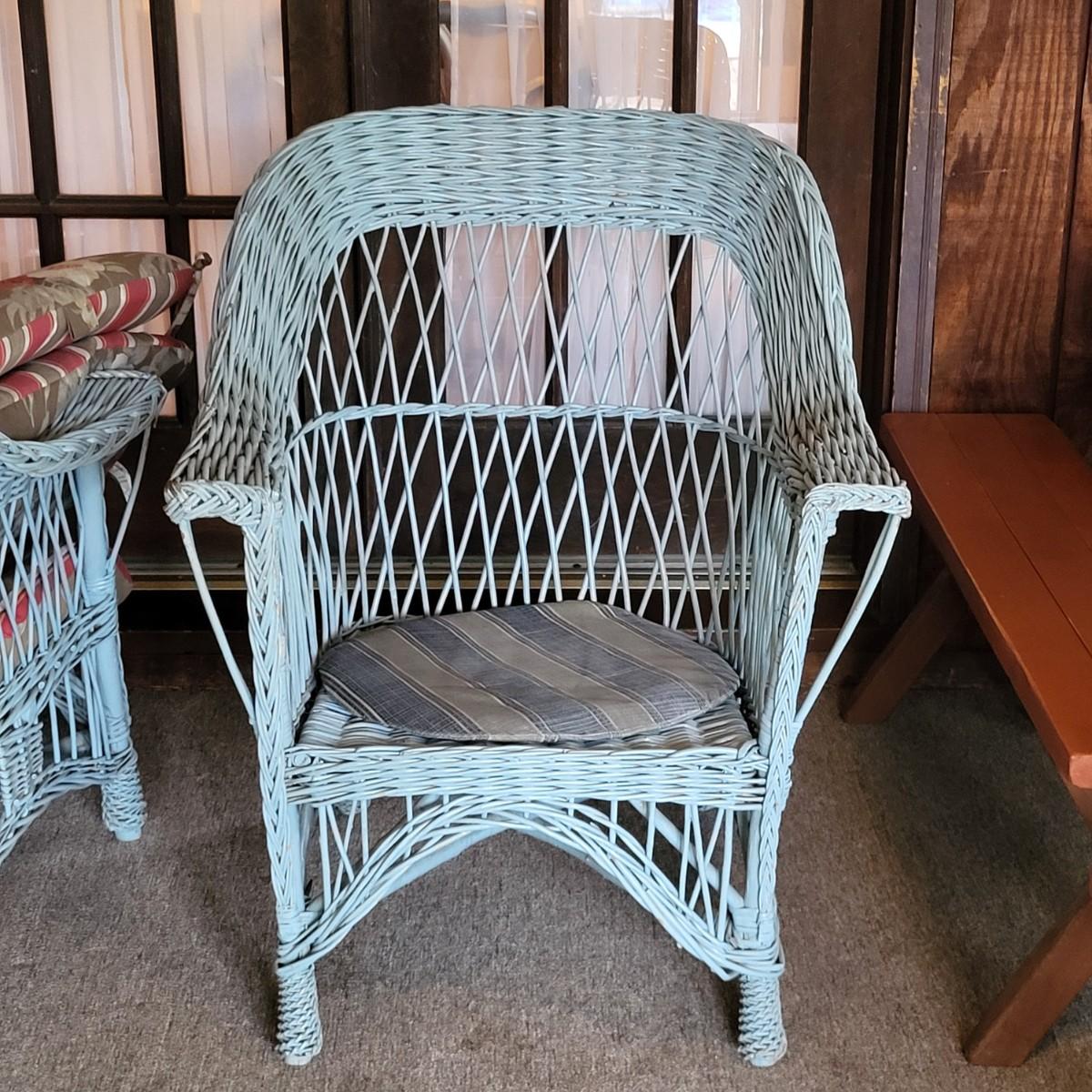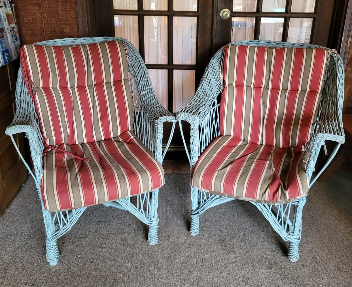 LOT 123P: Pair of Wicker Porch Chairs with Cushions