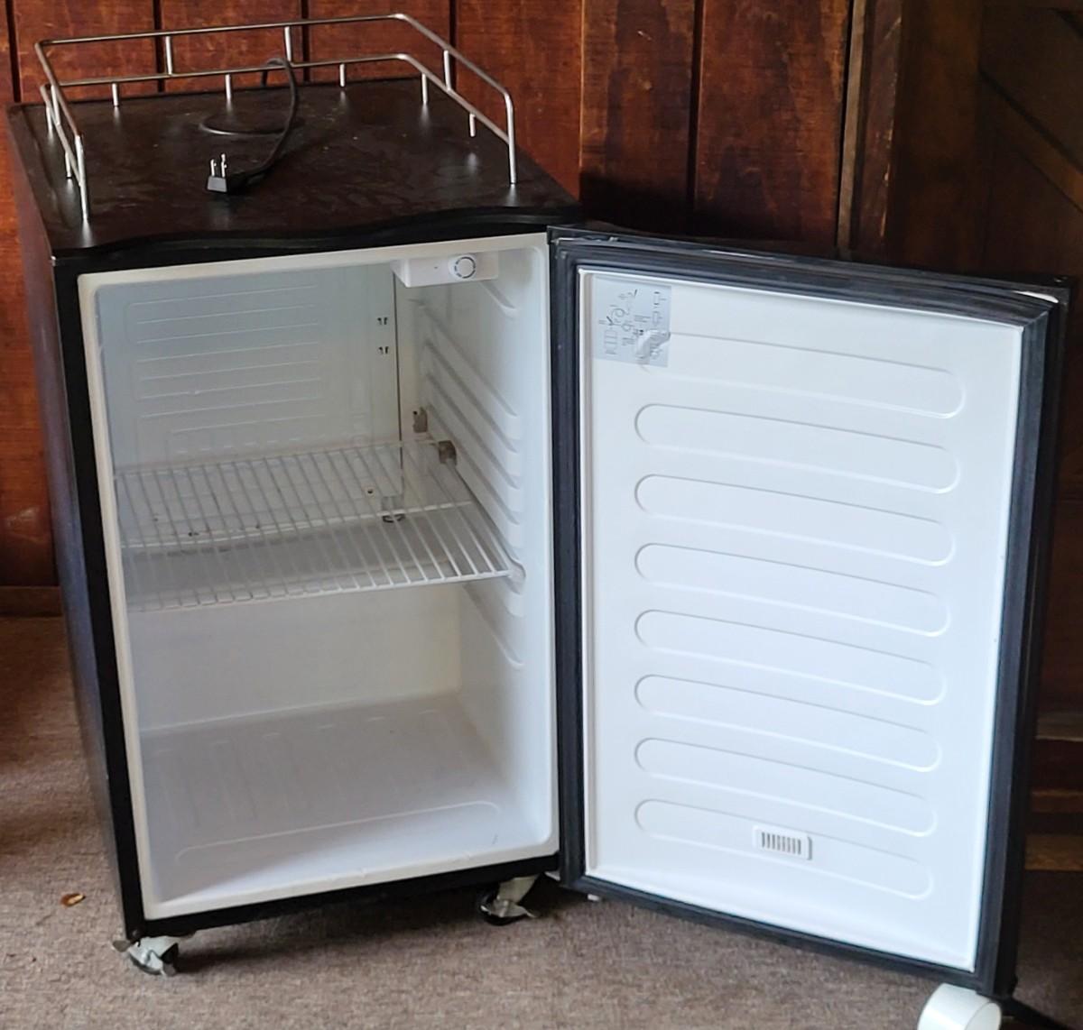 LOT 125P: Black Kegger Meister Mini Fridge on Wheels