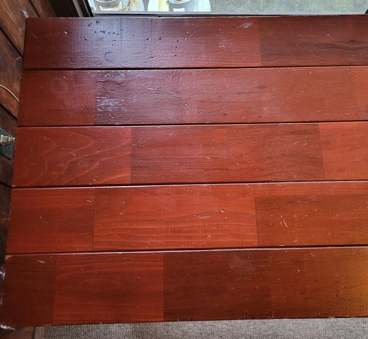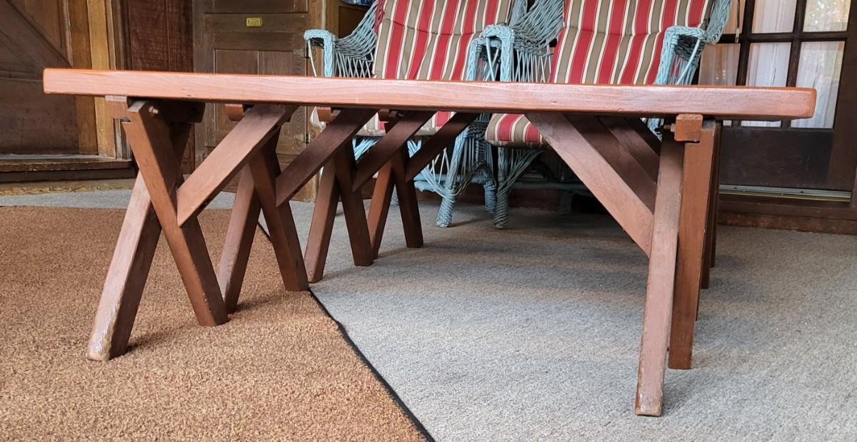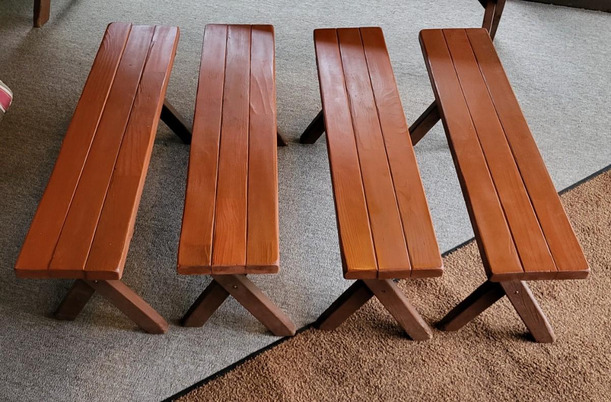 LOT 126P: Long Redwood Picnic Table with Four Bench Chairs