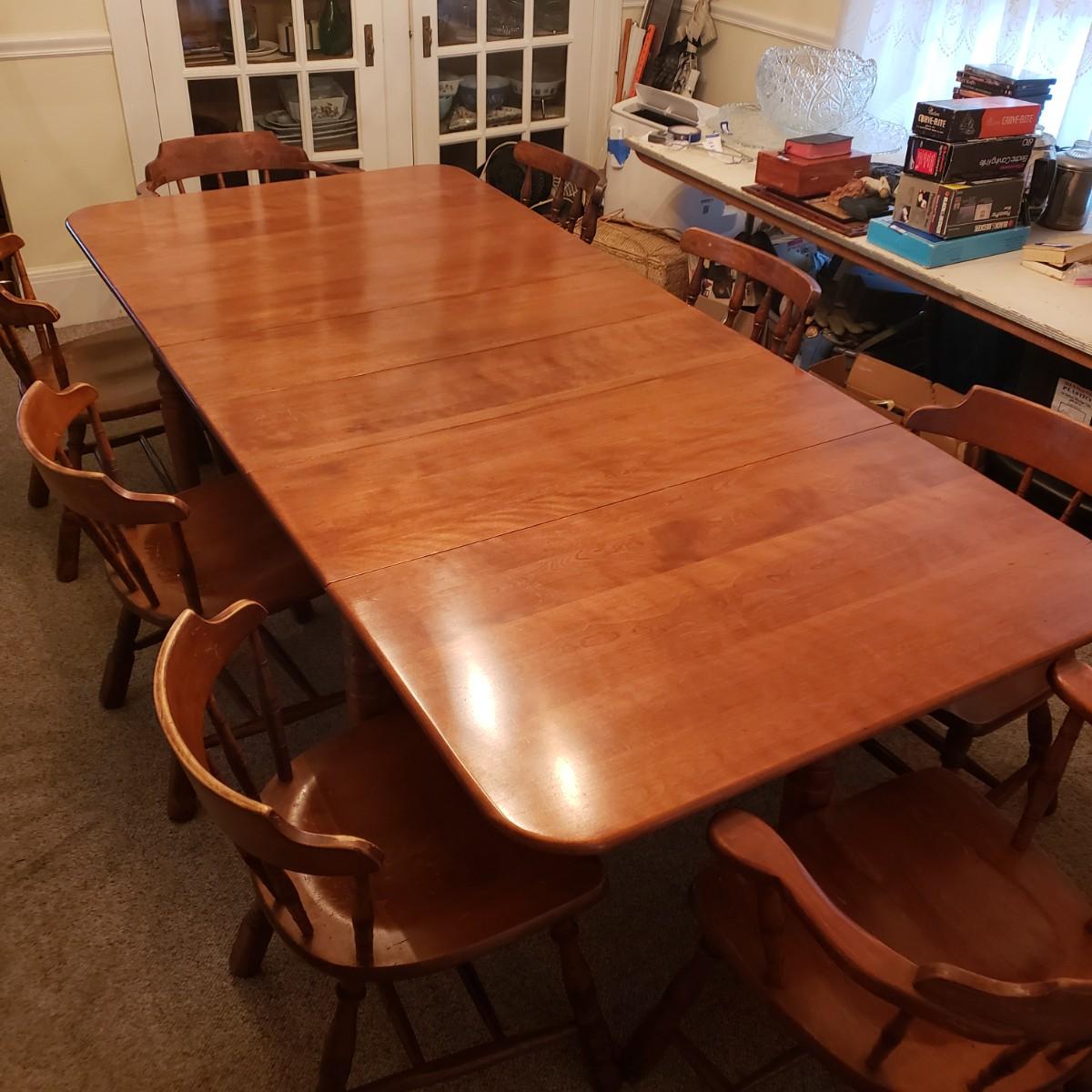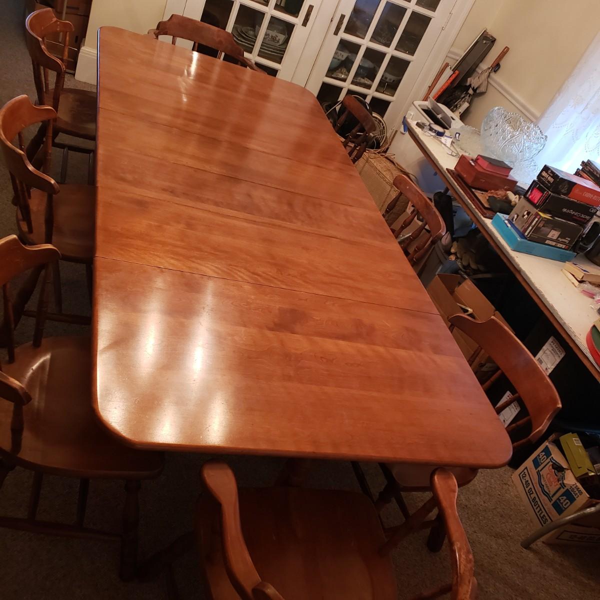 LOT 128D: Vintage Rockport Maple Gateleg Dining Table with 8 Chairs (6 matching)