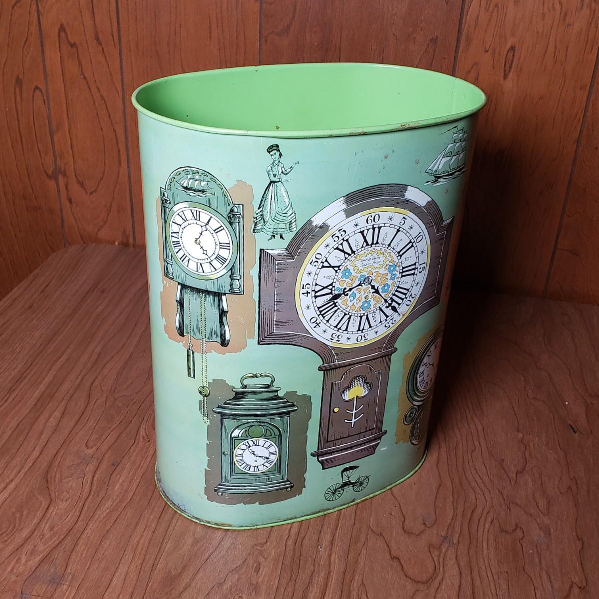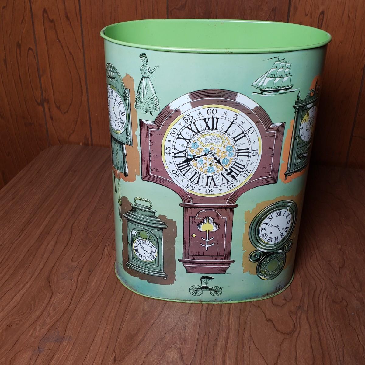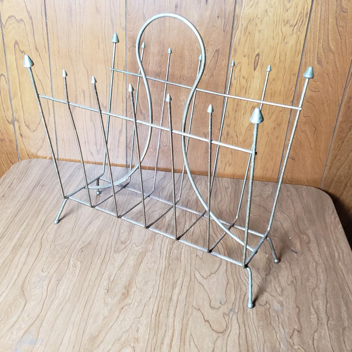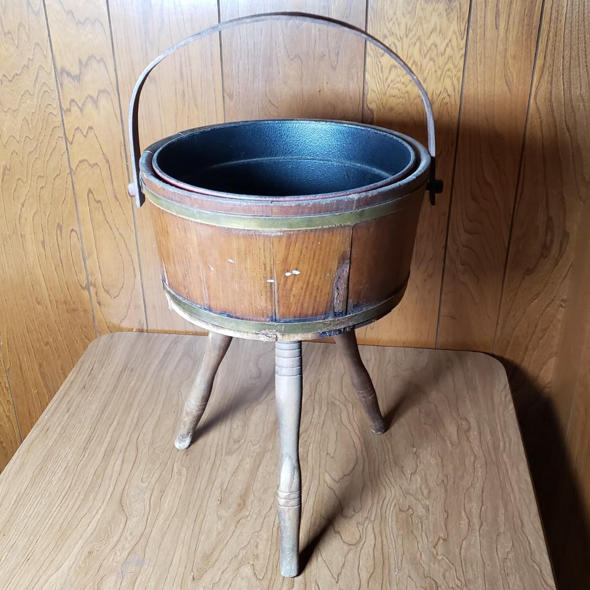 LOT 129L: MCM Decor; Magazine Rack, Wastebasket, Americana Bucket Plantstand