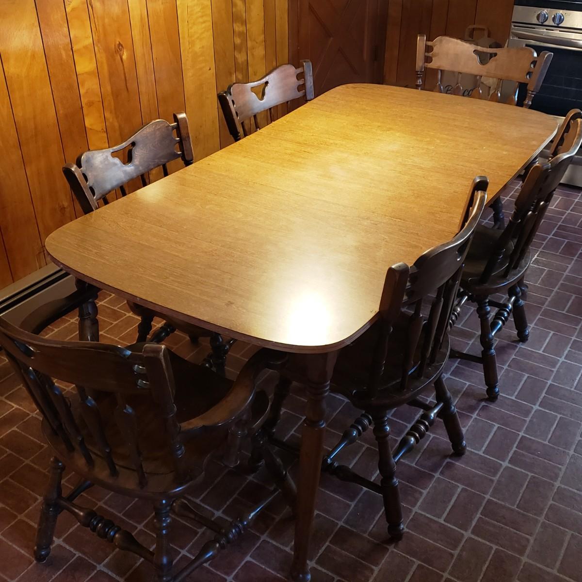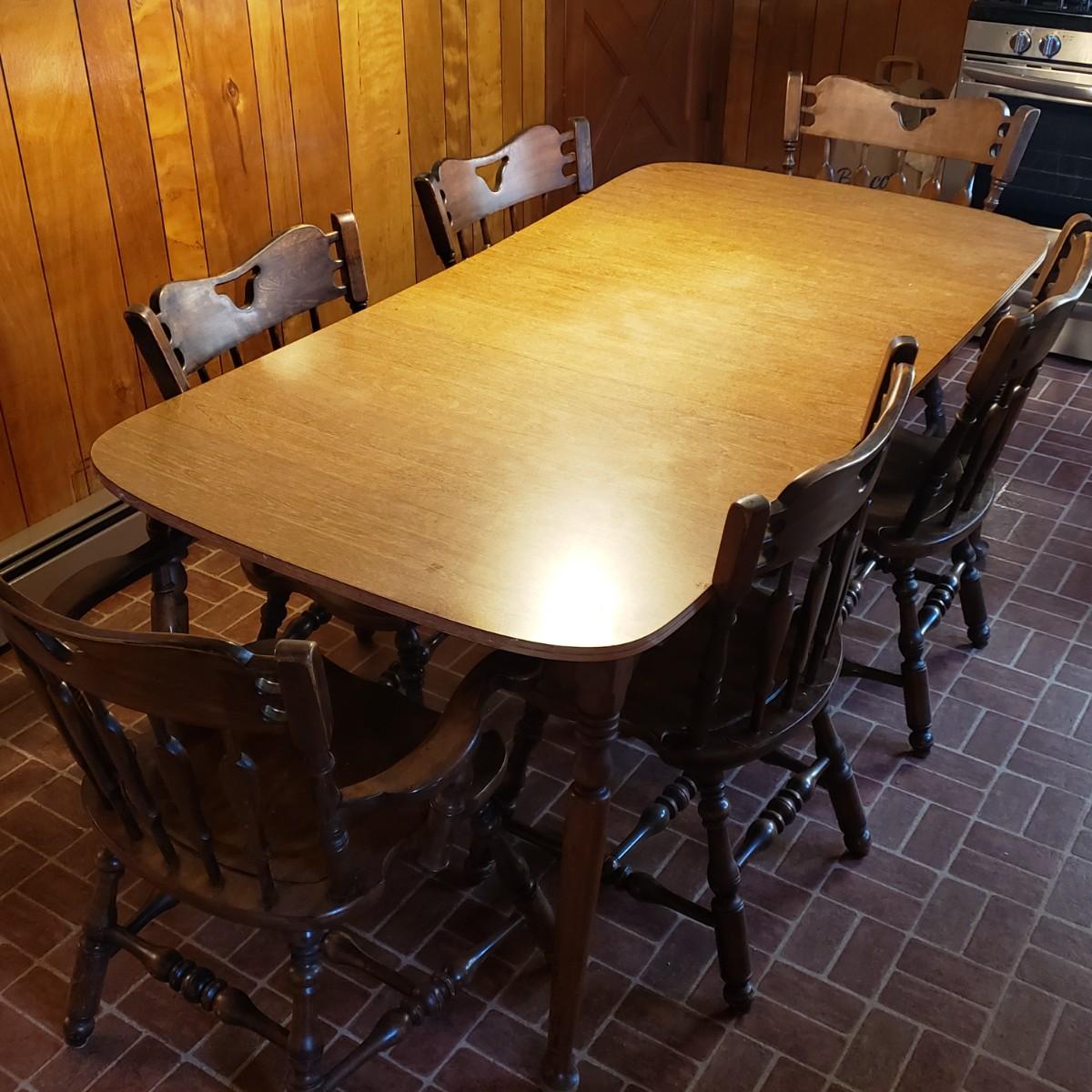 LOT 130K: Vintage Kitchen/Dining Table with 6 Matching Chairs