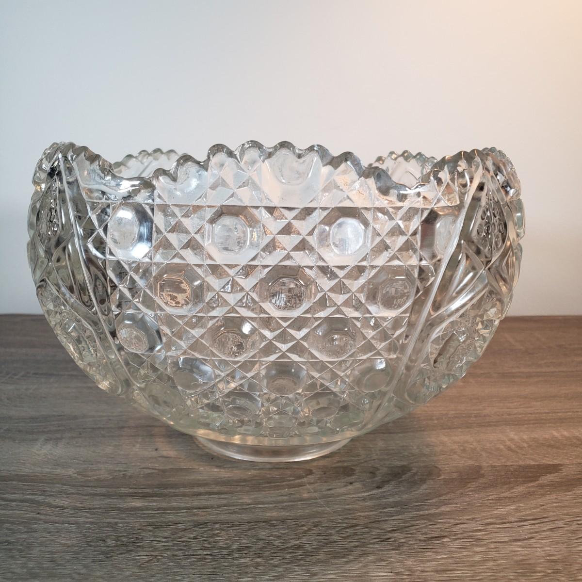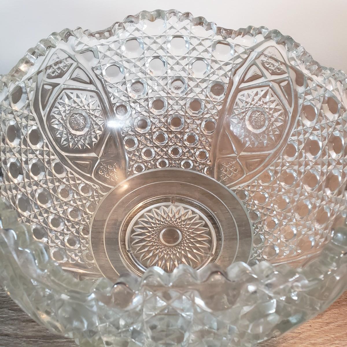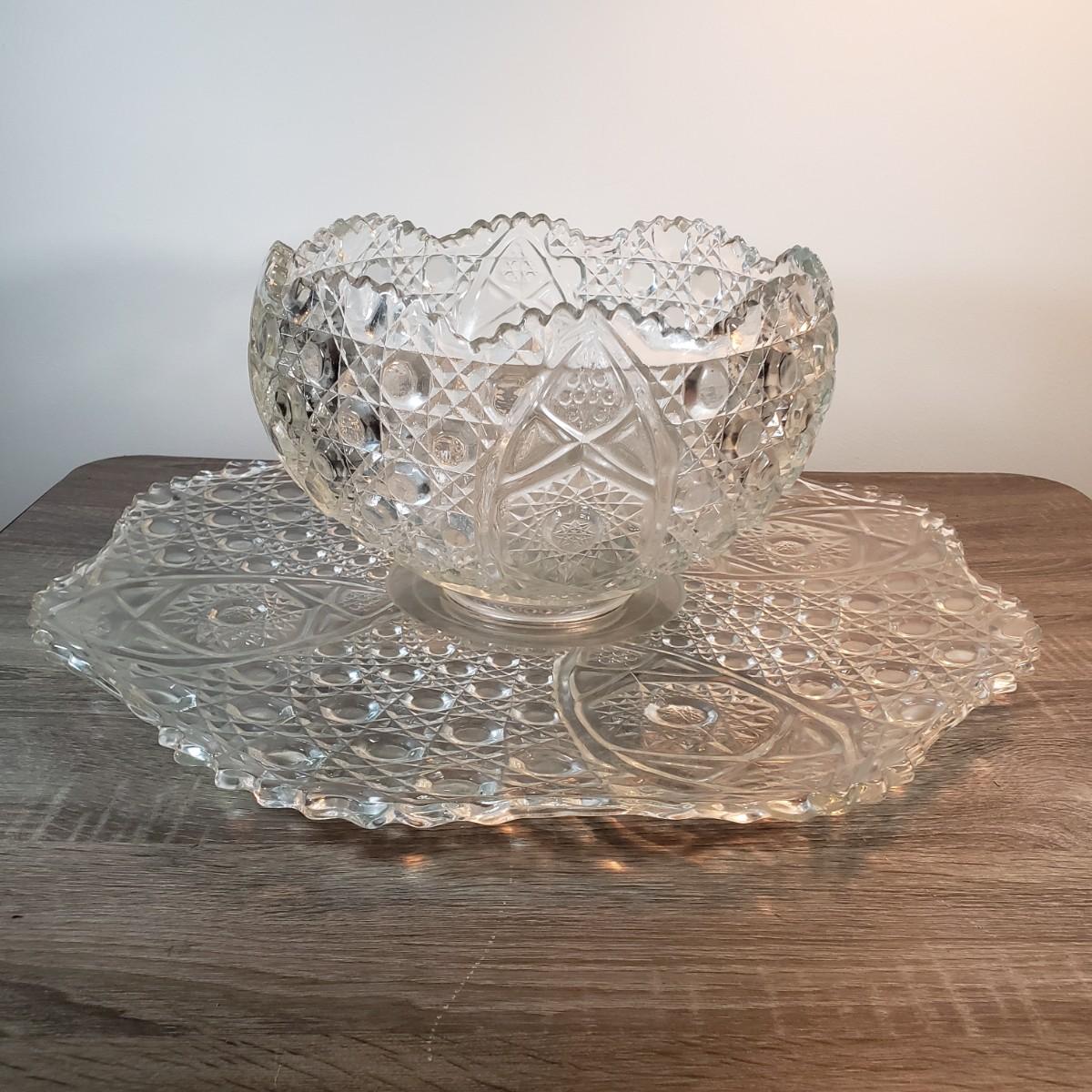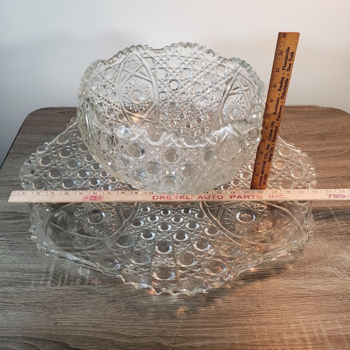 LOT 134D: Extra Large Daisy and Button Glass Bowl & Tray-Salad/Punch Bowl-Great for Entertaining