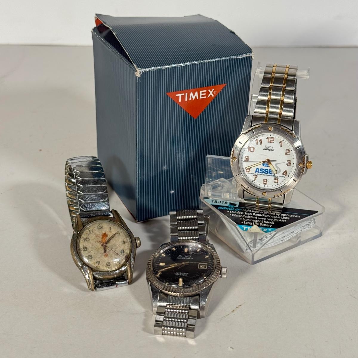 LOT 145D: Vintage Men's Watches: Timex w/ Box, Bulova & Helios