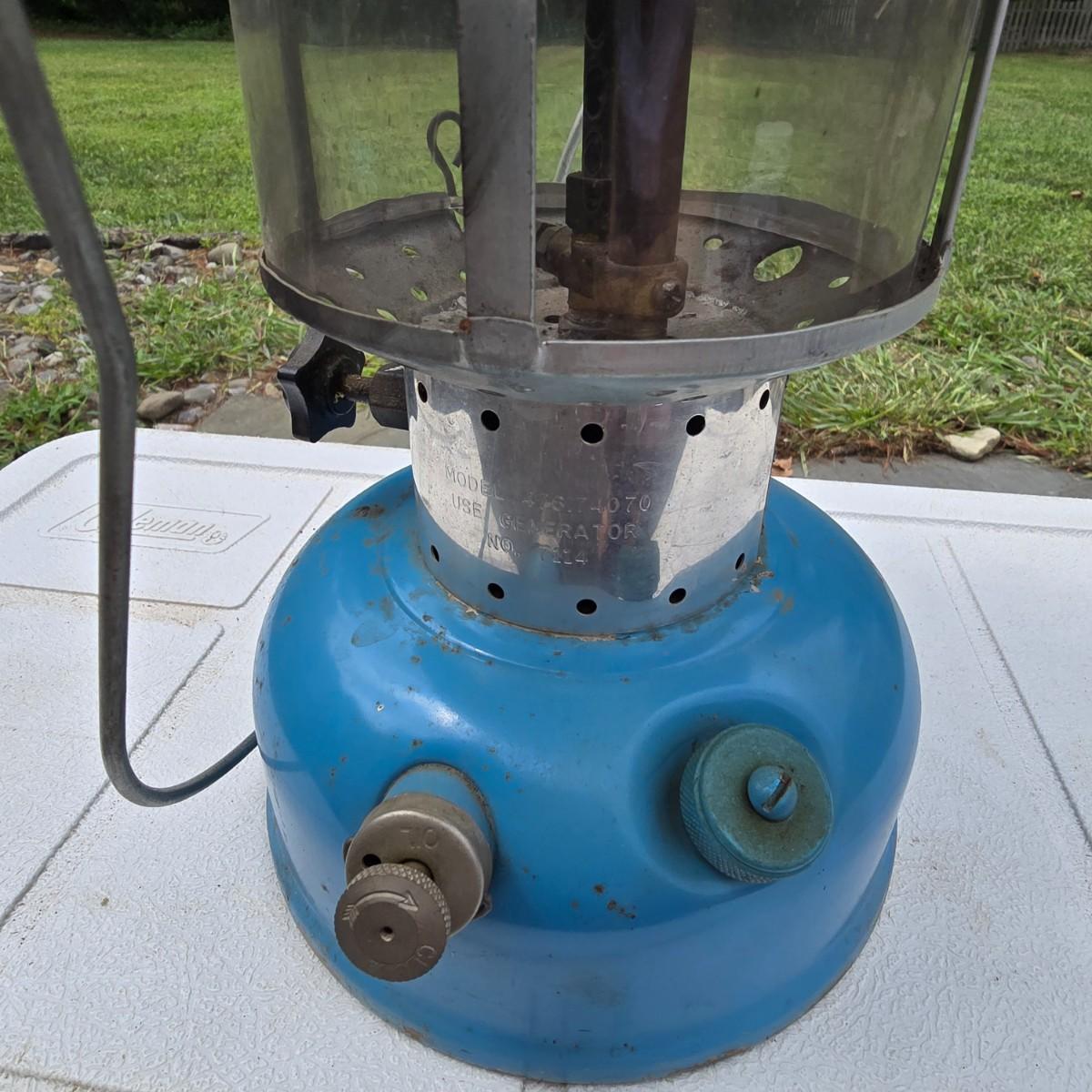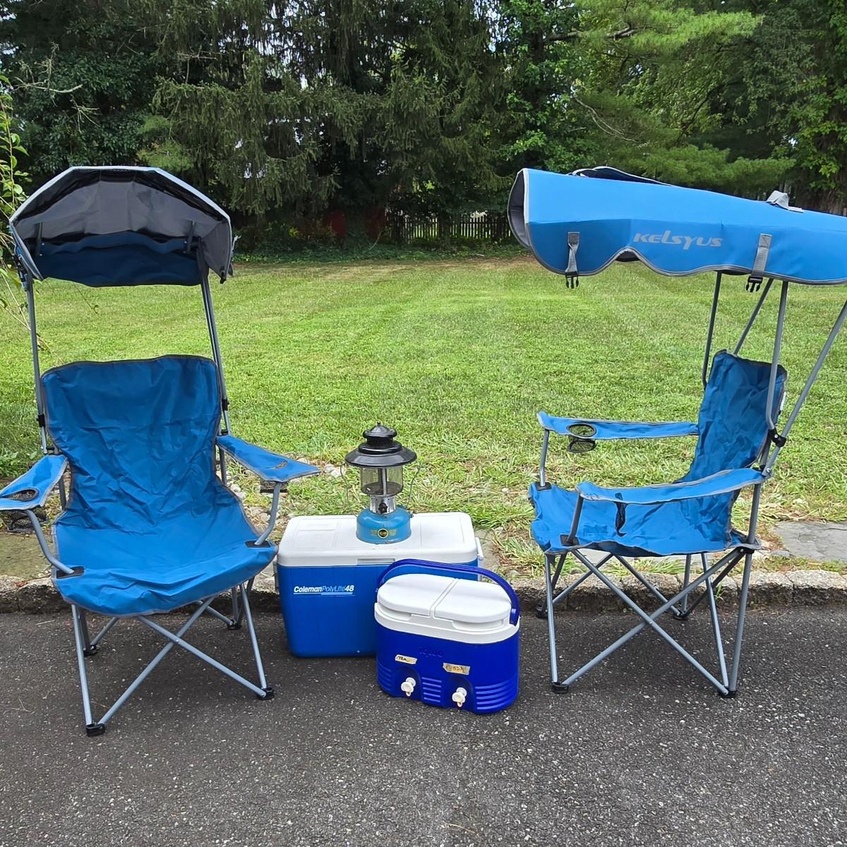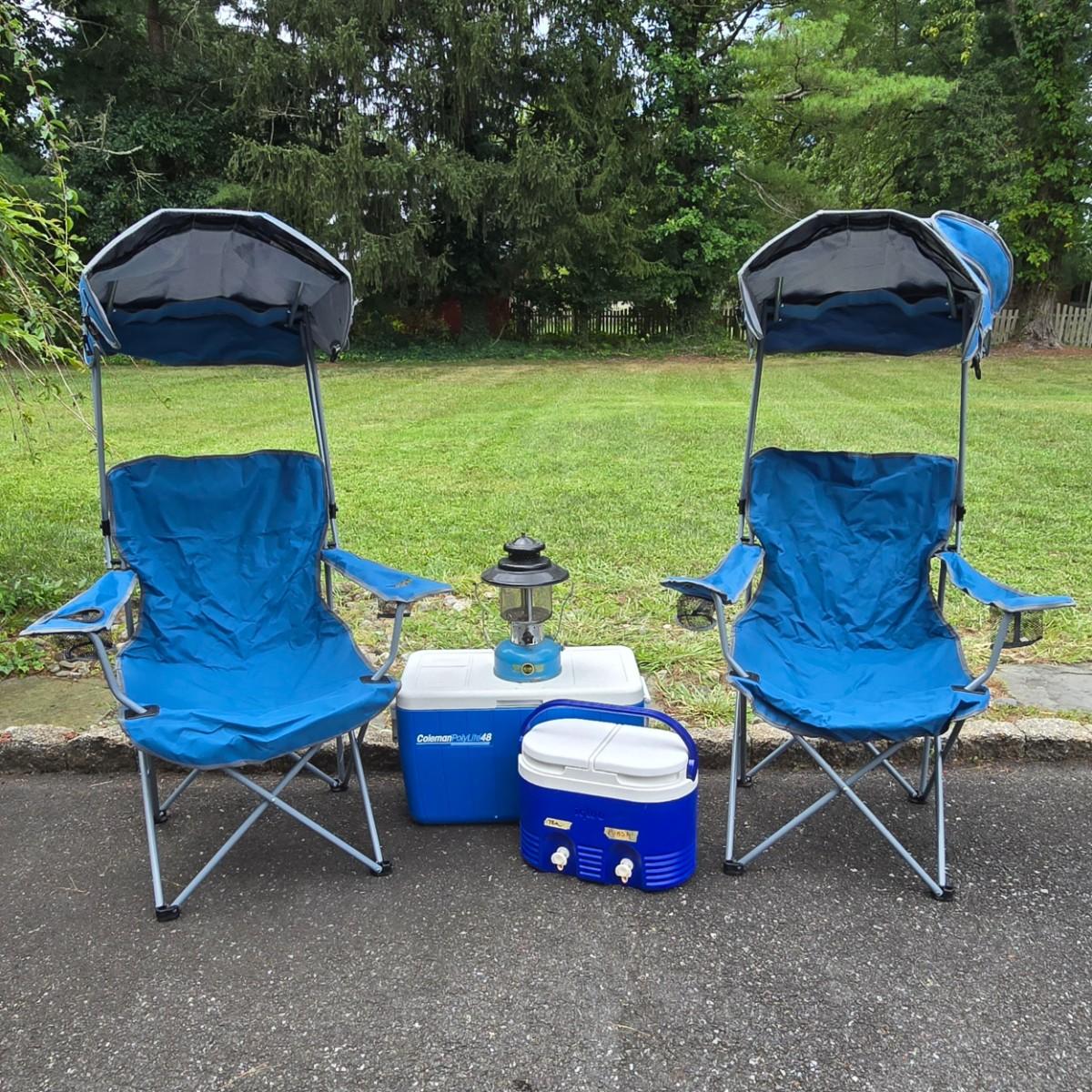 LOT 8a: Sears Kerosene Lantern with Camping Chairs, Coleman Cooler, and Igloo Drink Cooler