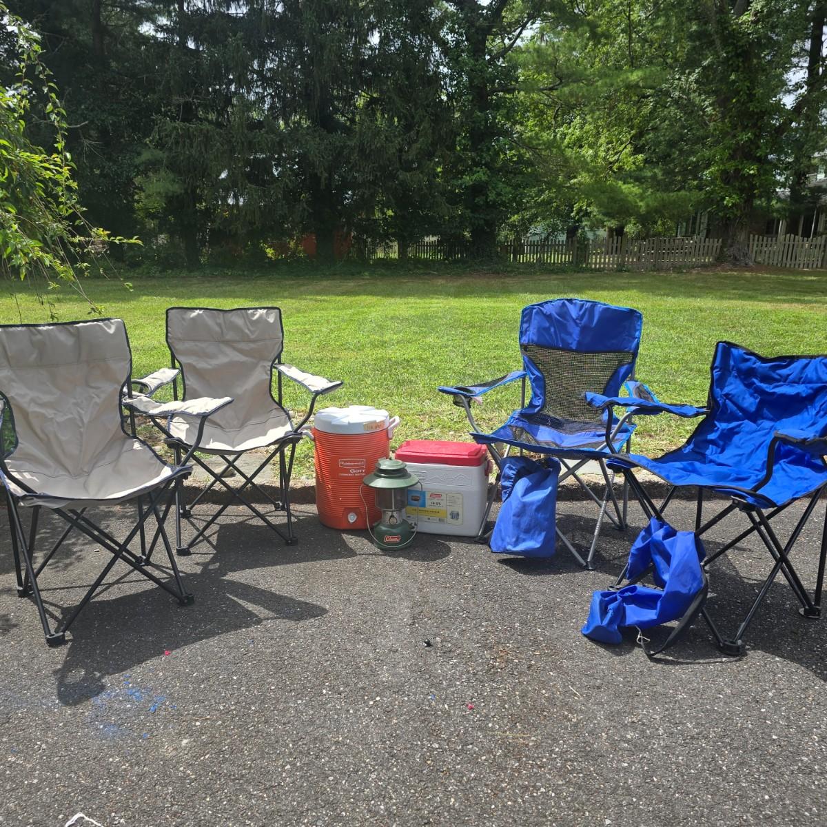 LOT 9a: Kerosene Lantern with 4 Camping Chairs and 2 Coolers