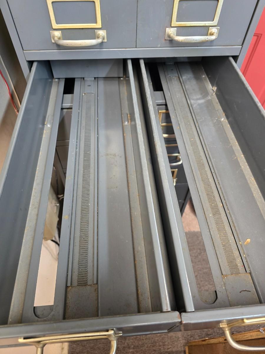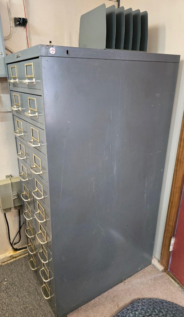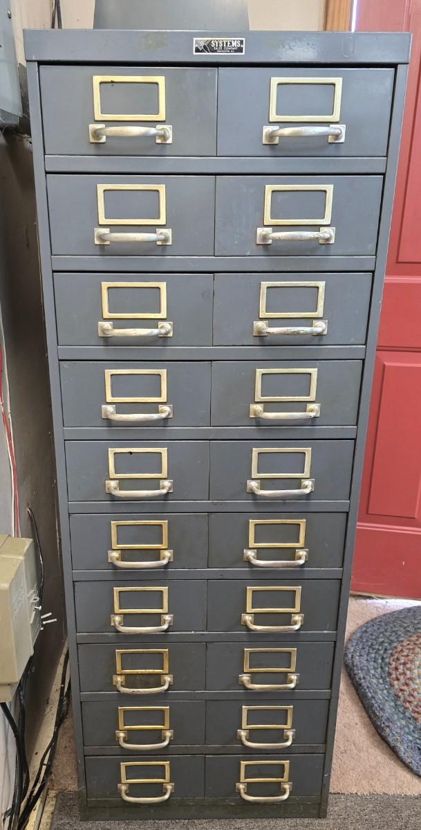 LOT 11A: Metal Card Catalog with Brass Handles and Vetical File Holder