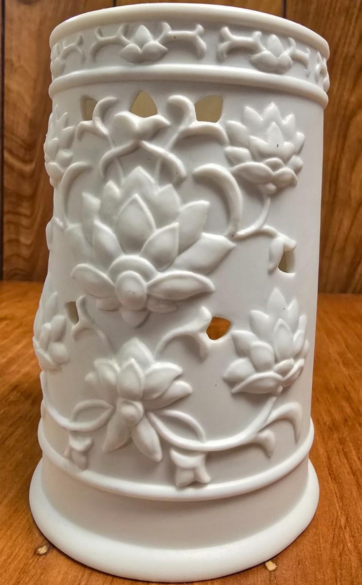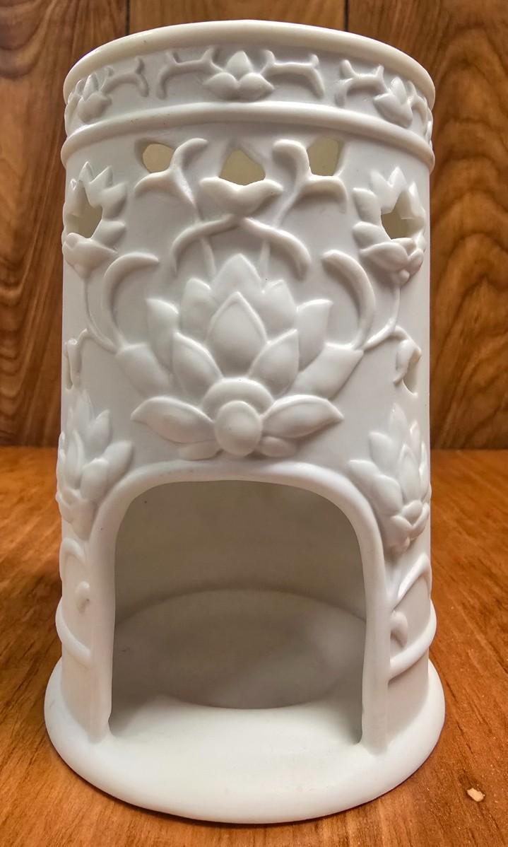 LOT 21s: Potato Bin with Various Candles and Candle Holders