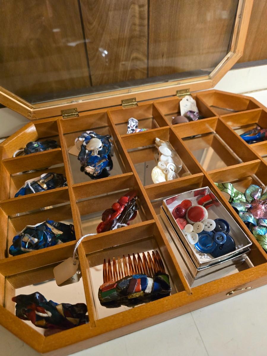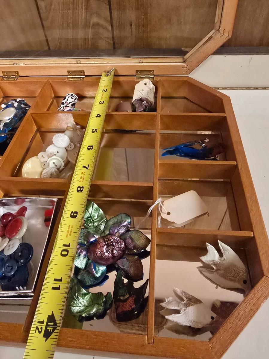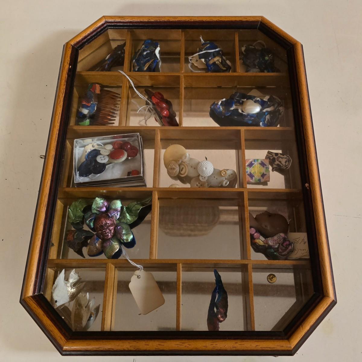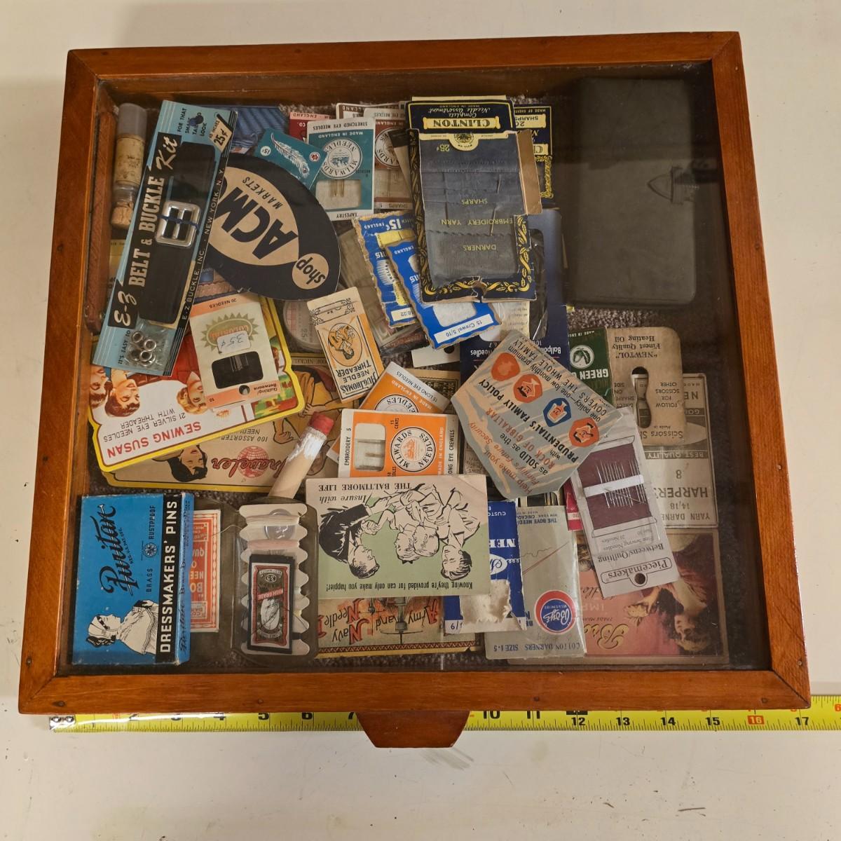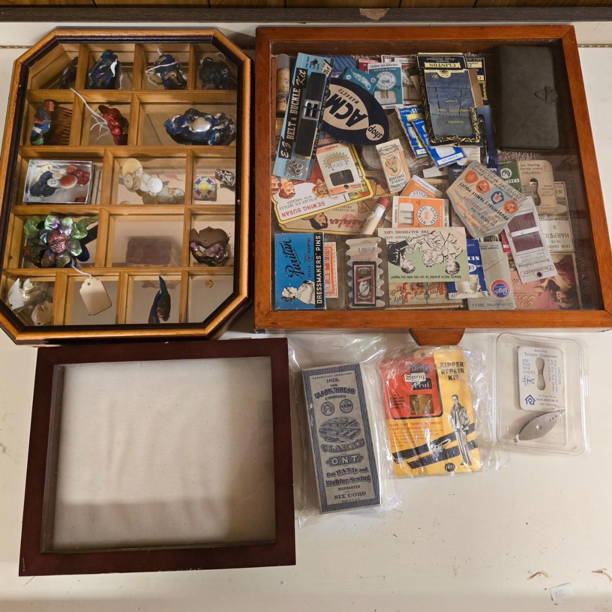 LOT 23s: Display Cases with Antique/Vintage Advertising Sewing Notions and Handcrafted Resin Jewelry