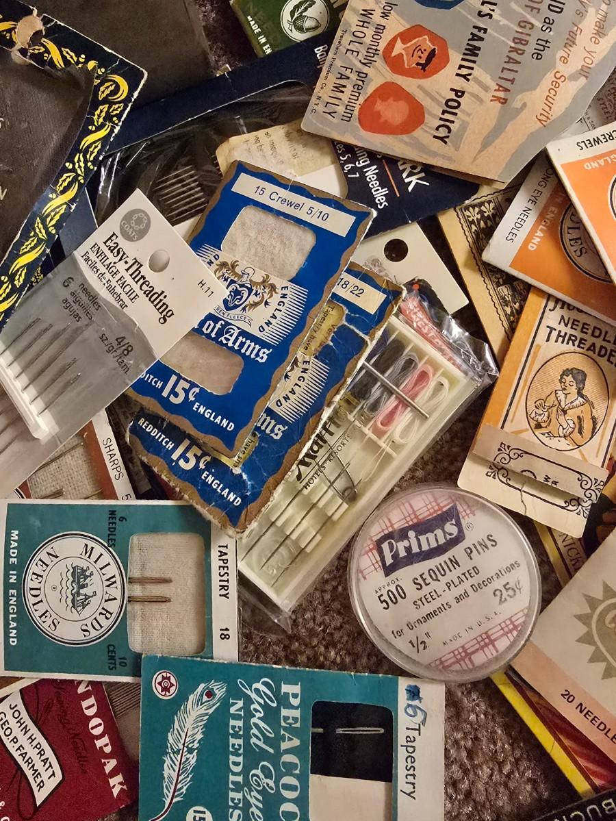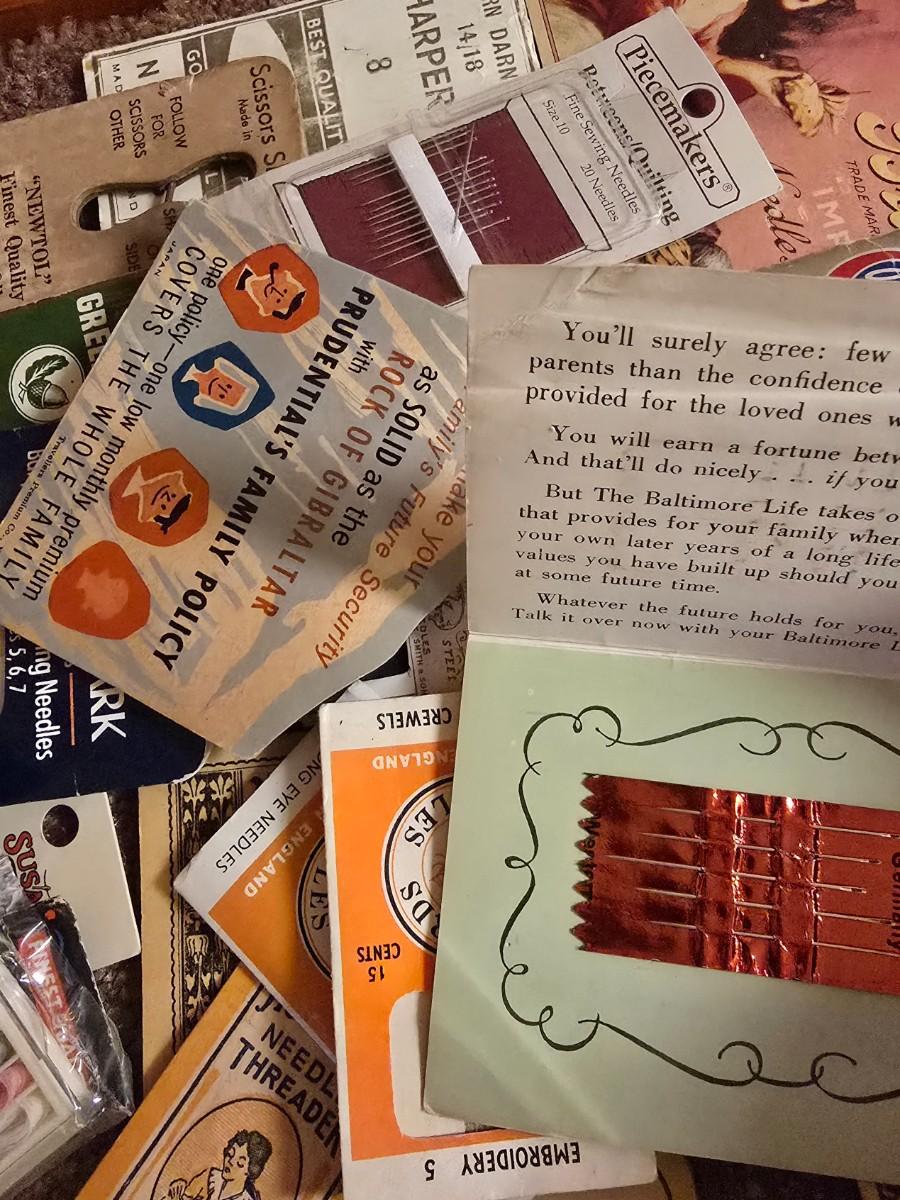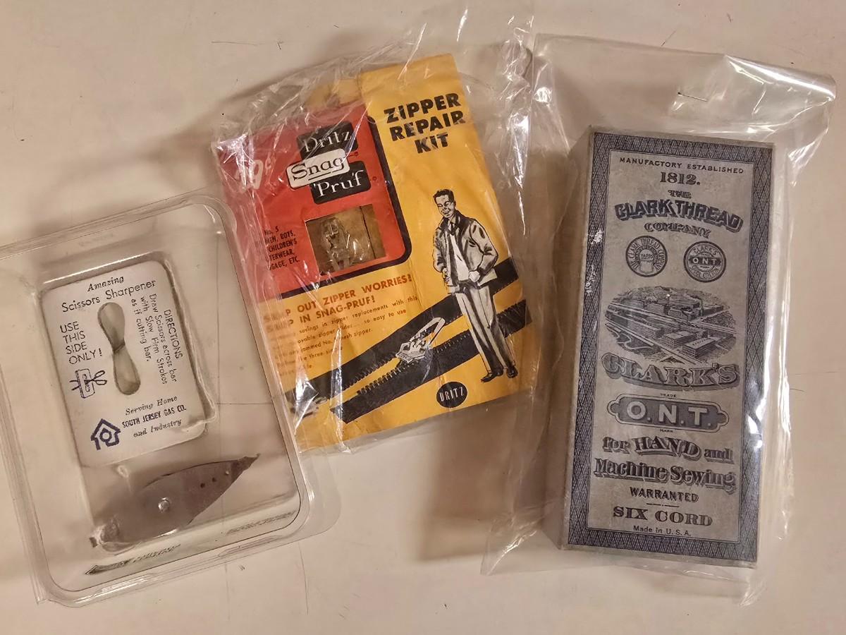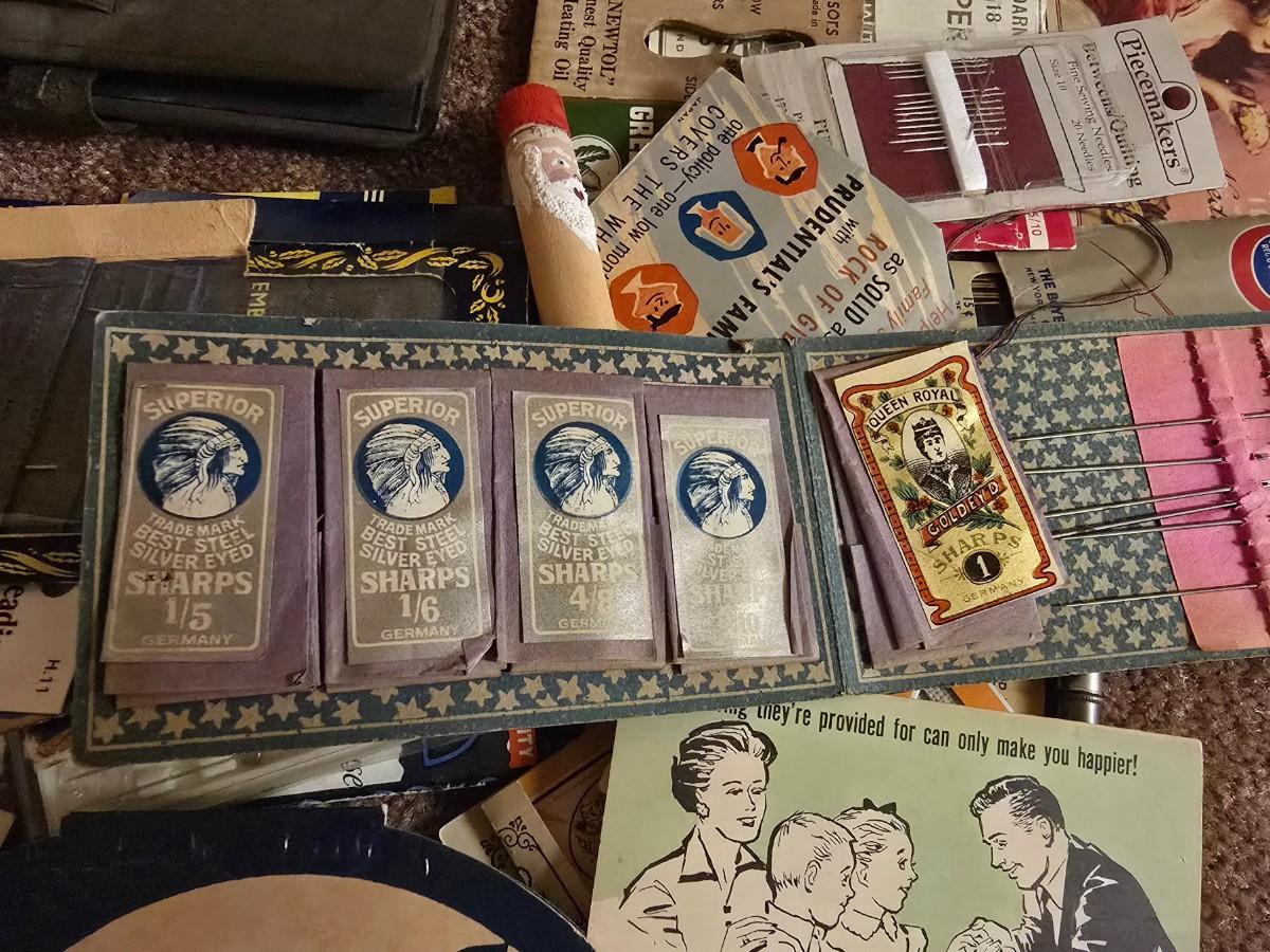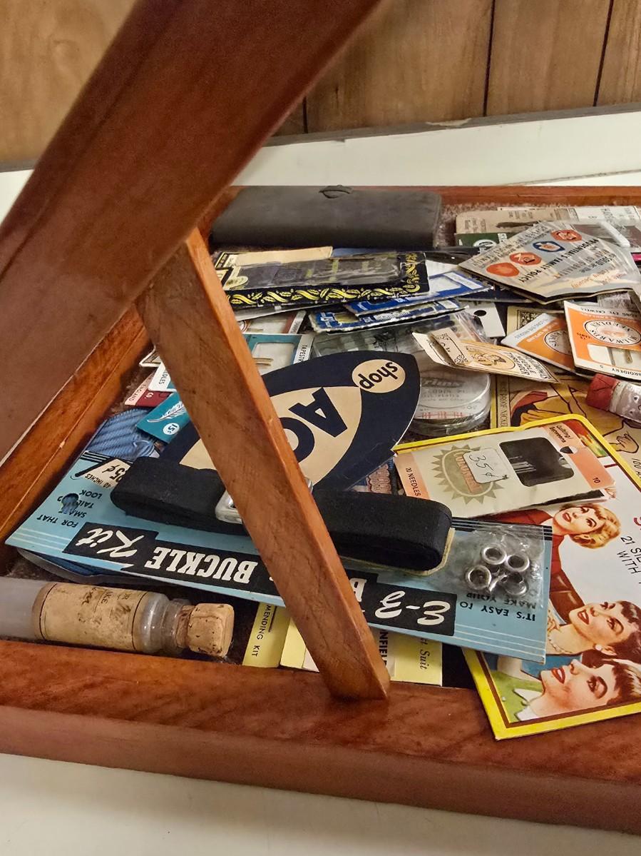 LOT 23s: Display Cases with Antique/Vintage Advertising Sewing Notions and Handcrafted Resin Jewelry