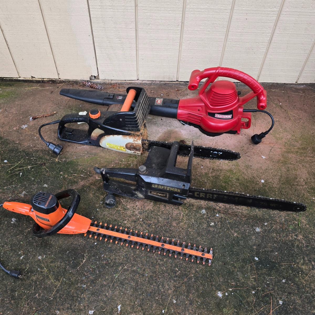 LOT 30b: Craftsman Electric Landscaping, 2 Chainsaws, Hedgetrimmer, and Blower