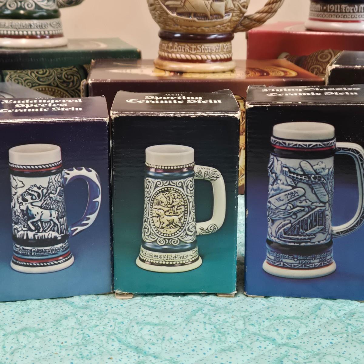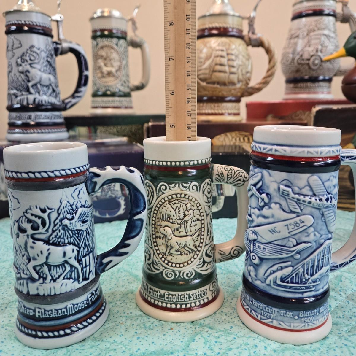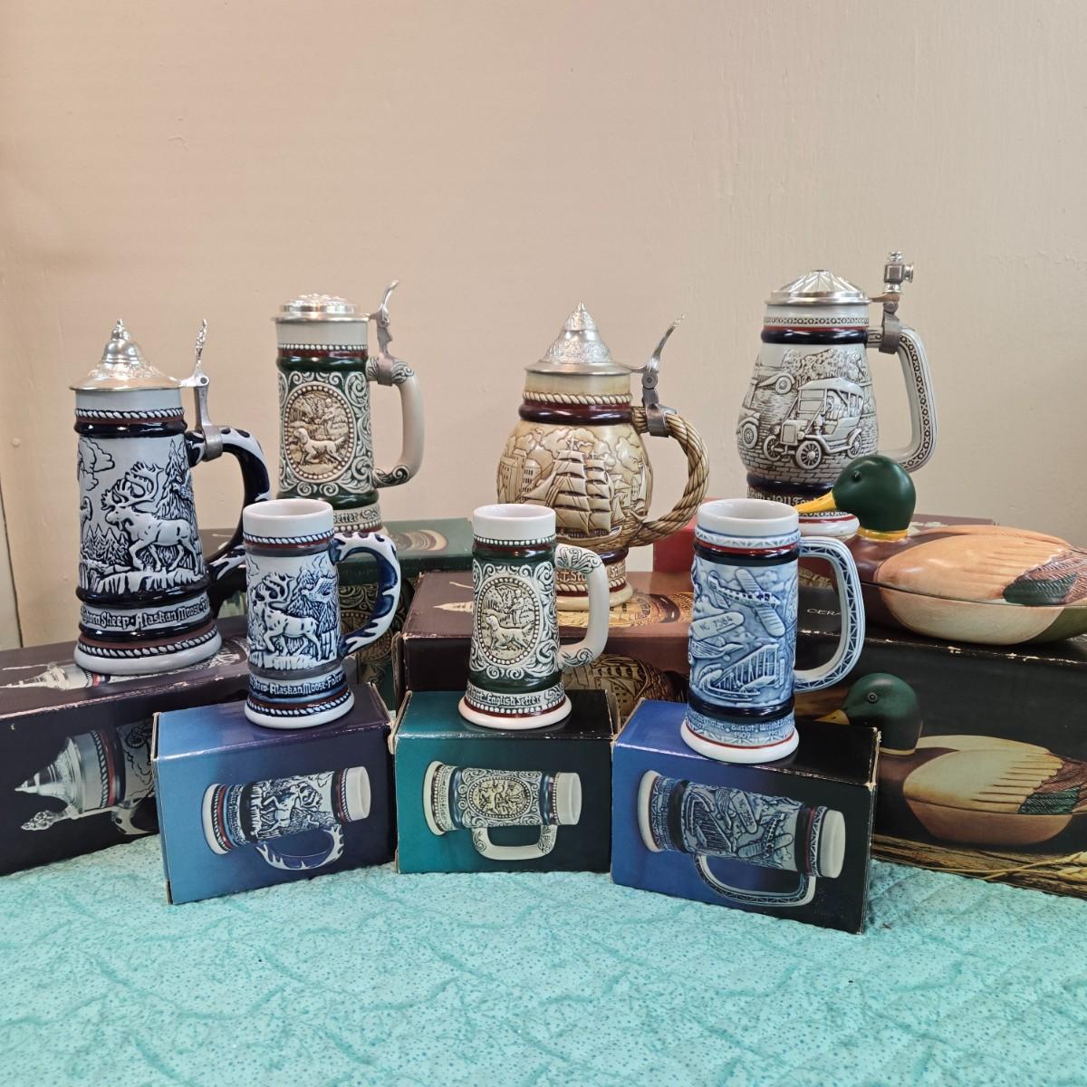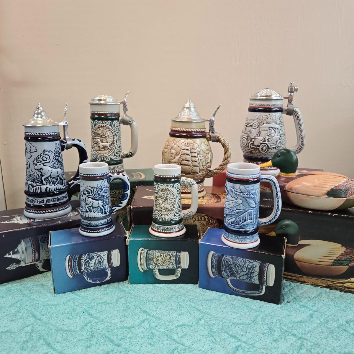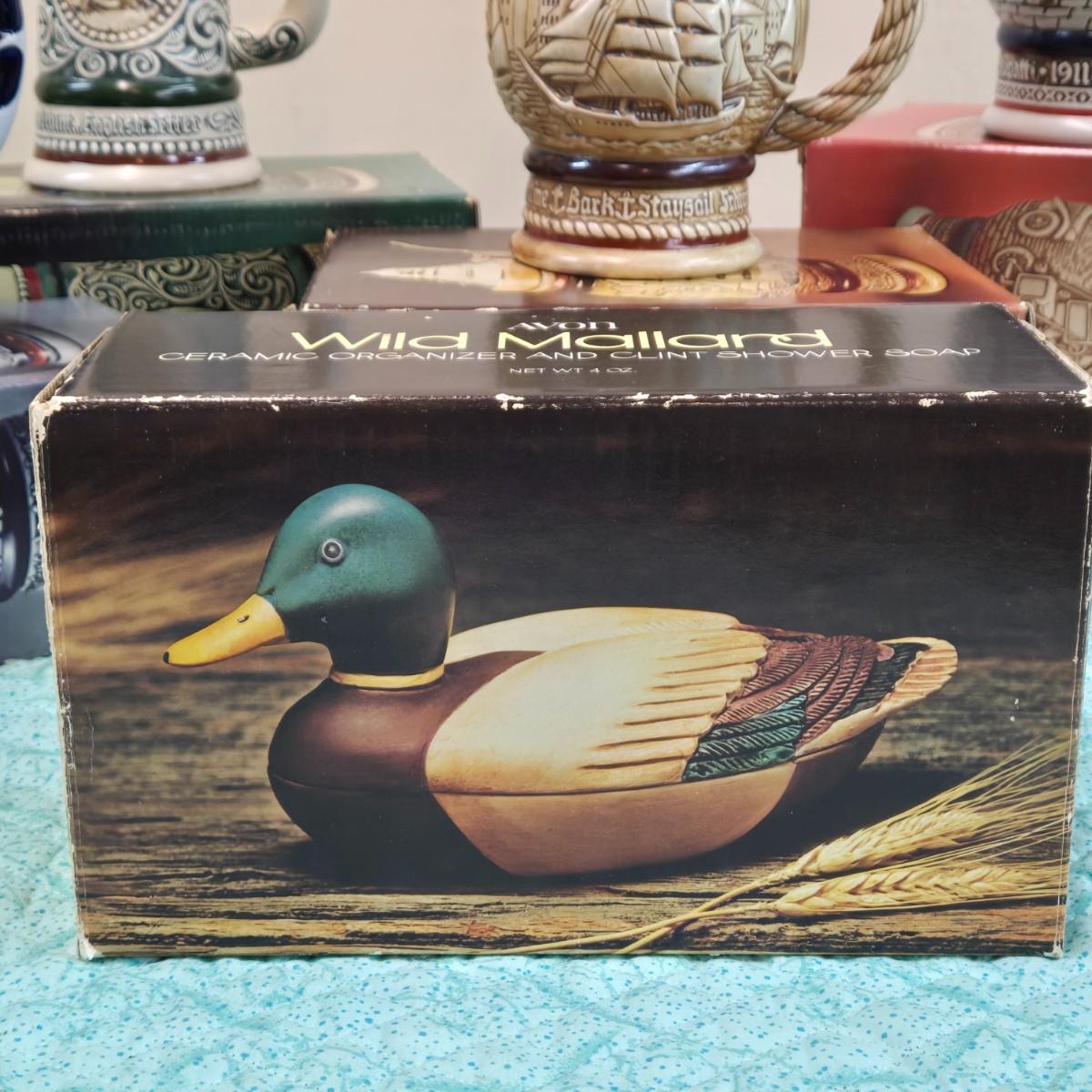 LOT 52A: Vintage Collectable Avon Beer Steins Handcrafted in Brazil and Ceramic Duck Trinket Bowl with Soap on a Rope