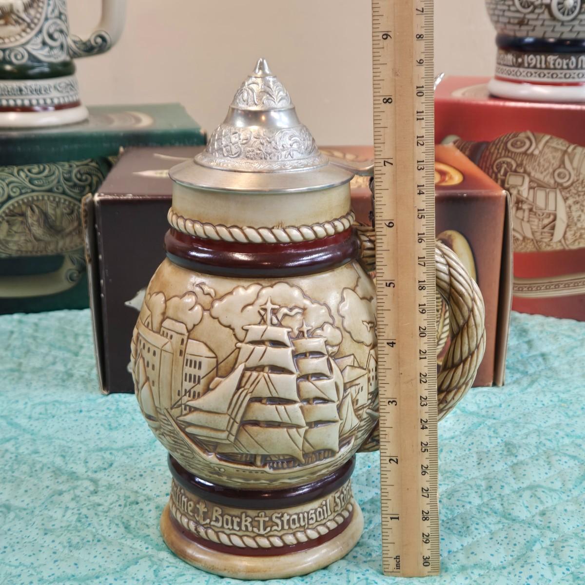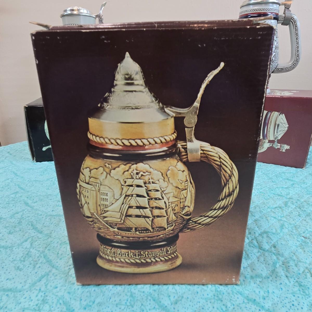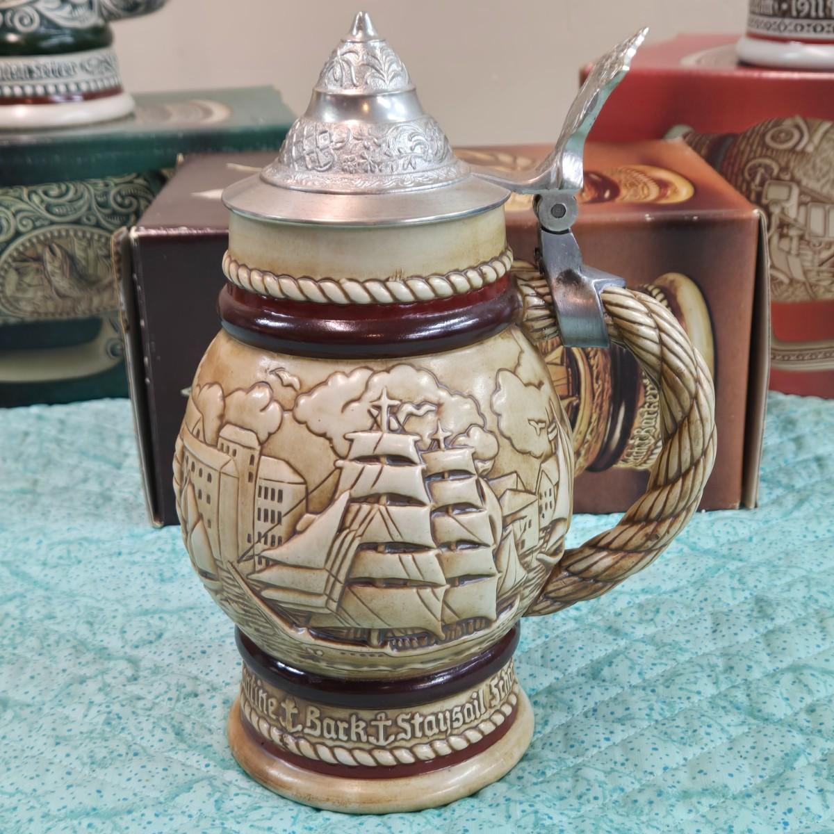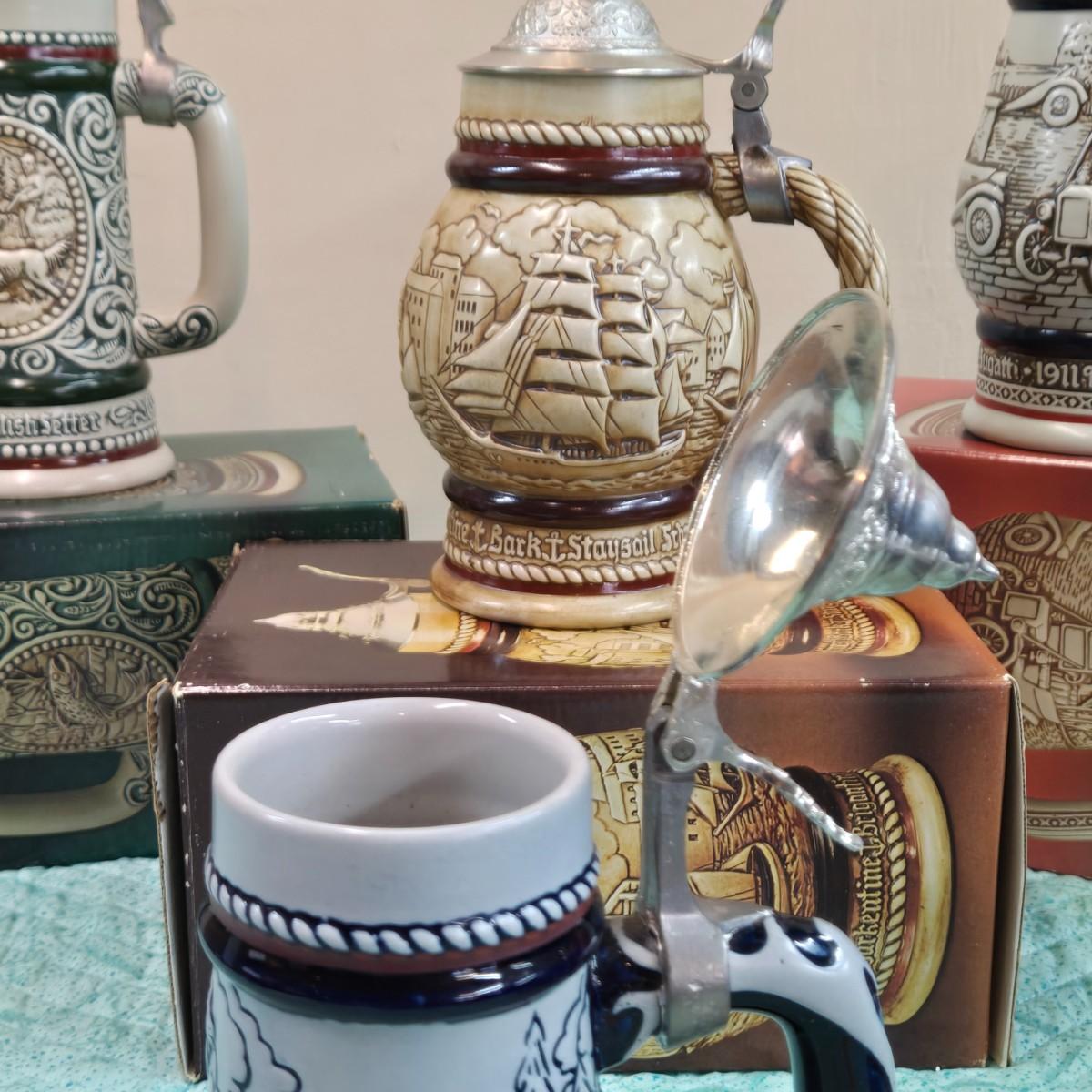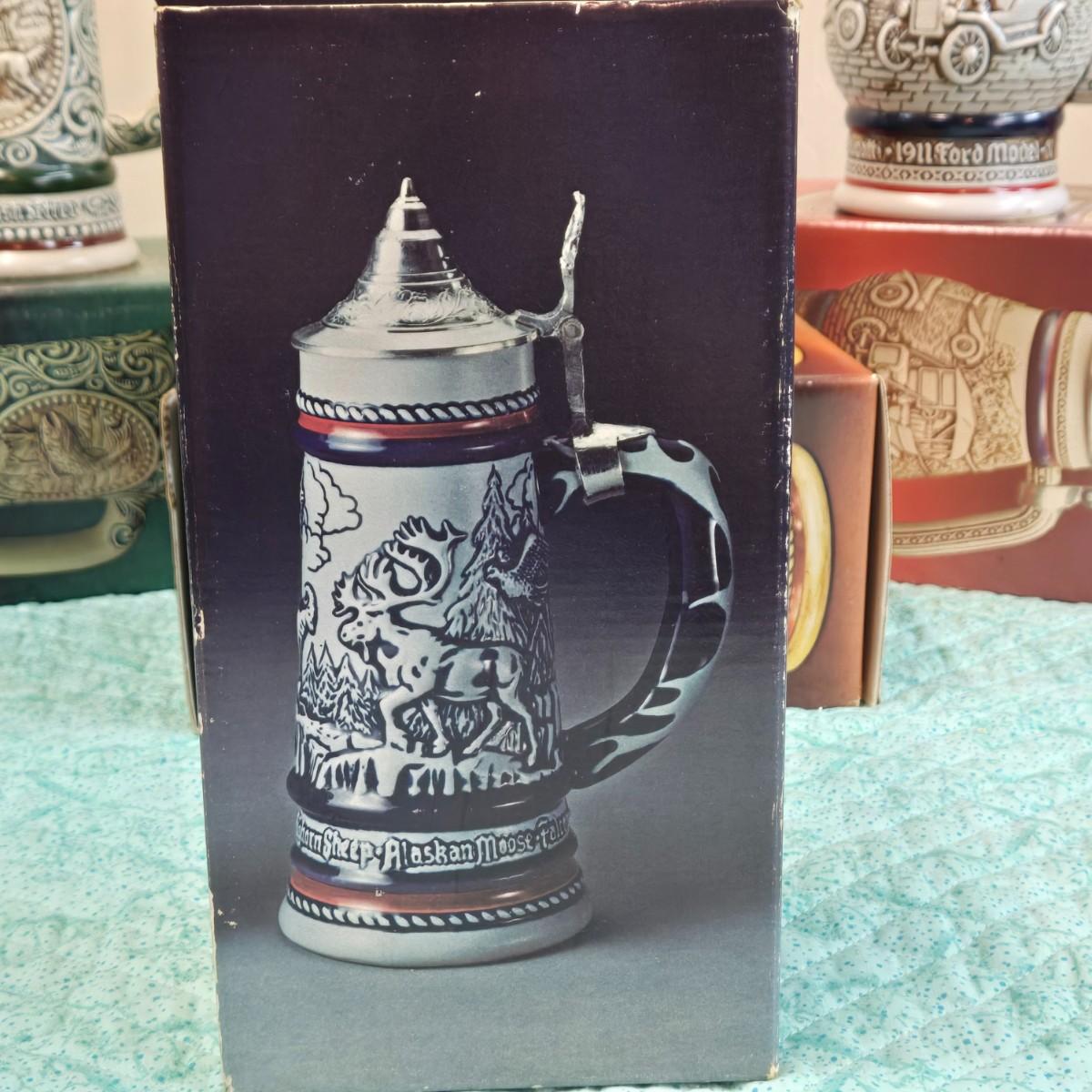 LOT 52A: Vintage Collectable Avon Beer Steins Handcrafted in Brazil and Ceramic Duck Trinket Bowl with Soap on a Rope