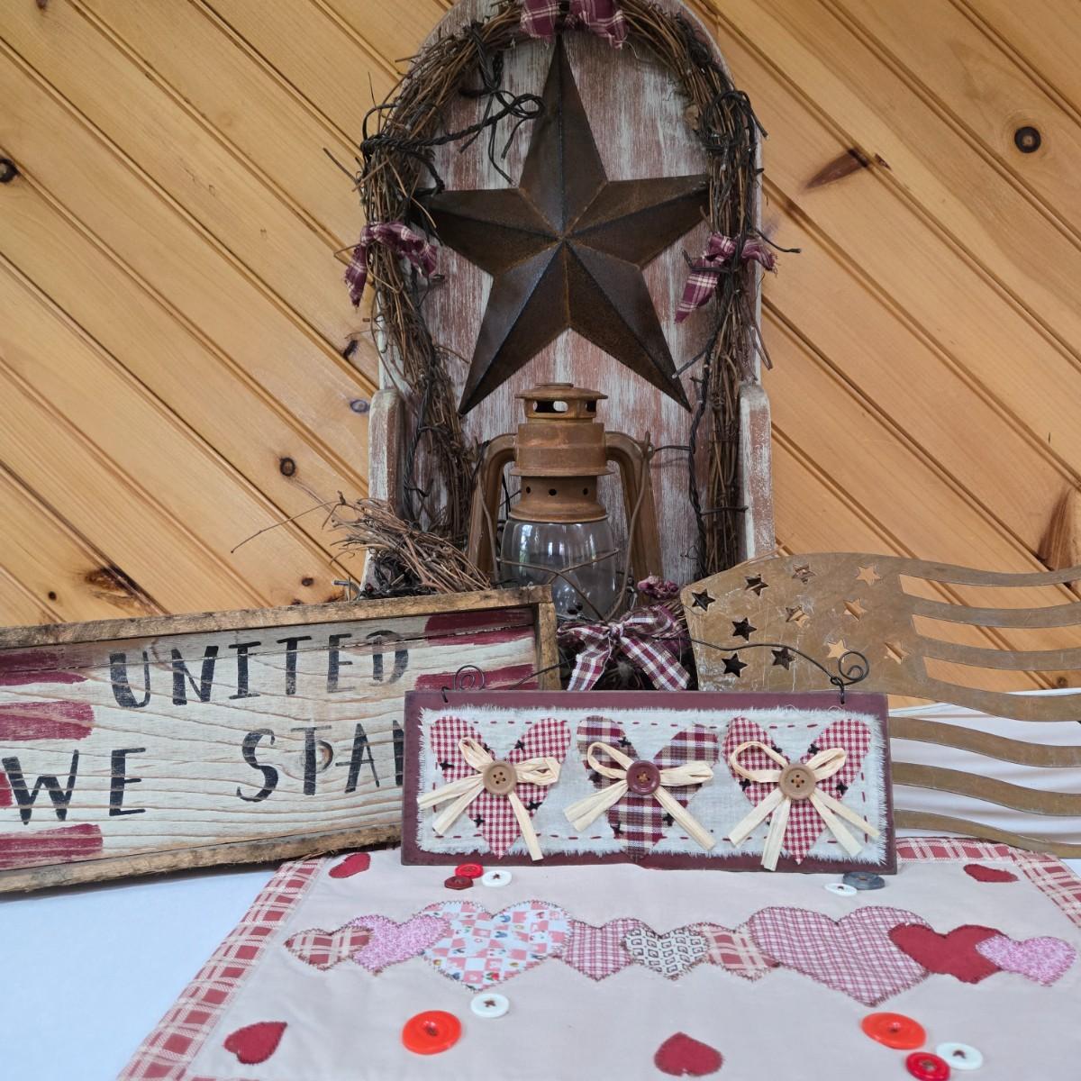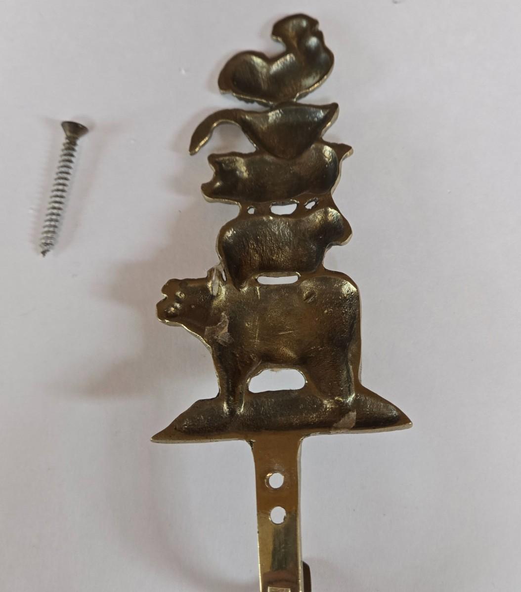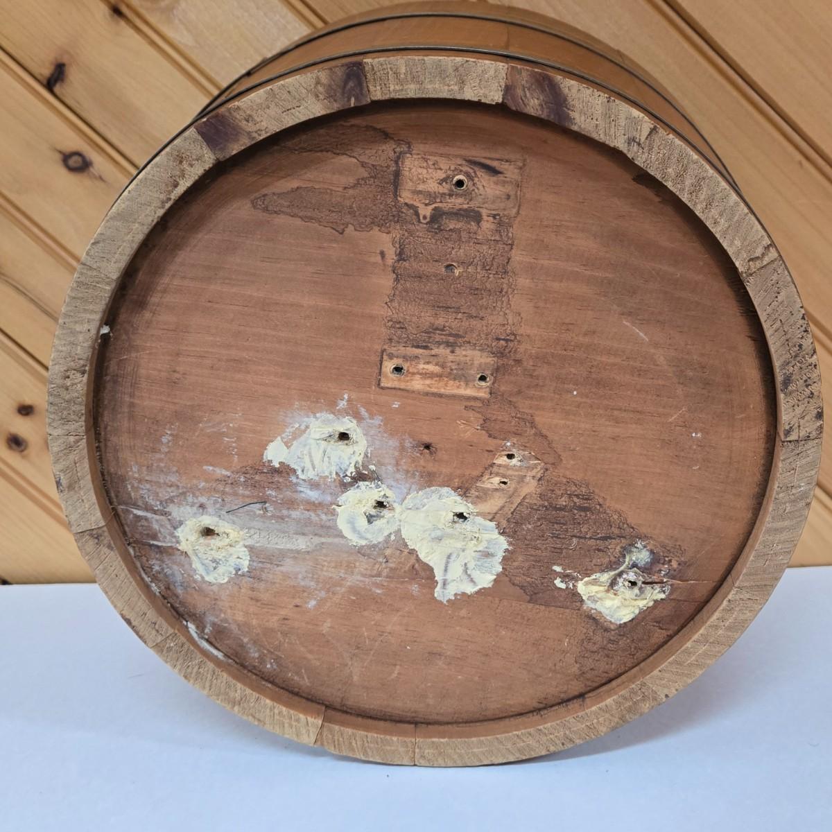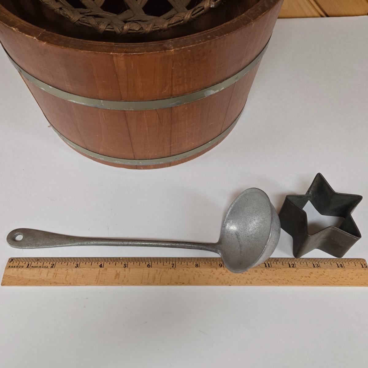 LOT 64P: Country Kitchen Decor Including Lighted Wall Hanging, Patriotic Wall Hangings, Cast Iron Farm Animal Doorstop, Chicken Print, Brass Farm Animal Hook, Wooden Barrel, and More