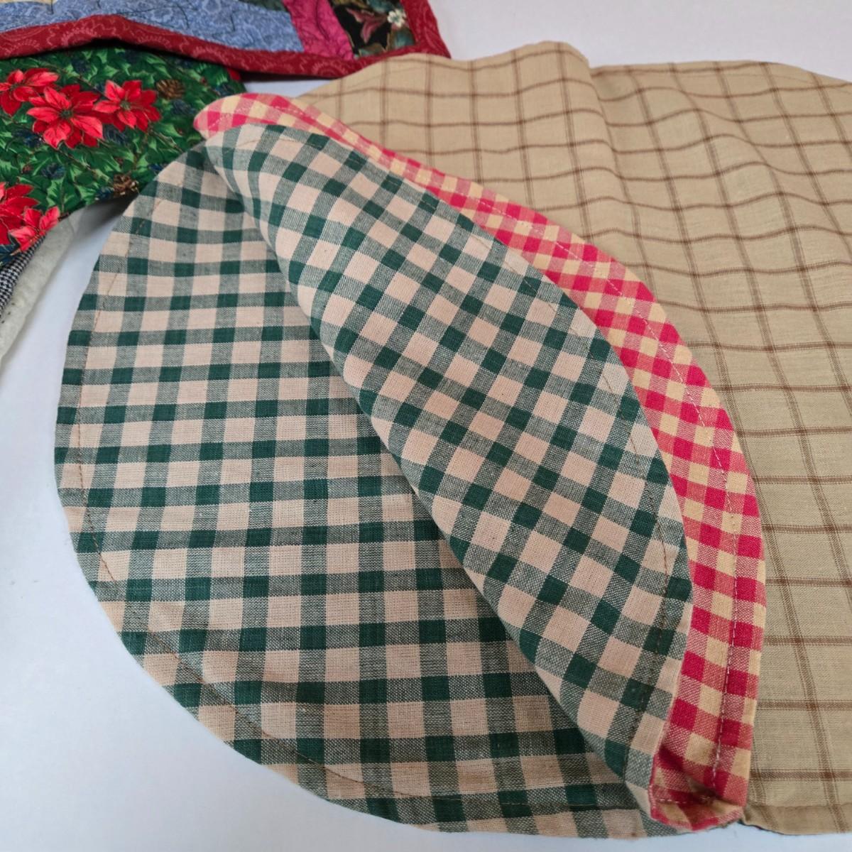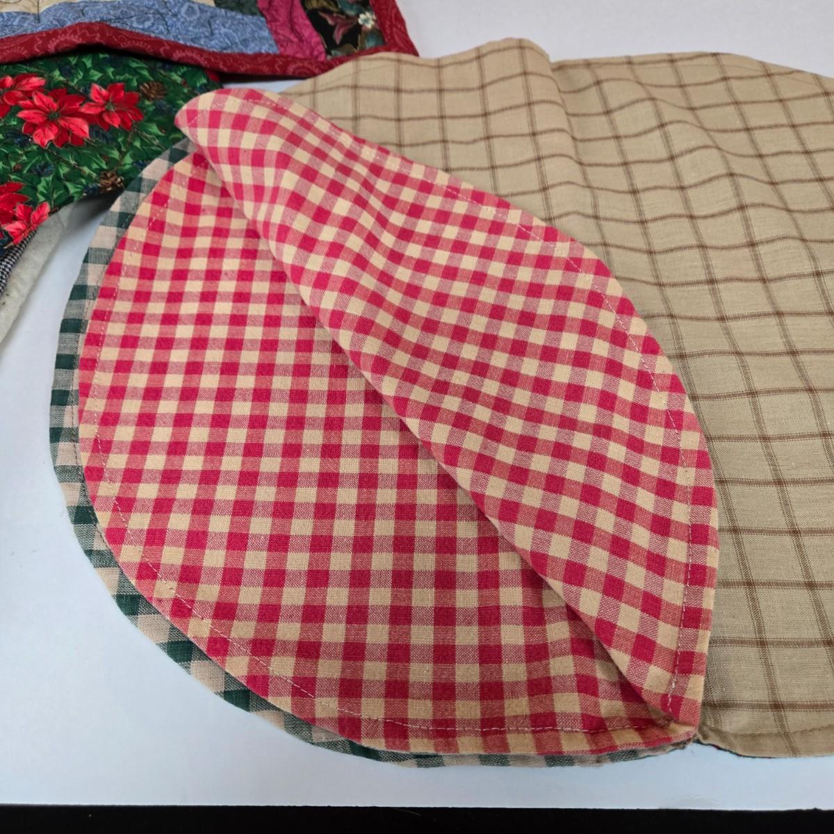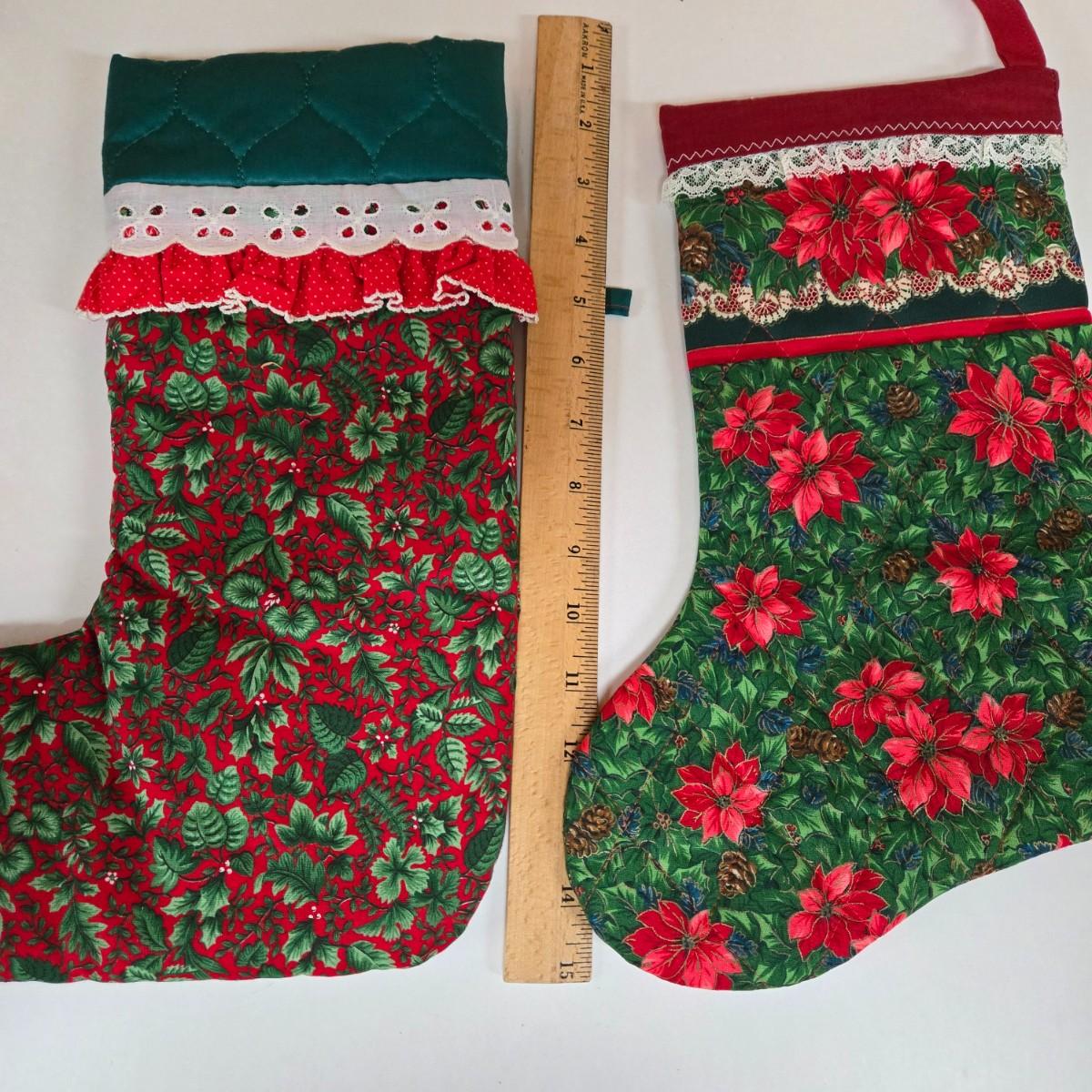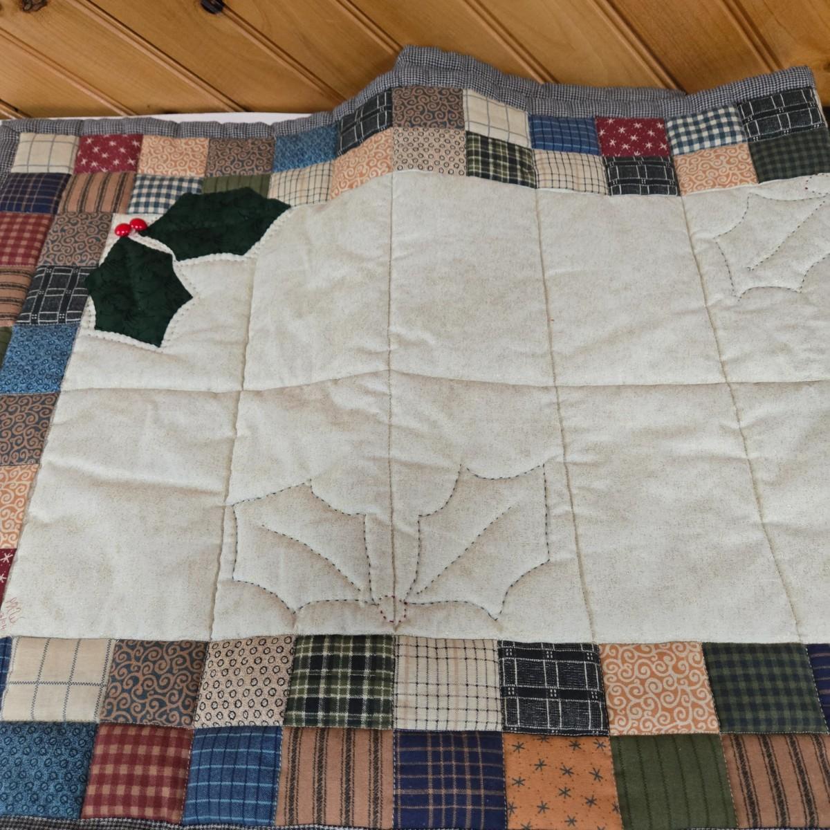 LOT 68P: Hand-Made Christmas Decor Including Two Stockings, Table Runners, Coasters, and More