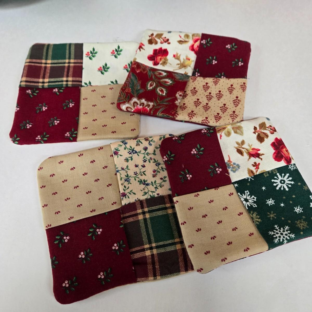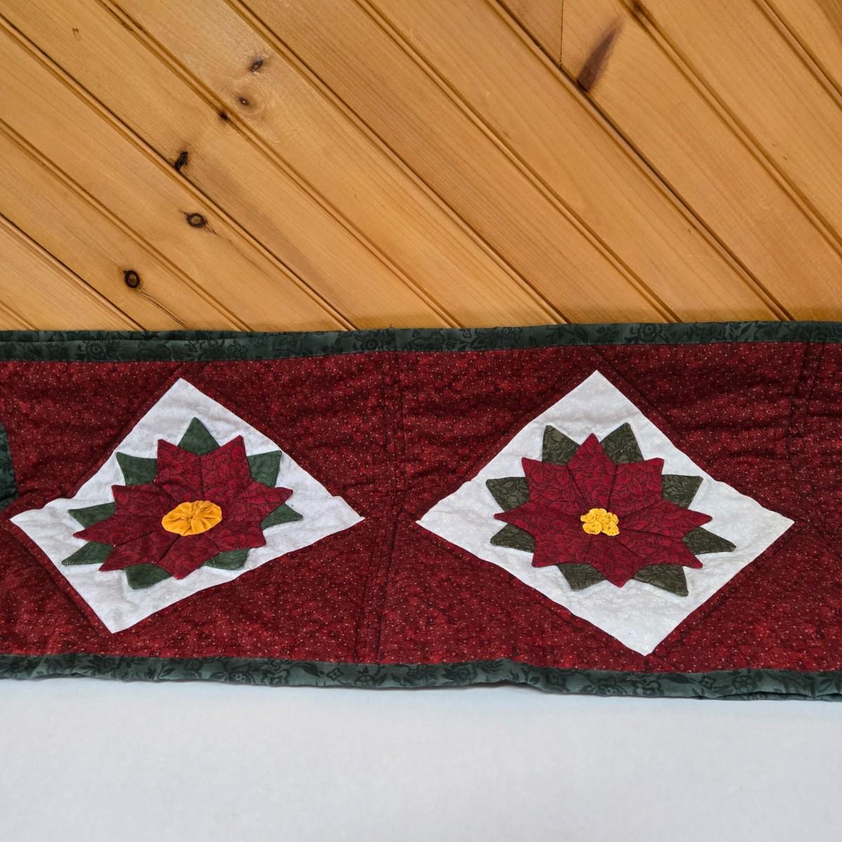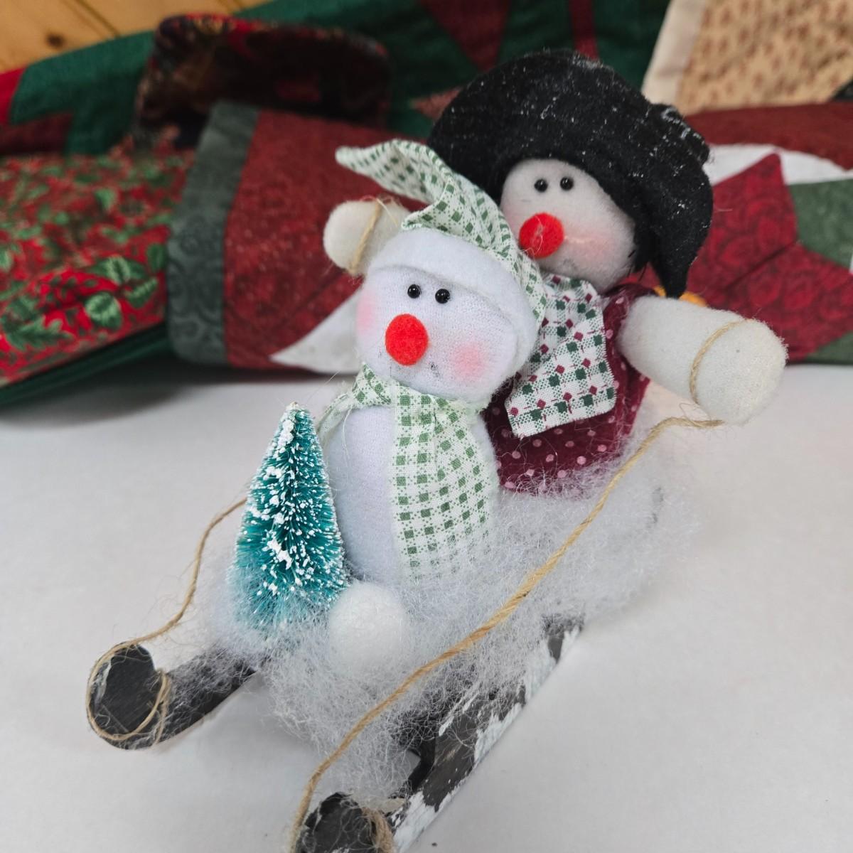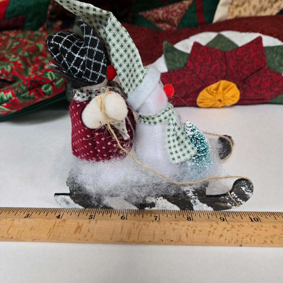 LOT 69P: Beautiful Hand-Made Christmas Decor Including Table Runners, Coasters, Two Stockings, and More
