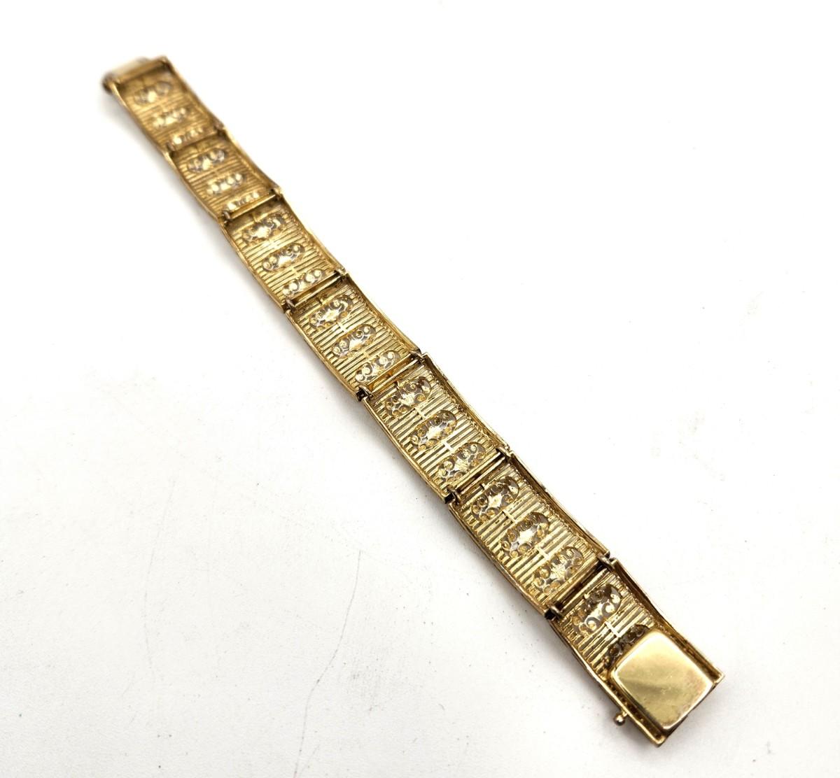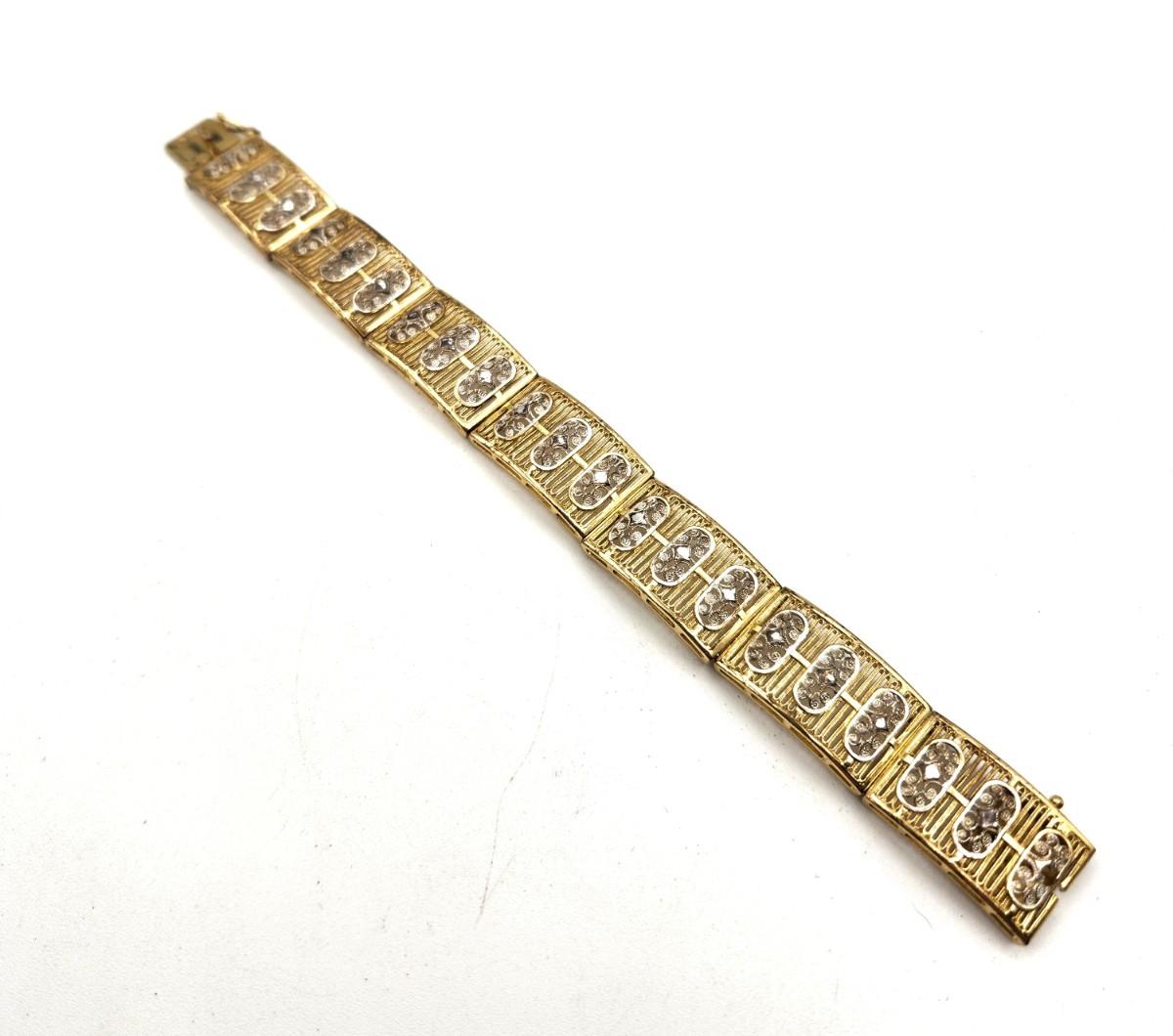 Vintage 800 Silver (marked) with gold electroplate filigree bracelet - twinkly little cz are set as accented. 7" long.