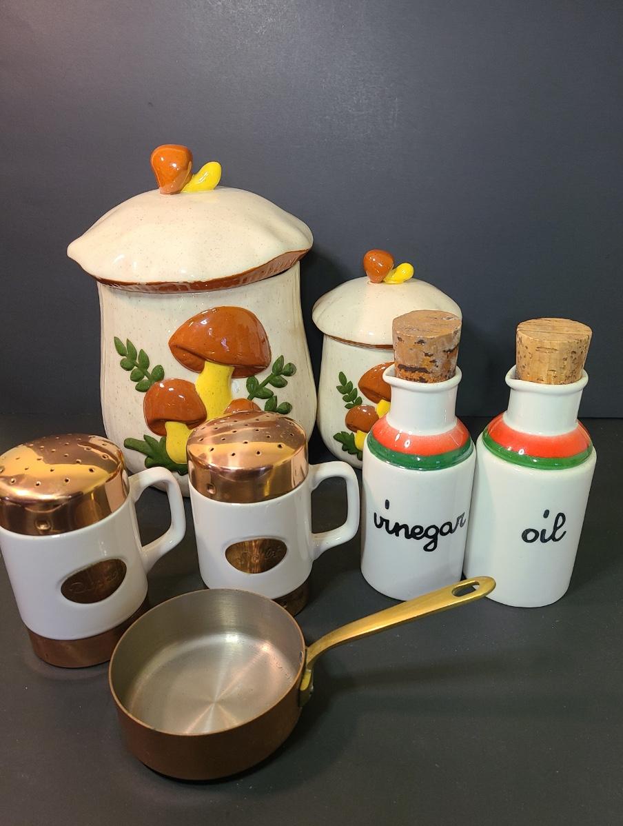 Fun lot of vintage kitsch items. The mushrooms canisters have tiny flea bites chips on the underneath of the lid from inspection, but not noticebable and the smaller one looks like the mushroom on top was repaired. Please see all pictures as they are the best representation of the items. The pictures show condition, measurements if taken, and what is included in the lot. Due to the large amount that we photograph and the time frame, we are not always able to take measurements. All items unless noted, are pre-owned and have been used. If you purchased furniture, you must bring help. We do not allow one person to carry large furniture out on their own. Bring help, tools and a truck for the safety of our client’s homes, and your personal safety. Any damages that result to the property including walls, and floors due to moving of the furniture will be charged to the buyer. Company policy. Thank you.