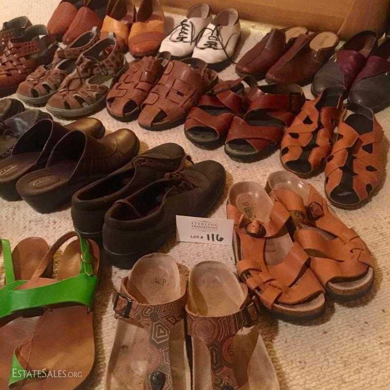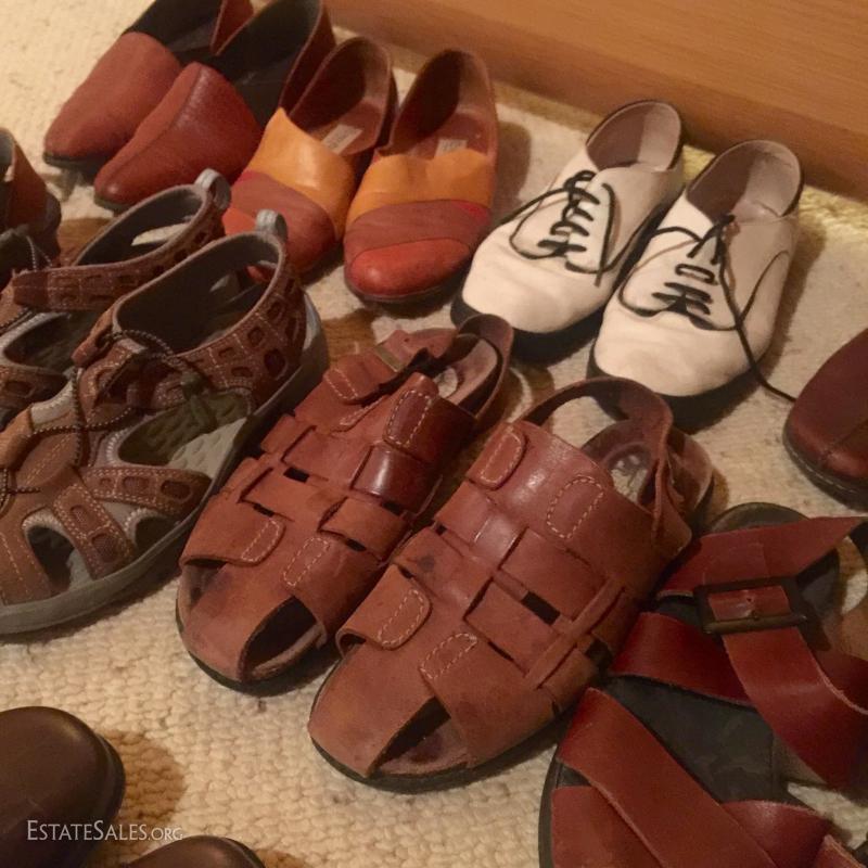 Ladies shoes. Mostly size 8 or similar. A couple 6.5 and 10. Italian leather, clarks, riecker. 18 pairs