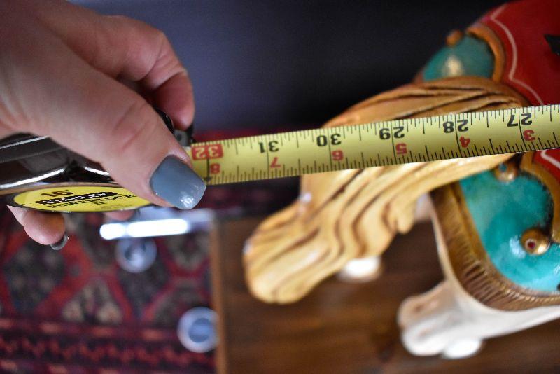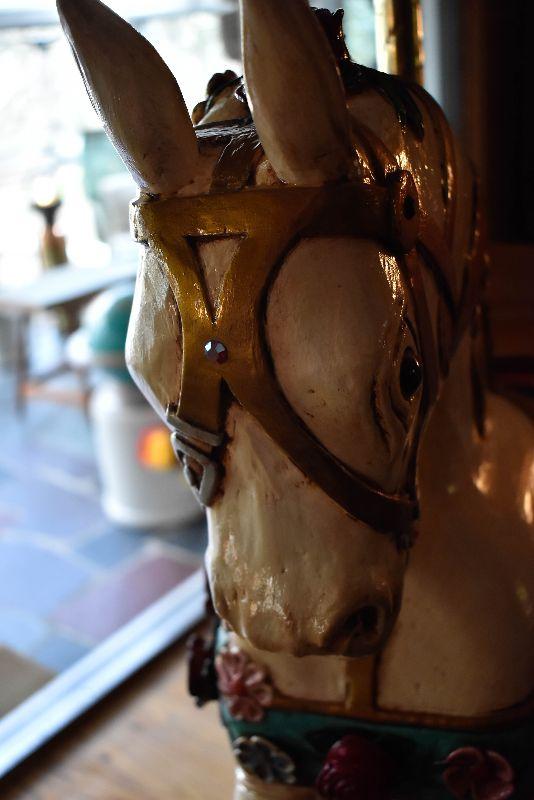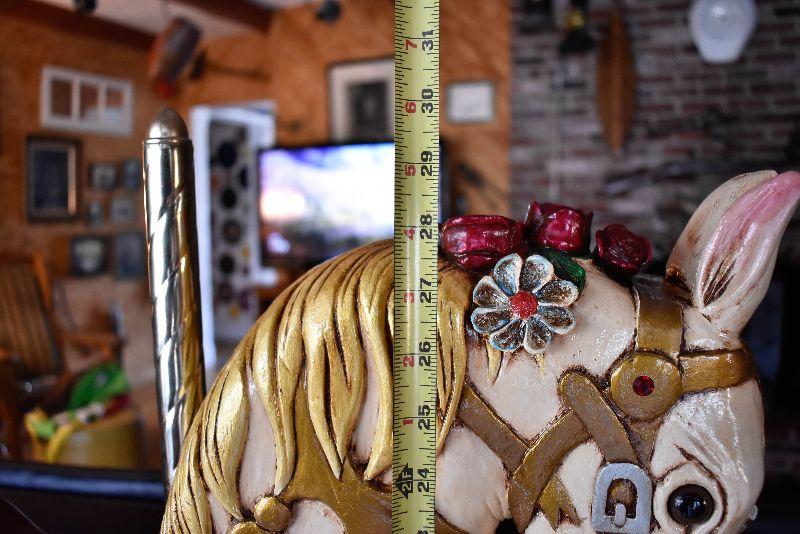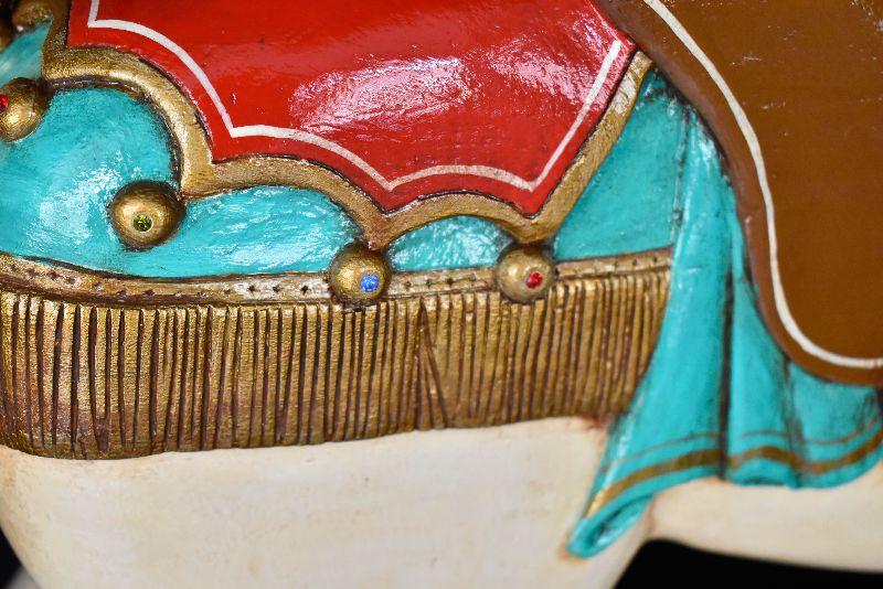 Lot 116: Hand Carved Wooden (Pine) Carousel horse w/ gemstones