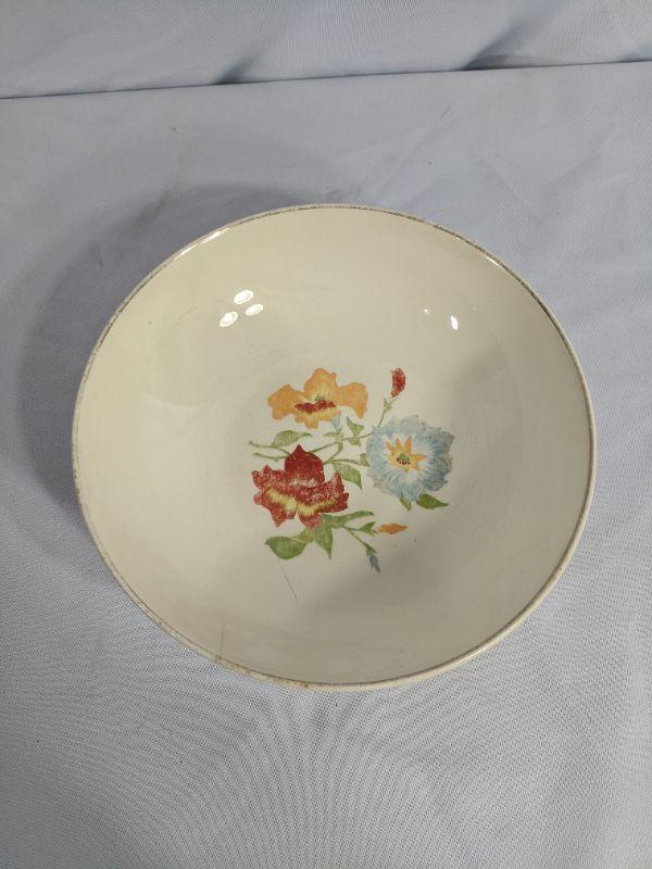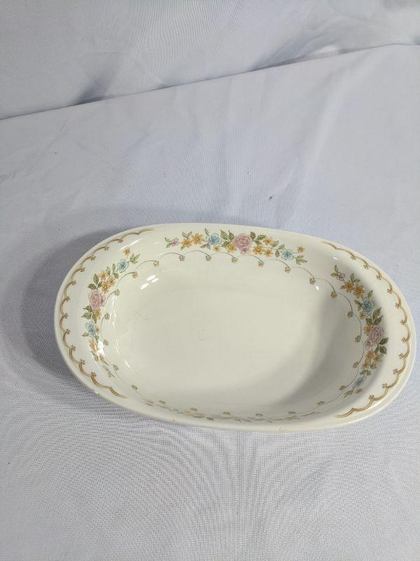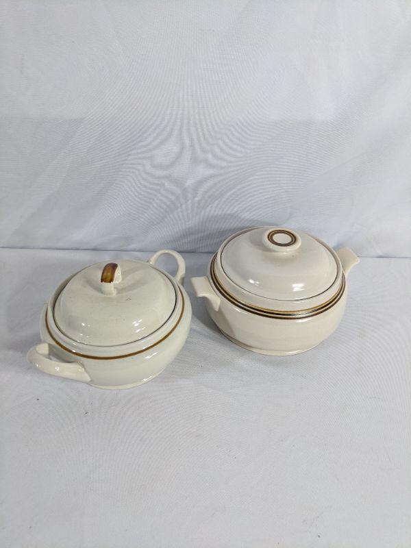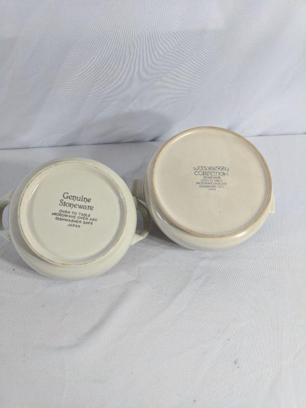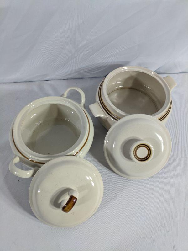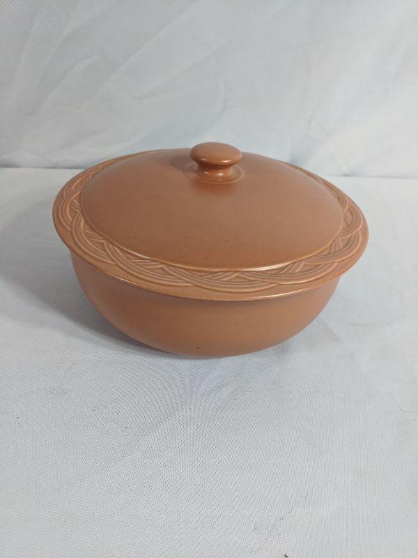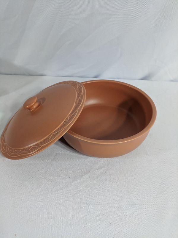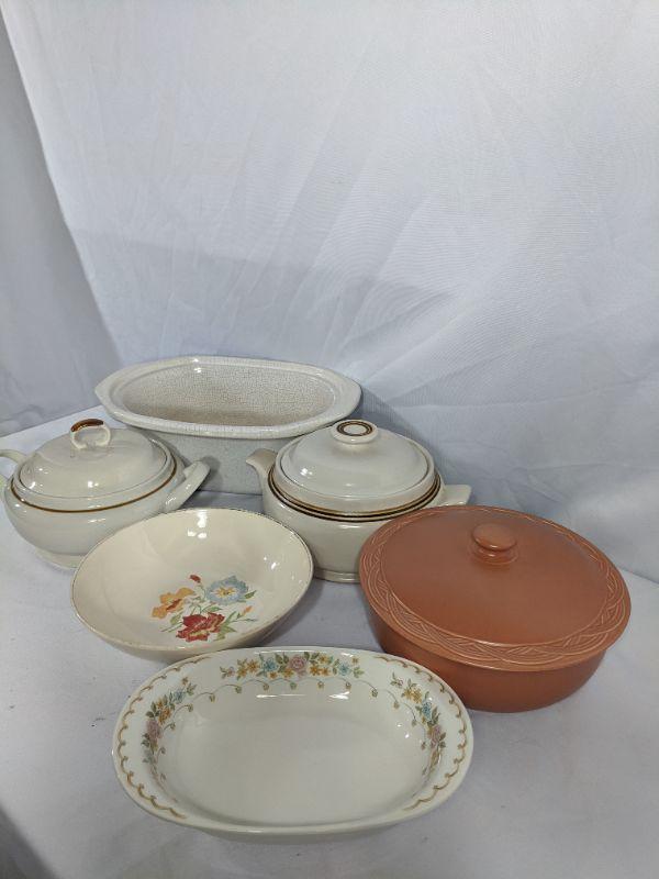 Six items here for your cooking and serving needs!. First, we’re offering a casserole dish that does not have a lid. Next is a clay colored dish that is oven safe. We’ve also thrown in two matching jars that could hold anything from gravy to cookies! These two peices are both oven and microwave safe. The last two items are decorative with flowers and gold trimming, perfectly adding color to your next dinner. Local pick up only.
