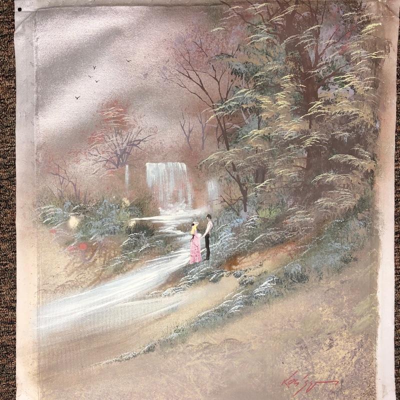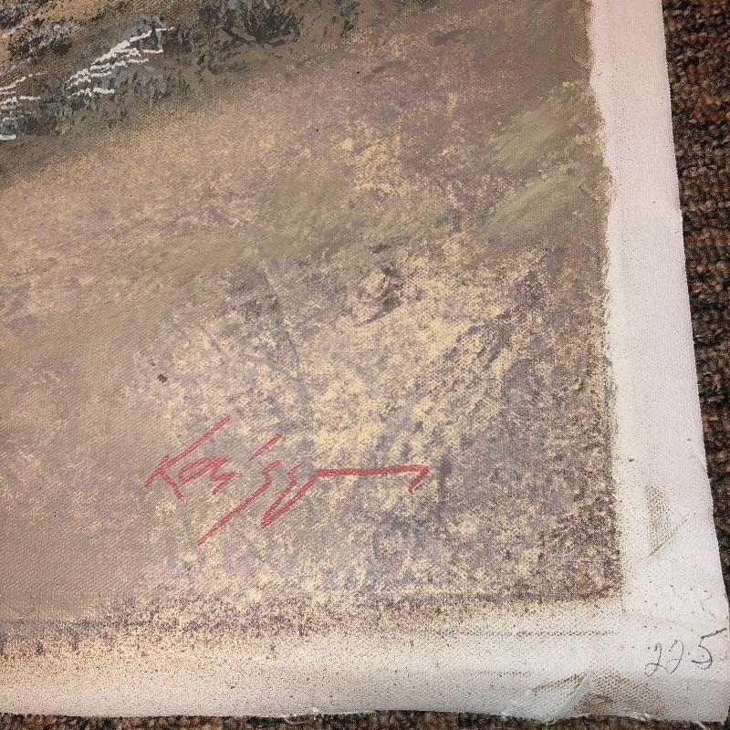 This lot is a signed oil painting. This lovely piece of art is such a wonderful addition to any space. Metallic details really make this painting stand out. Painting measures 22.75”W x 26.5”H is on rolled canvas so you can mount and frame as you like. Shipping available.