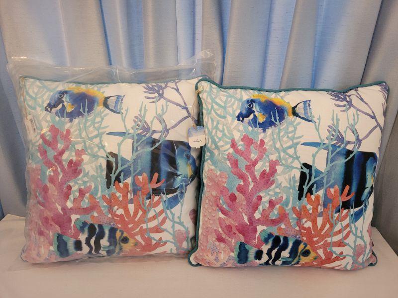 Lot 116: (2) New Hallmark Coral and Fish Pillows