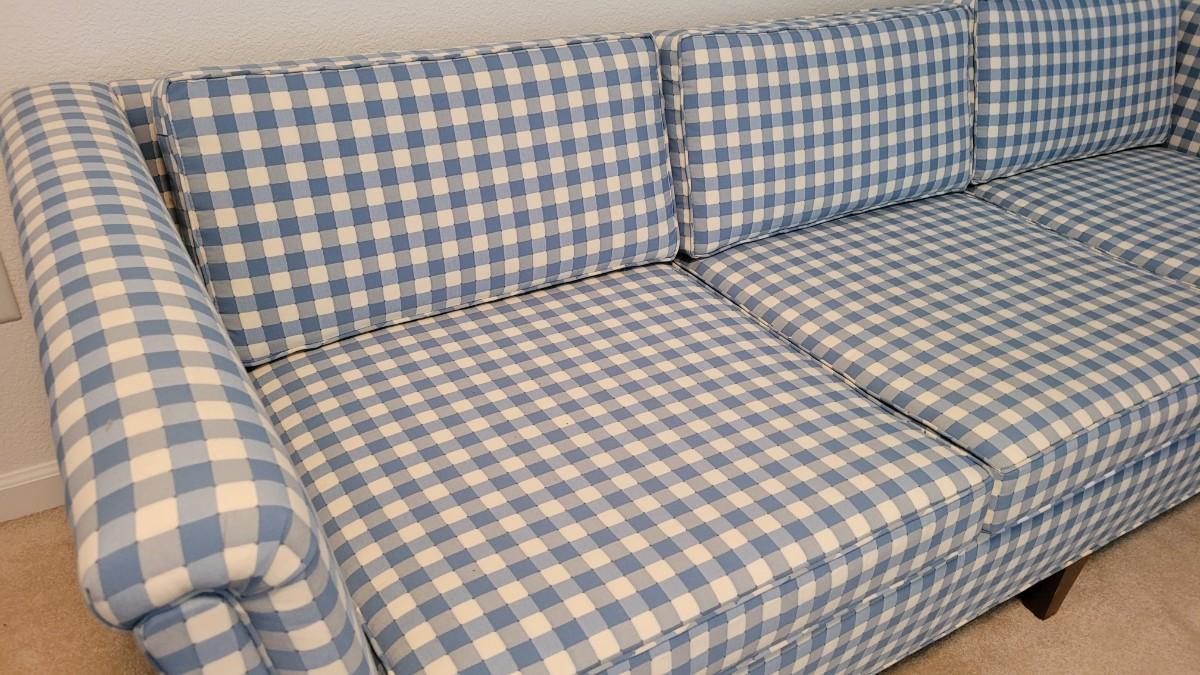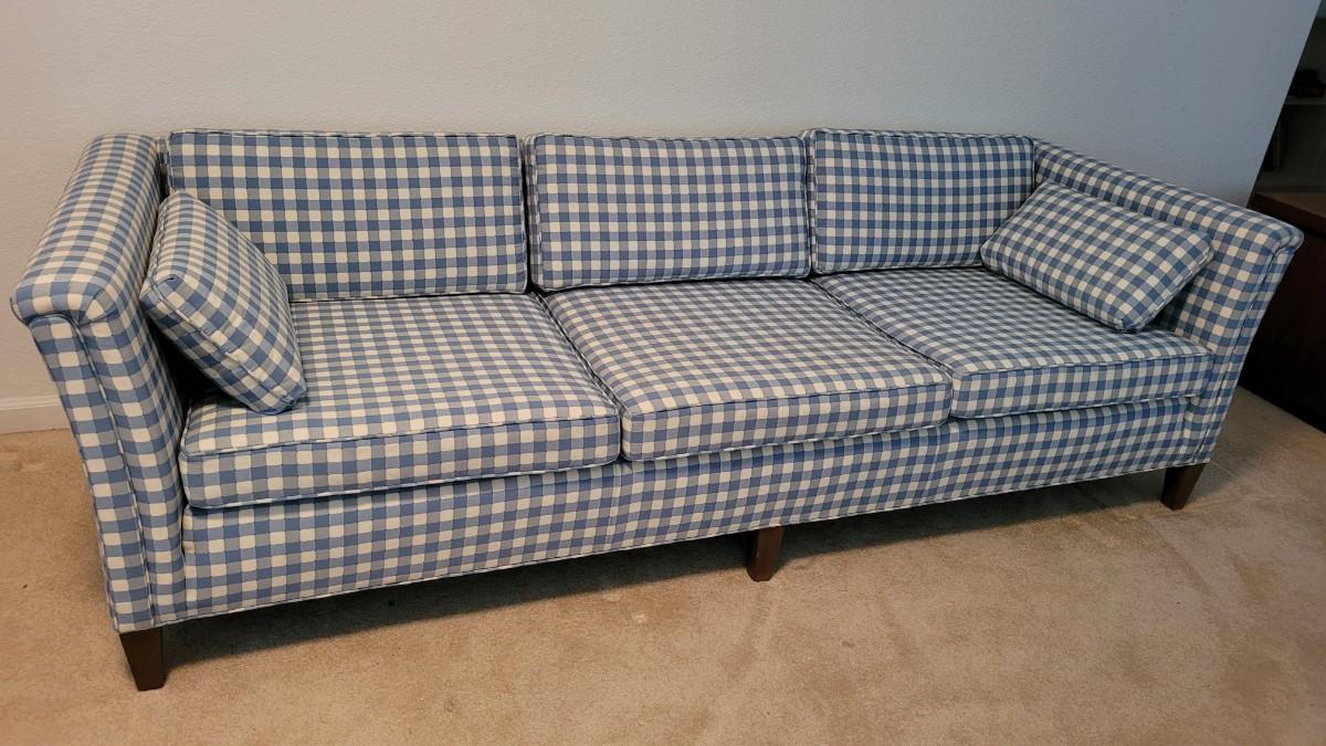 Lot 116: Vintage Low Profile Blue Checker Couch