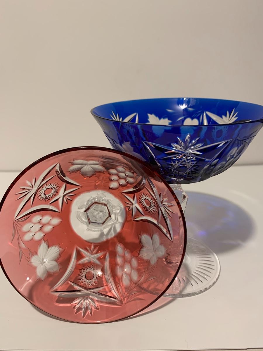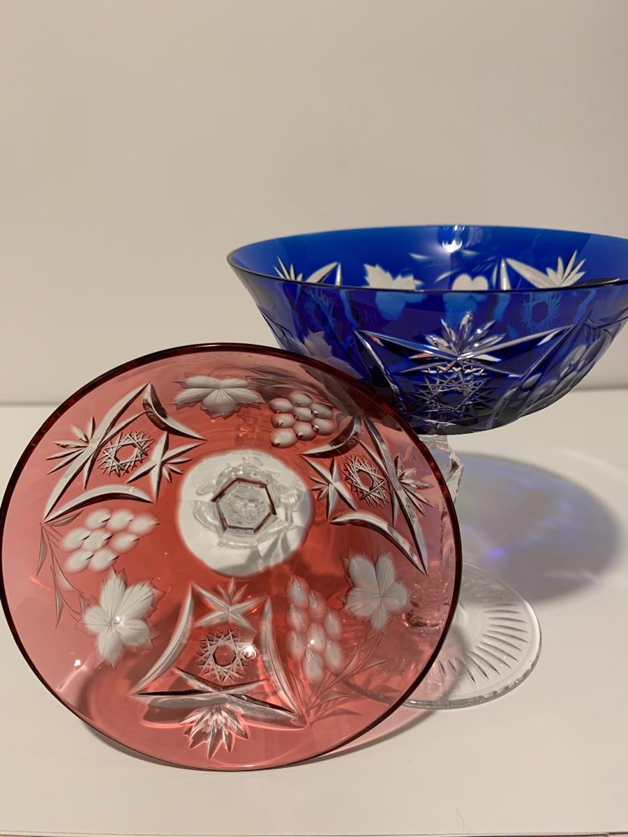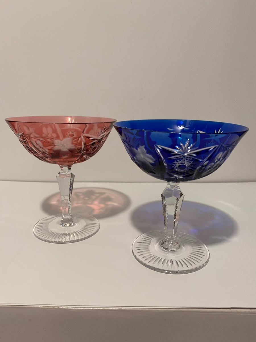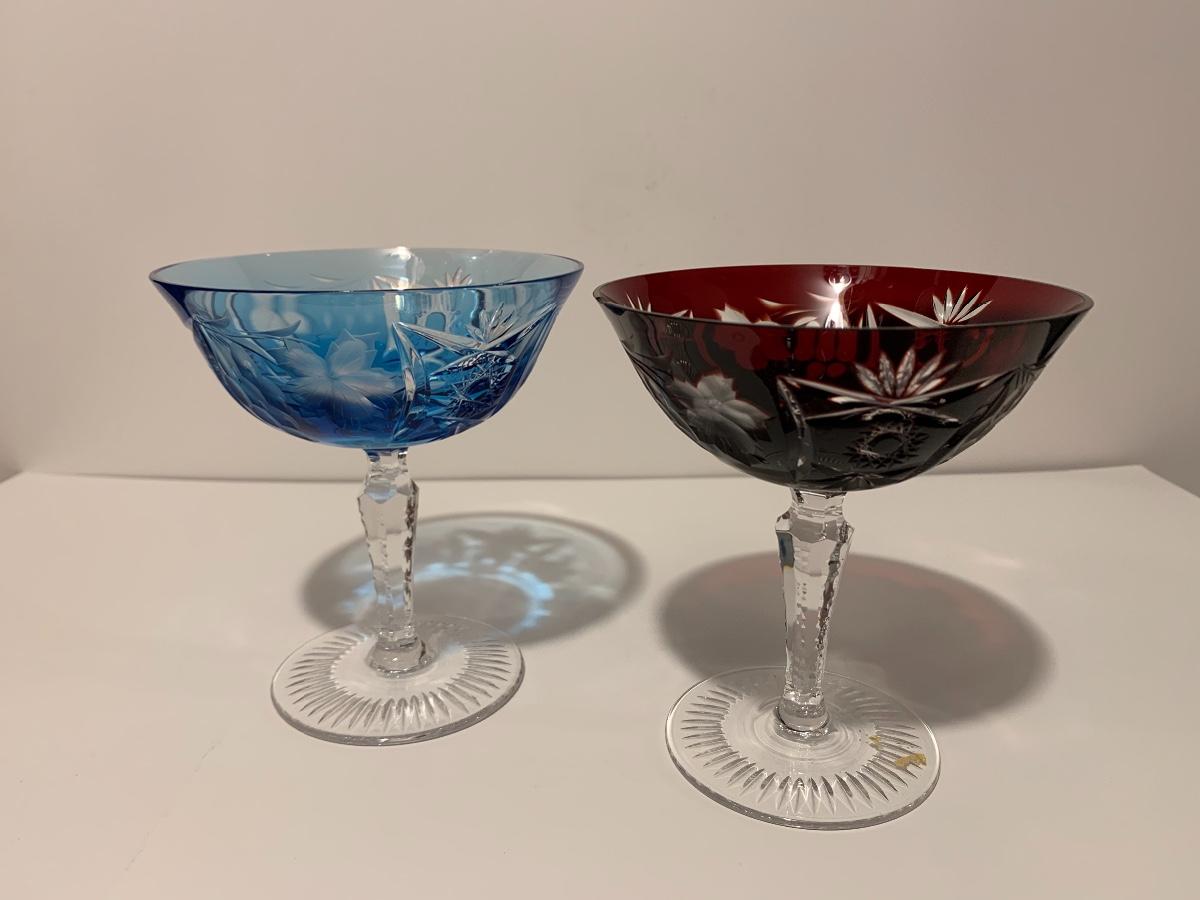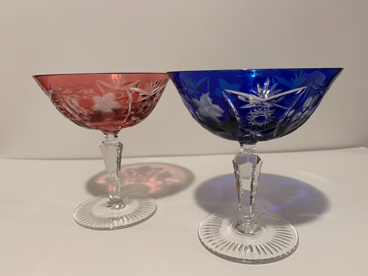 Beautiful set of 8 multicolored cut to clear glassware with notched stems from Germany Just stunning. They have had minimal use if any. The crystal is nice and clear without any residue.