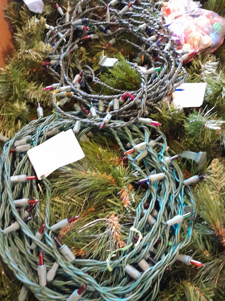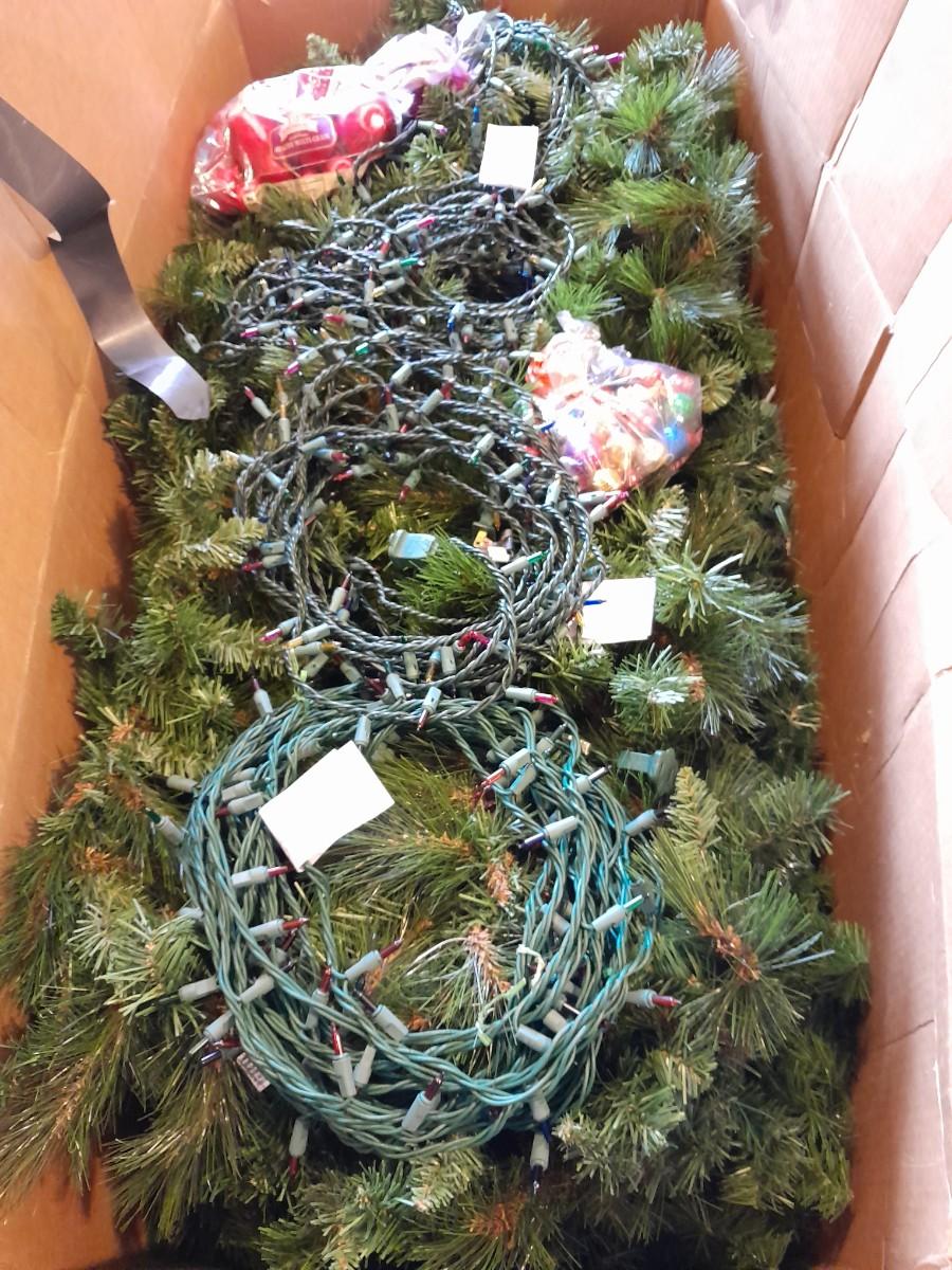 6.5' FAUX CHRISTMAS TREE WITH LIGHTS AND ORNAMENTS